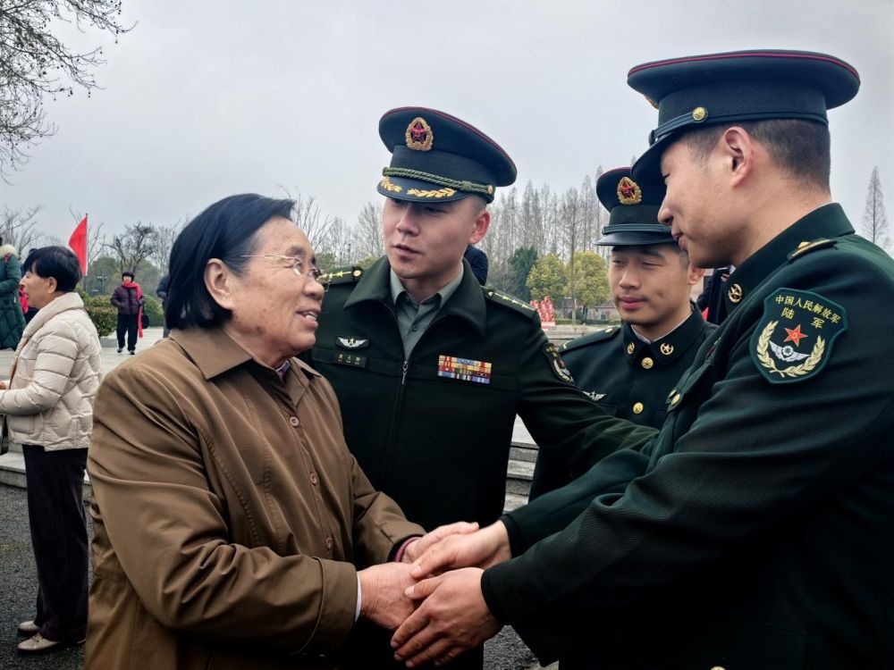 仪式结束后,戴天骄和杨永杰搀扶着烈士李云鹏的妹妹李爱云走在广场里,为李奶奶讲述一年来连队的发展变化。十多年前,杨永杰就在学校里聆听过李奶奶的宣讲。