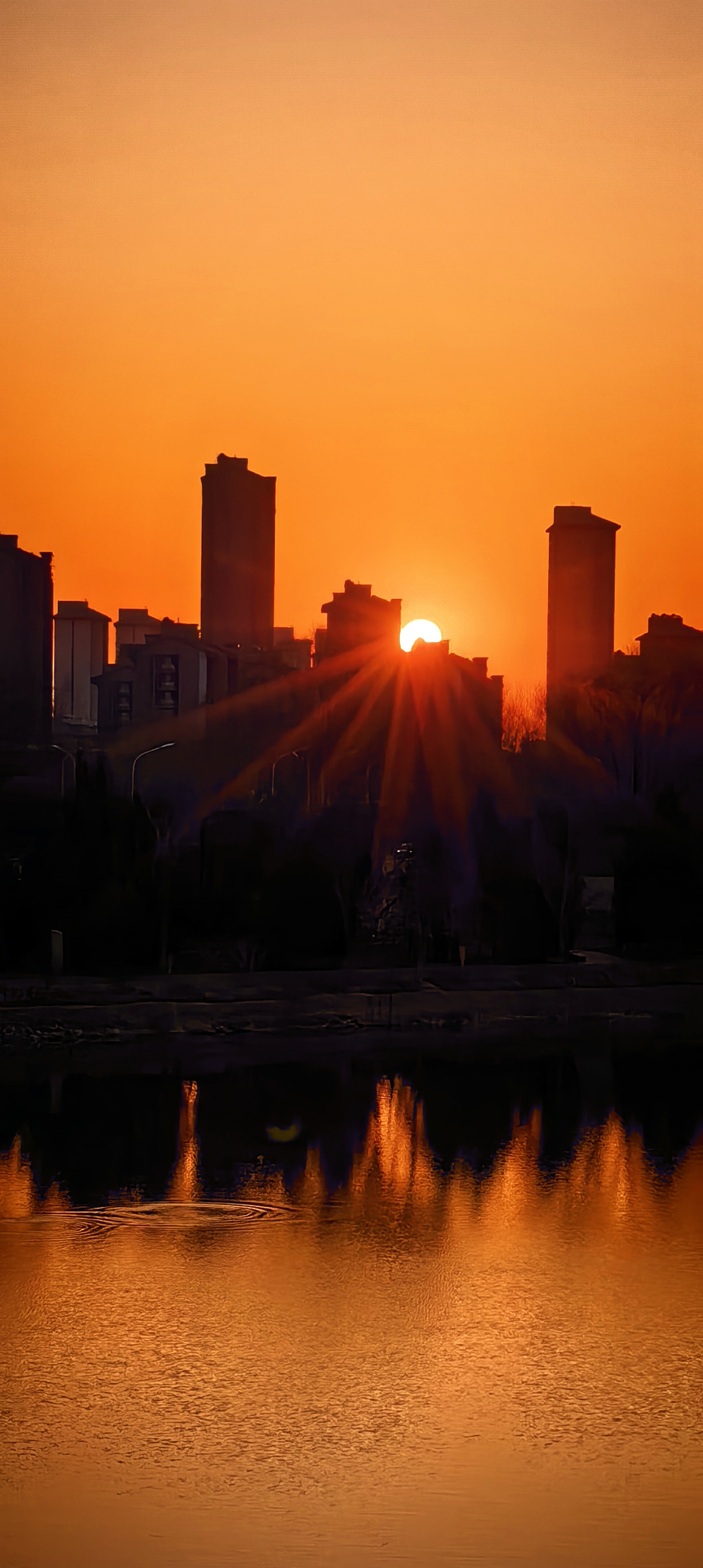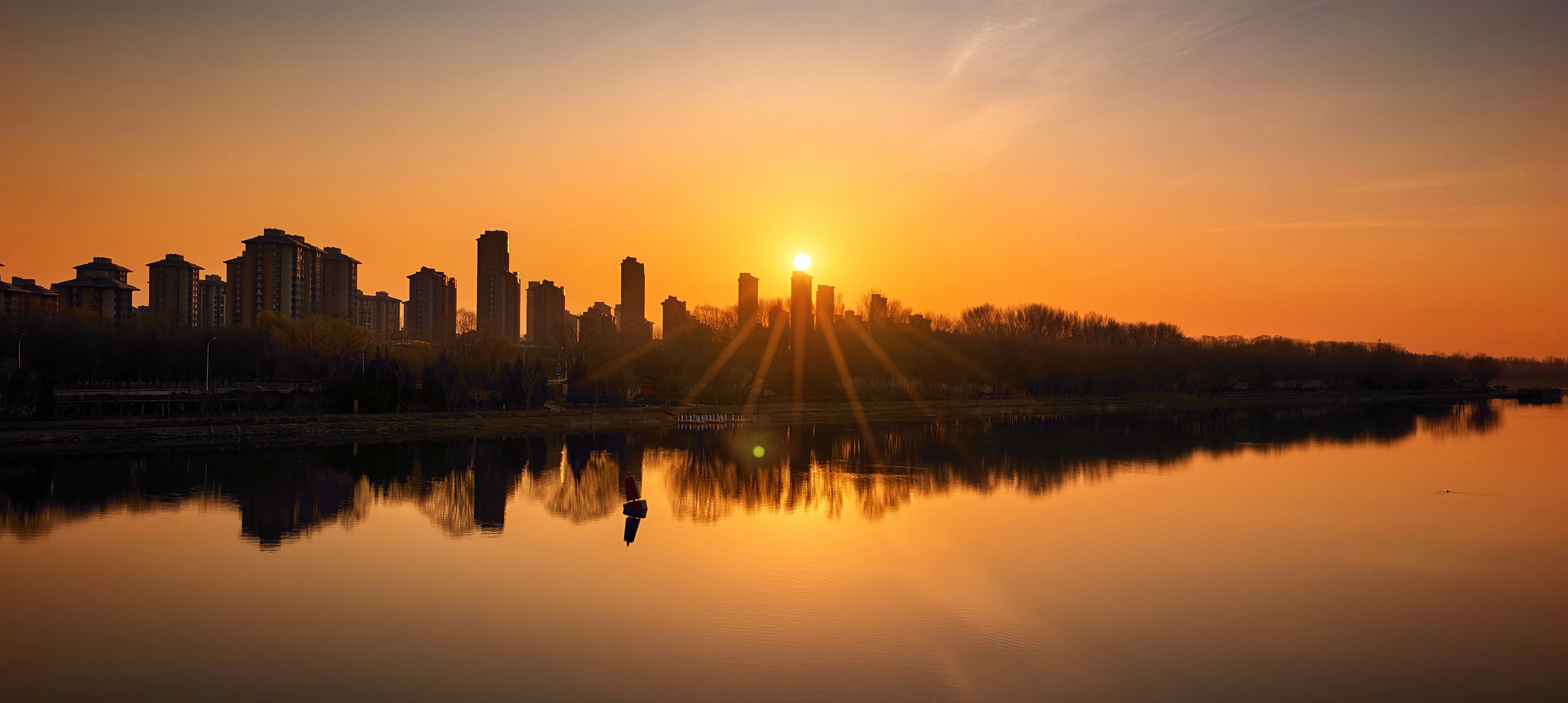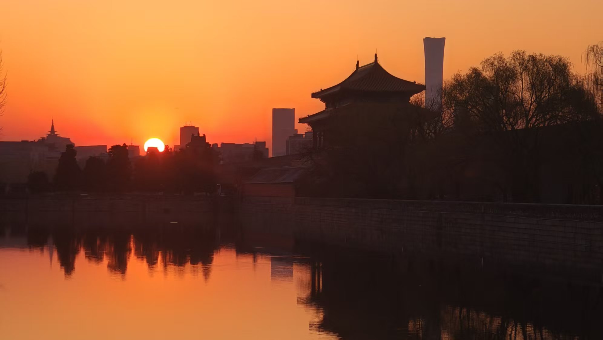 3月19日一早,北京天晴气爽,一轮红日将金色光芒洒向大地,霞光勾勒城市轮廓,美景如画。