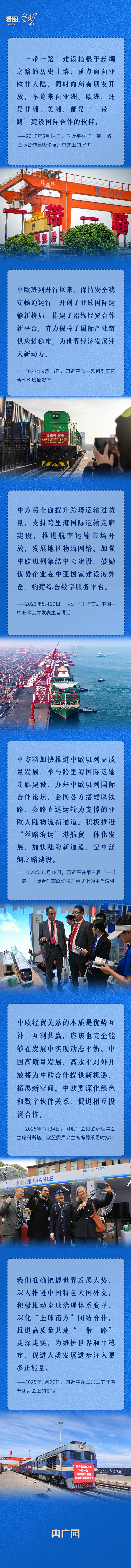 “开创了亚欧国际运输新格局,搭建了沿线经贸合作新平台,有力保障了国际产业链供应链稳定”,习近平总书记充分肯定中欧班列高质量发展,为共建“一带一路”倡议走深走实注入强劲动力。