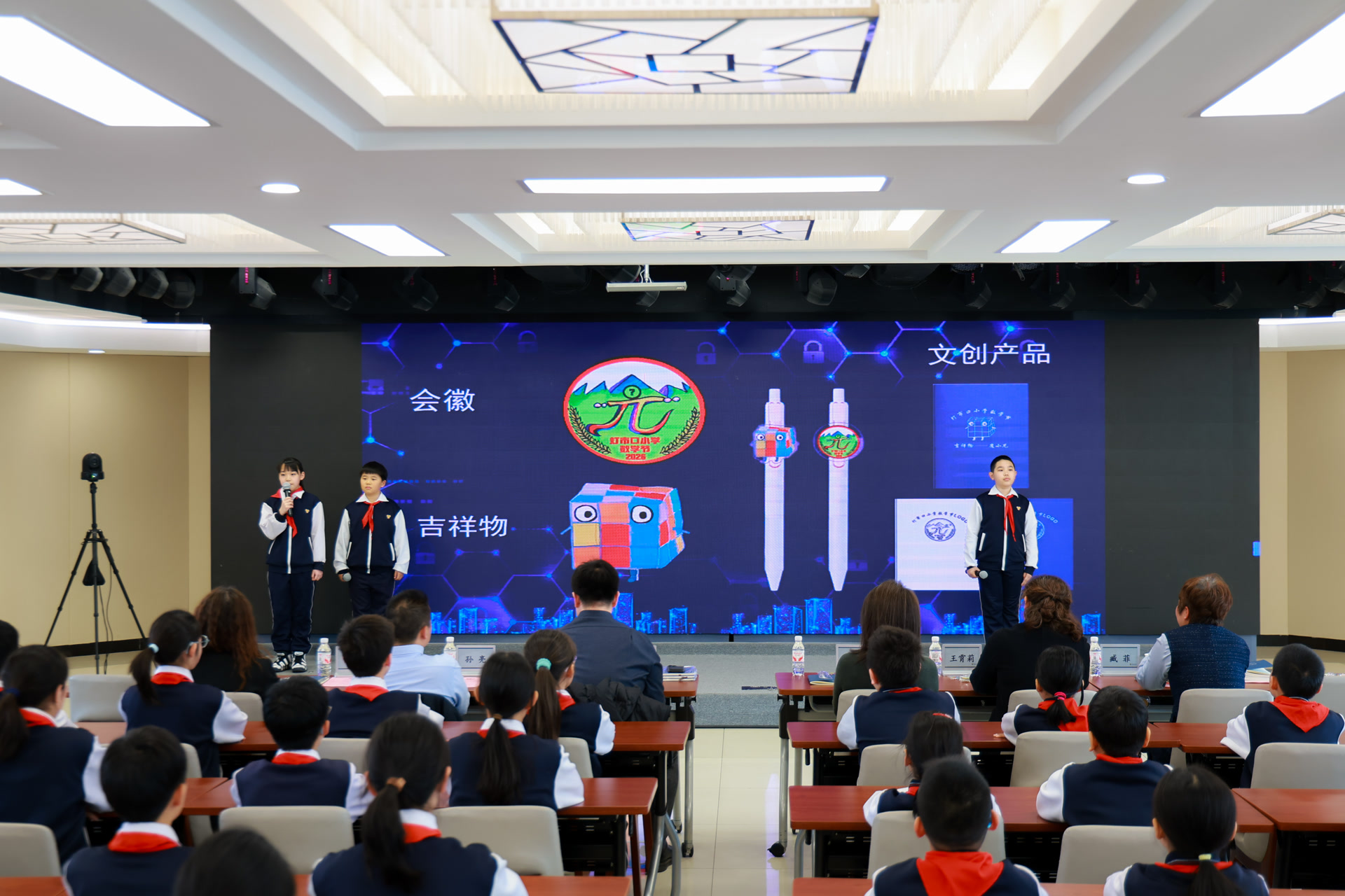 “π”节持续深化“数学+”跨学科融合教育实践。比如,本届π节面向全体师生征集吉祥物,“魔小π”从30余件决赛作品中脱颖而出。五年级9班学生用戏剧的形式,演绎生动的数学故事《算学闯汴京》——从剧本构思到舞台表演,从道具到舞美,均由孩子们以小组形式完成。在“我讲科学家故事”环节中,学生们以“读后感+朗诵”的形式传承科学家精神。