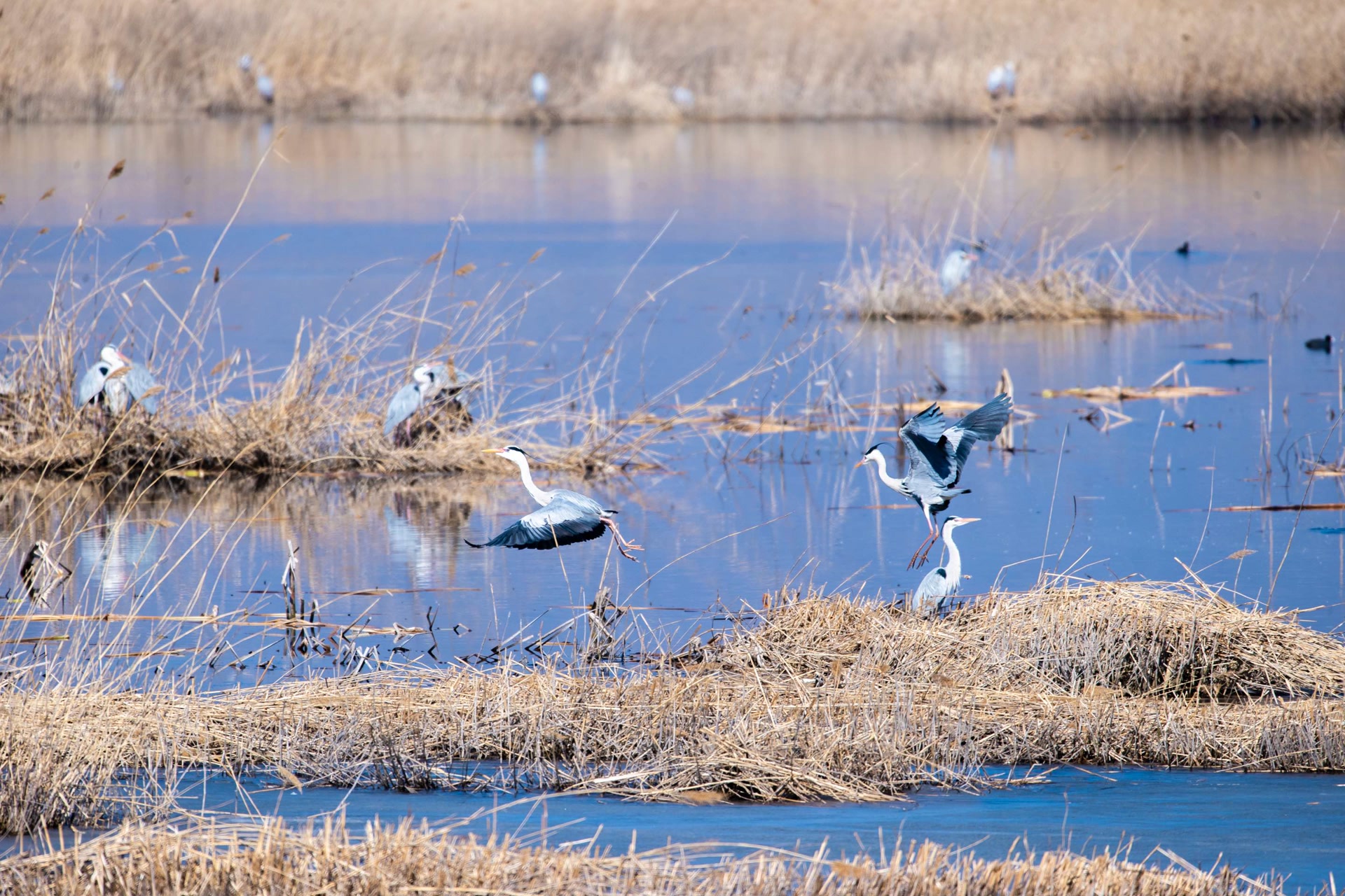 相较于鹤类,鸭类偏爱芦苇丛生的水域,既可以躲避天敌,又能随时下水觅食。