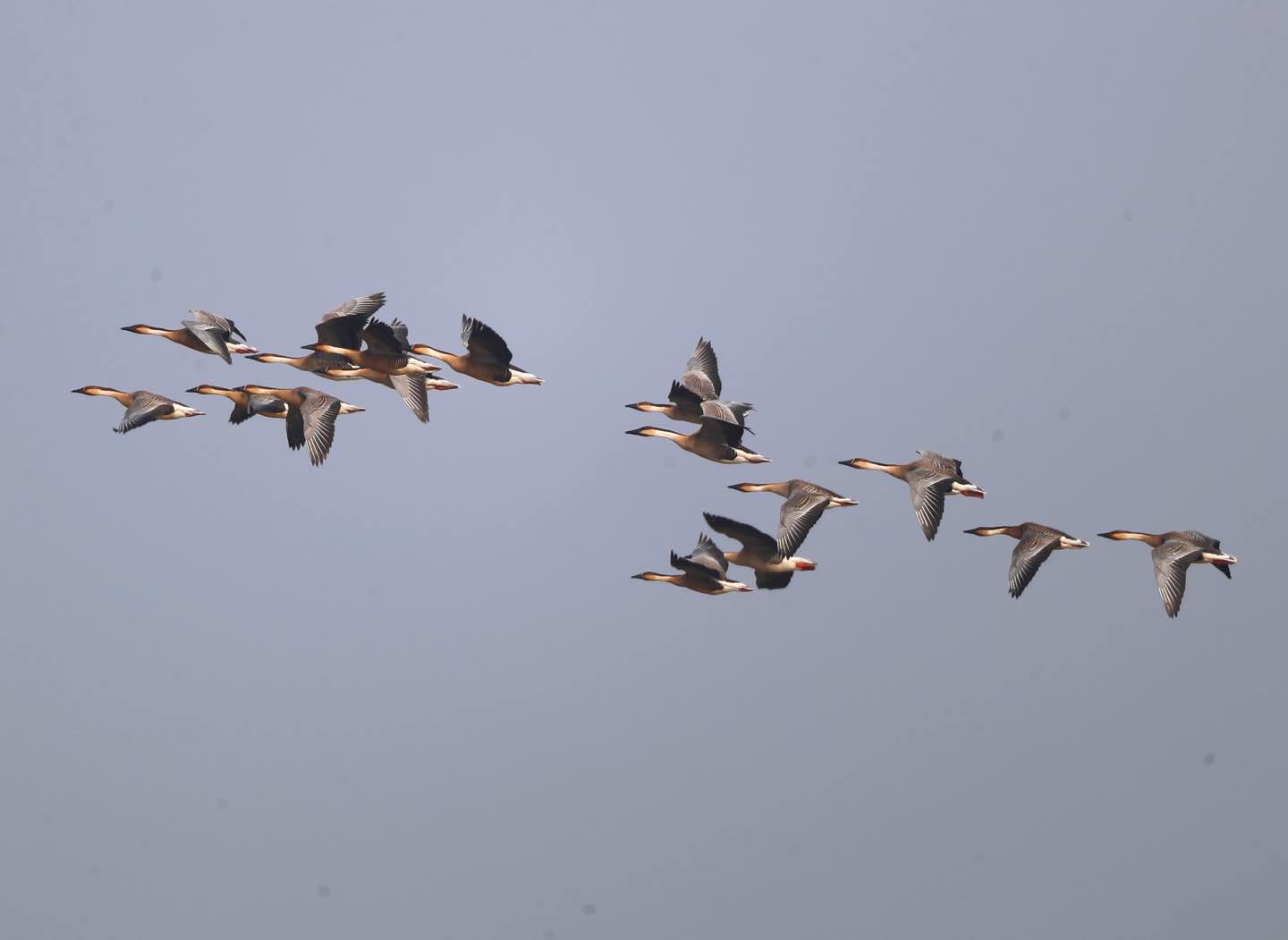 每年12月至次年2月是留鸟越冬季,部分灰鹤和豆雁会选择留在野鸭湖越冬。2月河水化冻,春季迁徙期拉开序幕,雁鸭类作为先遣队陆续抵达。