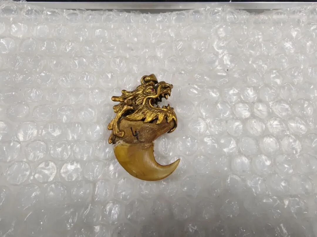 该关驻邮局办事处关员在对进境邮件实施机检查验时,发现一个邮件图像显示异常。经开箱查验,发现包裹内有疑似动物爪甲制品1件。经专业机构鉴定,该物品为虎的爪甲组织。