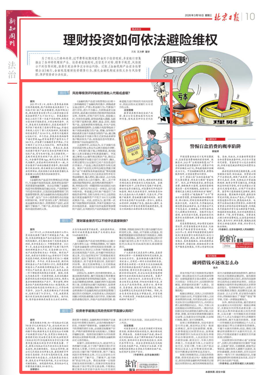 为了吸引人们将年终奖、过节费等短期闲置资金用于投资理财,多家银行密集推出了各种特色理财产品。投资者在选购时,因信息不对称、销售不规范、风险提示不到位等问题,容易引发法律争议与诉讼纠纷。近期,《金融机构产品适当性管理办法》施行,全面规范理财投资销售行为,强化金融机构适当性义务与风险管控,保护投资者合法权益。