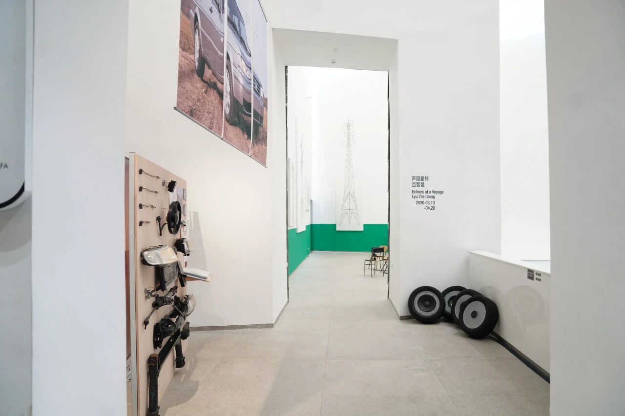 这场音乐会是同日开幕的展览“声回路转——吕智强个人项目”的延伸。作为“广角°青年实验项目空间”的年度展览之一,该展以“旅行”与“声音”为线索,融合装置、影像、声音等多种媒介,构建出一个穿梭于记忆与空间之间的感知现场。展厅中,一辆老捷达的部件被细致拆解,仿佛诉说着时间的故事;四只被改装成音响的旧轮胎,低声播放着艺术家旅途中的声音记忆。