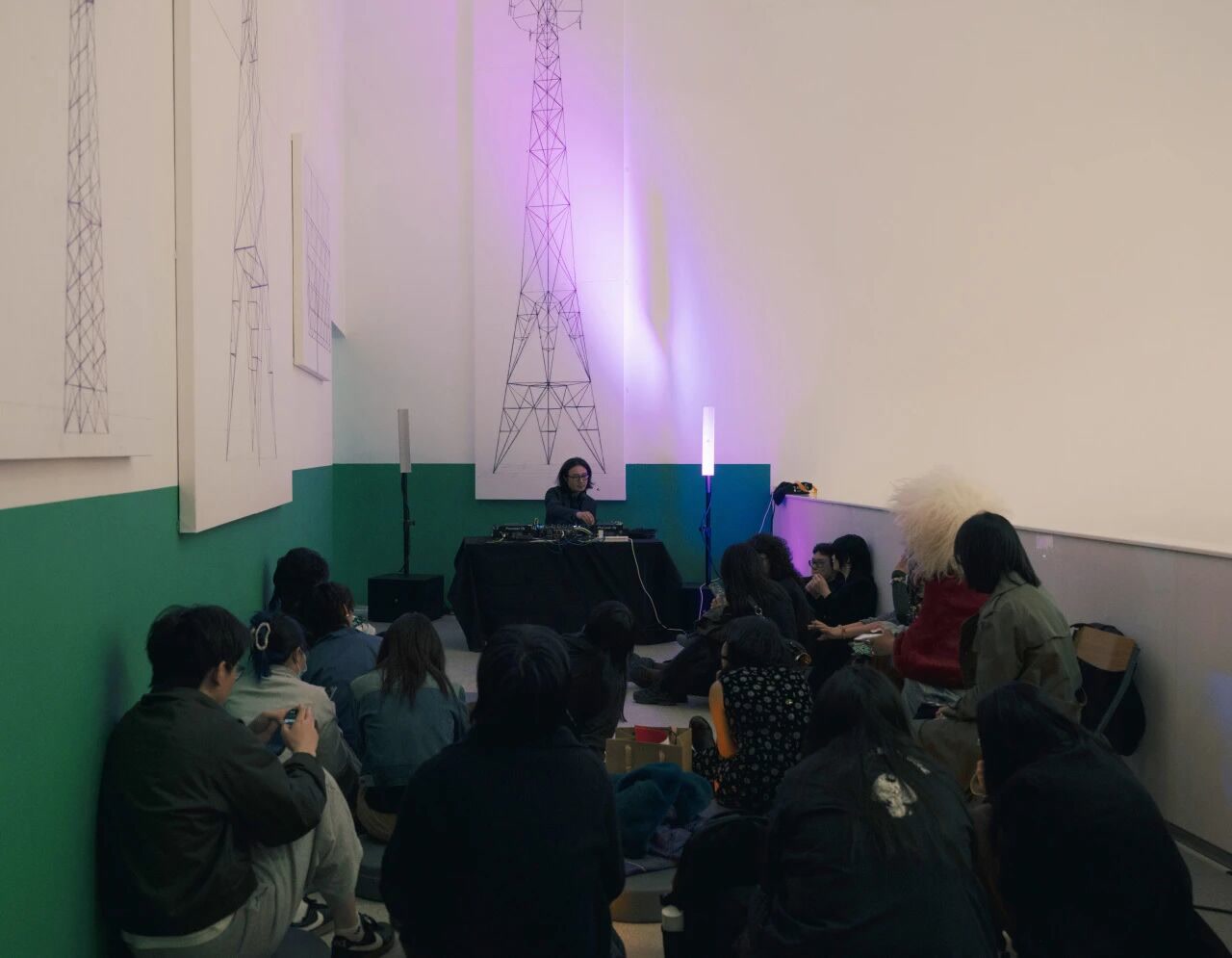 日落时分,中央美术学院美术馆化身为一座流动的声音场域。3月18日傍晚,一场名为“海市蜃楼”的声音艺术音乐会在此上演,现场观众席地而坐,沉浸于由光影与听觉交织而成的感官旅程。担任DJ之一的,正是艺术家、中央美术学院实验艺术与科技艺术学院教师吕智强。