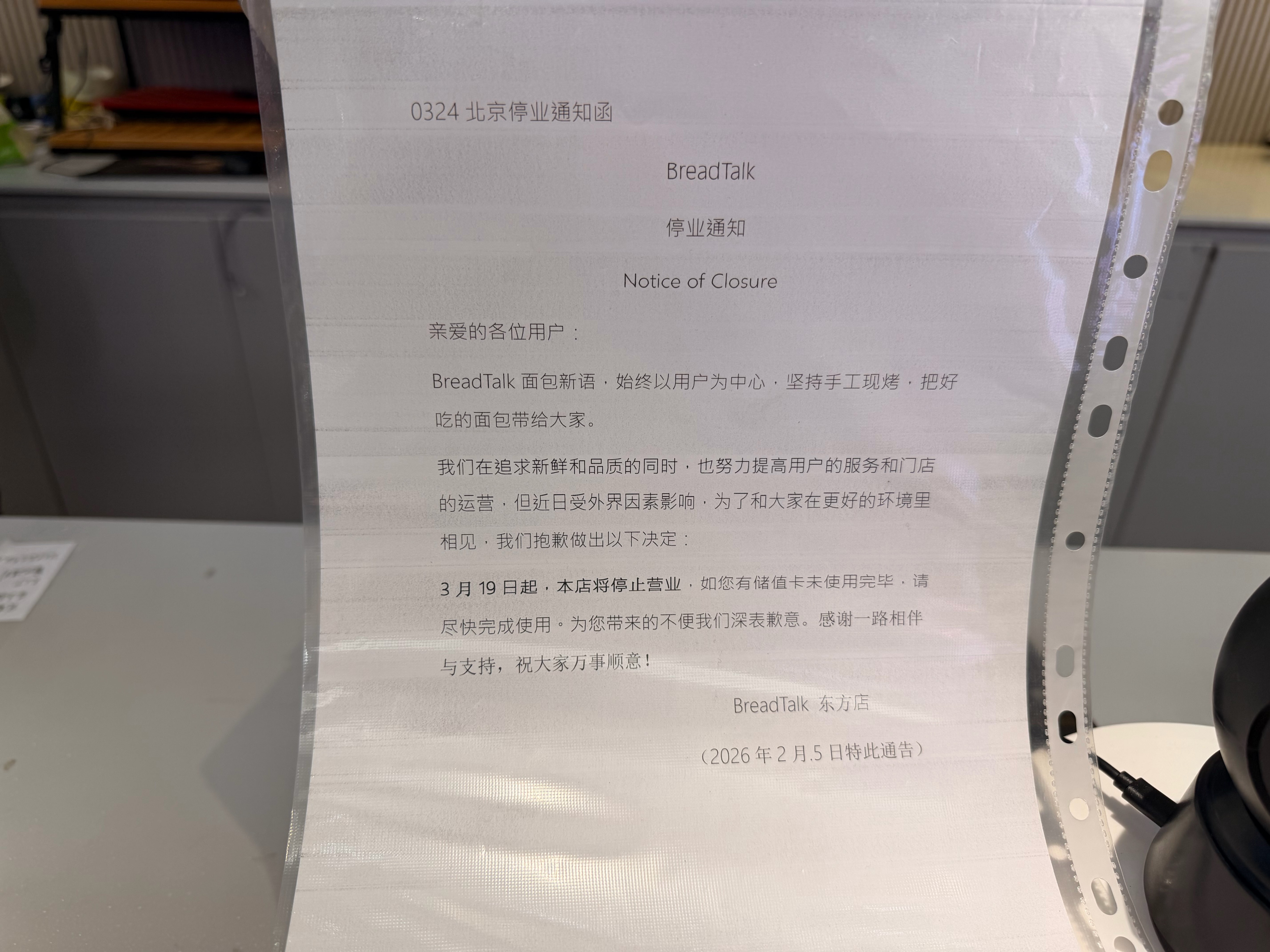 此前店铺公布的一份停业通知函显示:“受外界因素影响,为了和大家在更好的环境里相见,我们抱歉做出以下决定:3月19日起本店将停止营业,如您有储值卡未使用完毕,请尽快完成使用。”