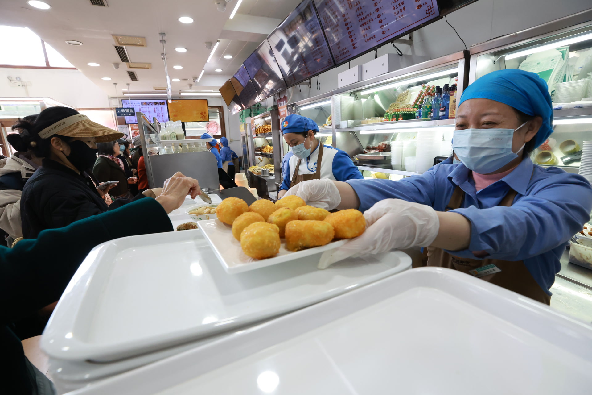 早上8点多,店里飘出阵阵炸糕的焦香,等着买炸糕的市民已经排起长队,一直延伸到店门口。“每年二月二都来这儿买‘龙胆’,这才是老北京的味儿!”一位大姐从售货员手中接过炸糕,炸糕外皮金黄酥脆,咬一口还冒着热气。后面一位带孩子的大爷特意多买了几盒,说要给家里人都带点。