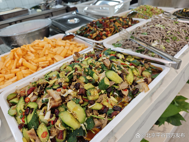位于苹东园区党群服务中心的社区百姓食堂,正是歇脚用餐的最佳选择。这里秉持公益普惠原则,为居民准备了丰盛的16元自助餐。近百种美味不限量畅享!老年人还可凭老年卡享受优惠政策。在荤菜区,红烧肉、鱼香肉丝、宫保鸡丁等硬菜肉香四溢;素菜区里,地三鲜、酸辣土豆丝、家常豆腐清爽解腻。每日菜品由大厨、炒菜机器人新鲜现炒80余种菜品,确保营养均衡、干净卫生。无论是赶集的乡亲,还是周边的上班族,这里都是最实惠、最安心的“自家食堂”。