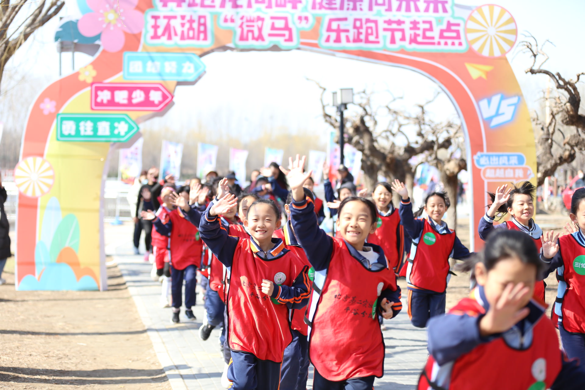 3月20日,北京第二实验小学平谷分校马坊校区与王辛庄校区联动举办第三届环湖“微马”乐跑节。5000名师生、家长走上小龙河湿地公园、城北湿地公园的湖畔步道,共赴一场春日里的体育盛宴。