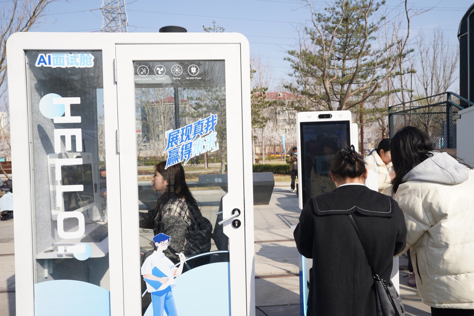 现场还设置了数智服务区,AI面试舱、智能就业一体机等设施,为求职者提供面试模拟、简历制作和优化等服务,提升求职竞争力。