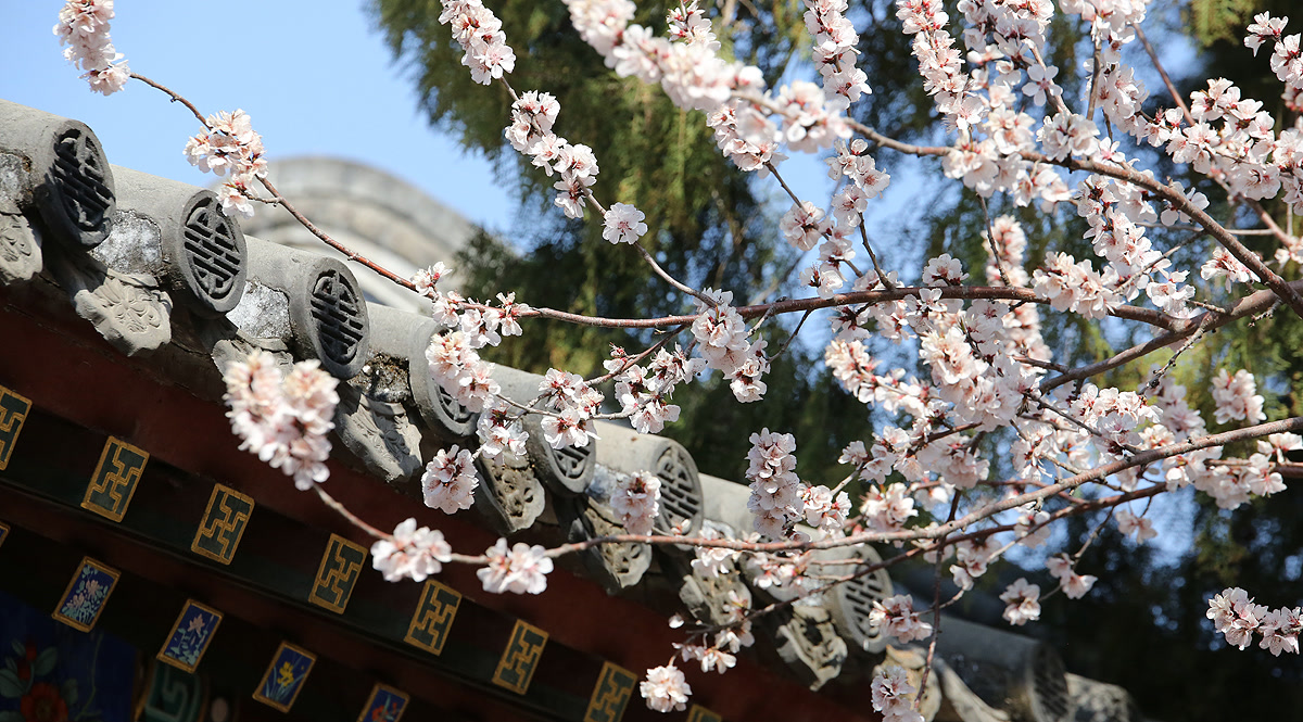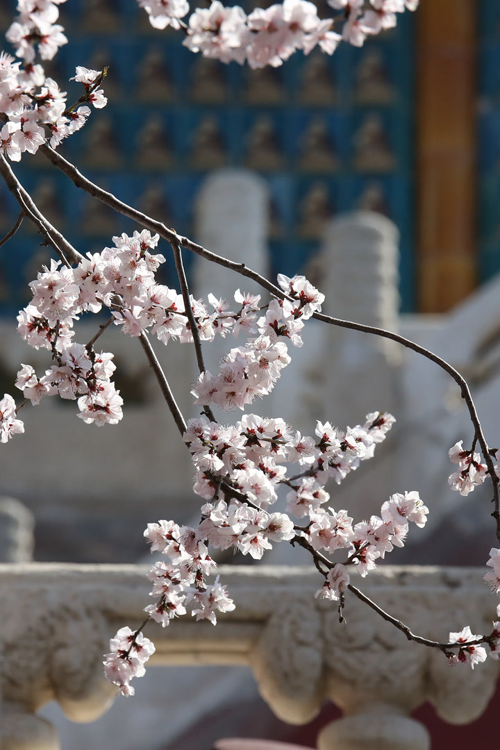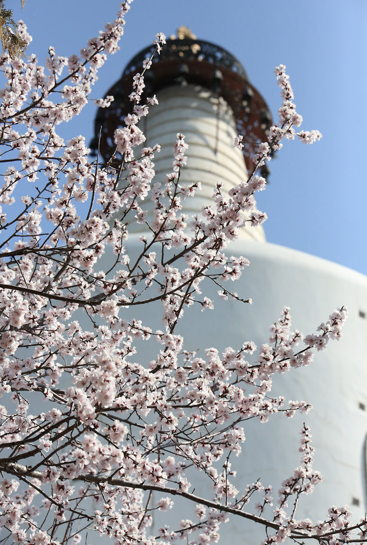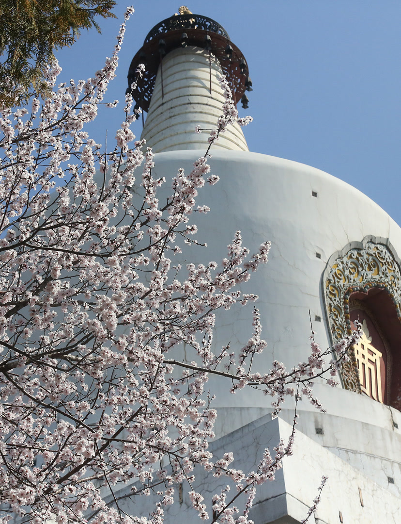 📸 拍照小贴士:以白塔为背景,用花枝做前景,轻松get“山桃映白塔”经典机位,汉白玉栏杆与粉白桃花绝配,古风感拉满。