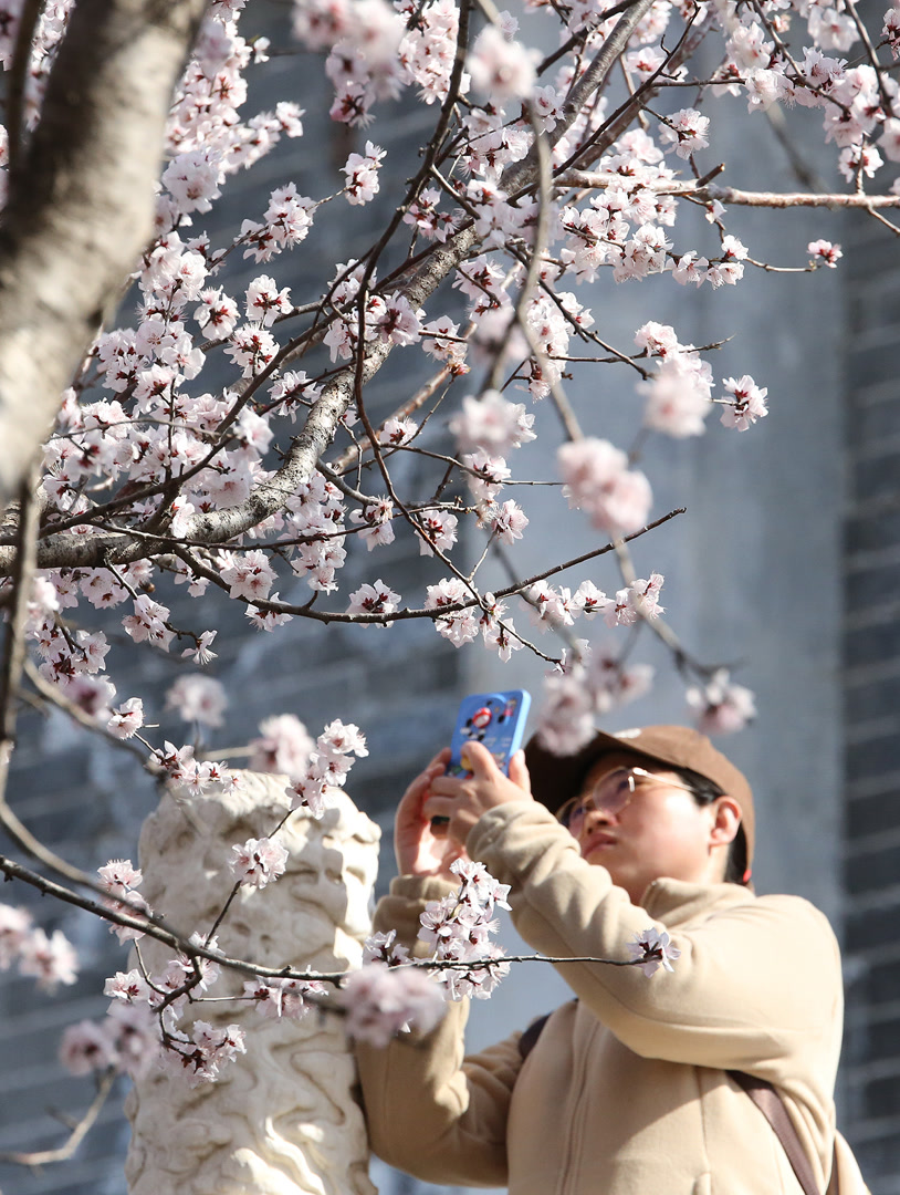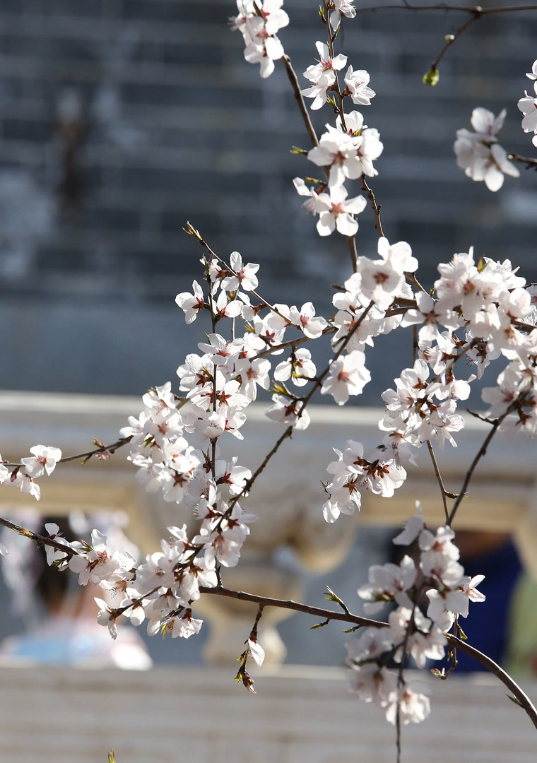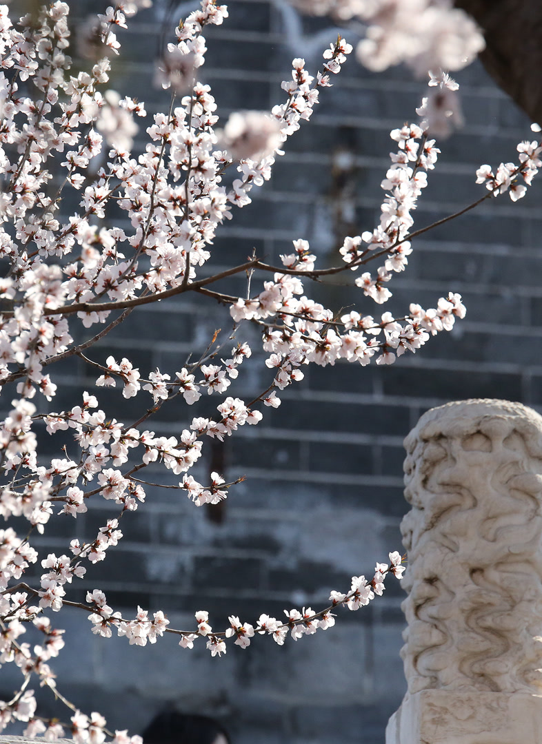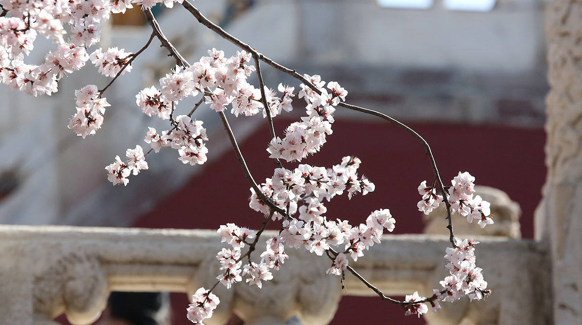 📸 拍照小贴士:以白塔为背景,用花枝做前景,轻松get“山桃映白塔”经典机位,汉白玉栏杆与粉白桃花绝配,古风感拉满。