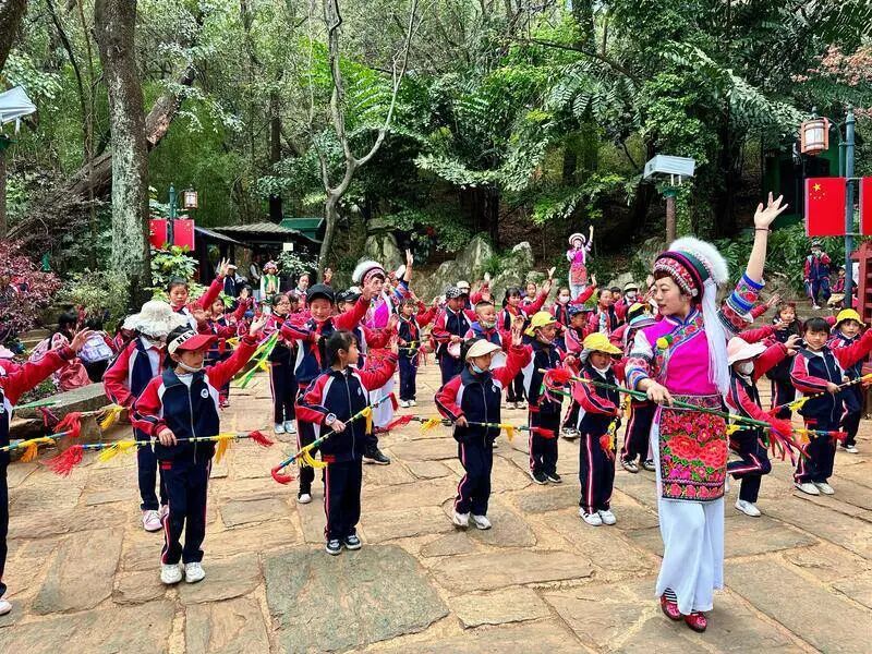 在蝴蝶泉边开展的白族打跳体验和白族霸王鞭舞教学活动,如今的蝴蝶泉边,已成为传承民族文化、开展文化交流的重要地标。