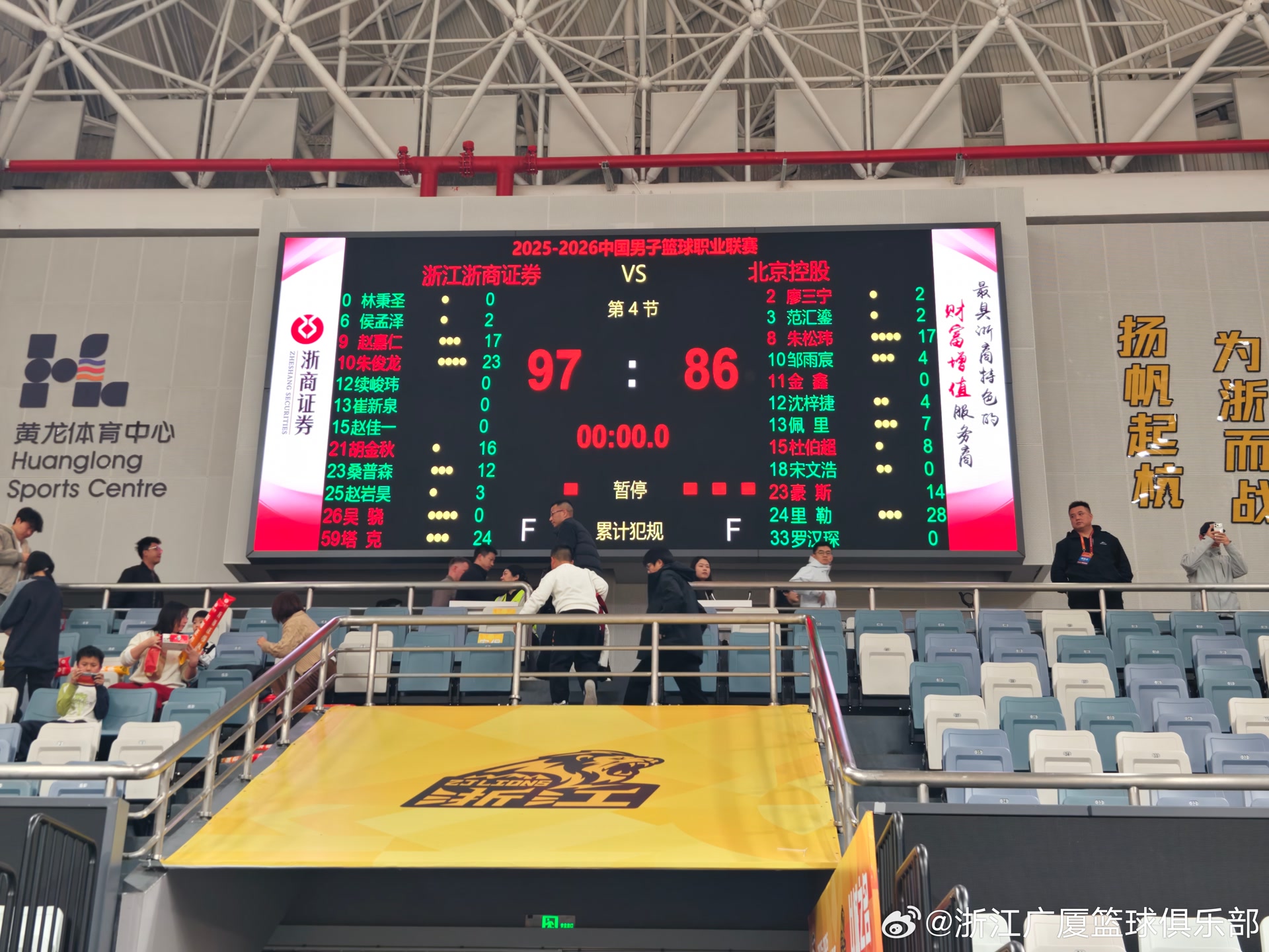 第三节,广厦展现出强队底蕴,北控则无法延续上半场的稳定命中率,又出现了此前两轮暴露出的高压下失误过多的顽疾。单节被对手打出20比12的得分比,北控陷入被动追分局面。末节,朱俊龙、胡金秋两名国手和外援塔克火力不减,北控最终无力回天。