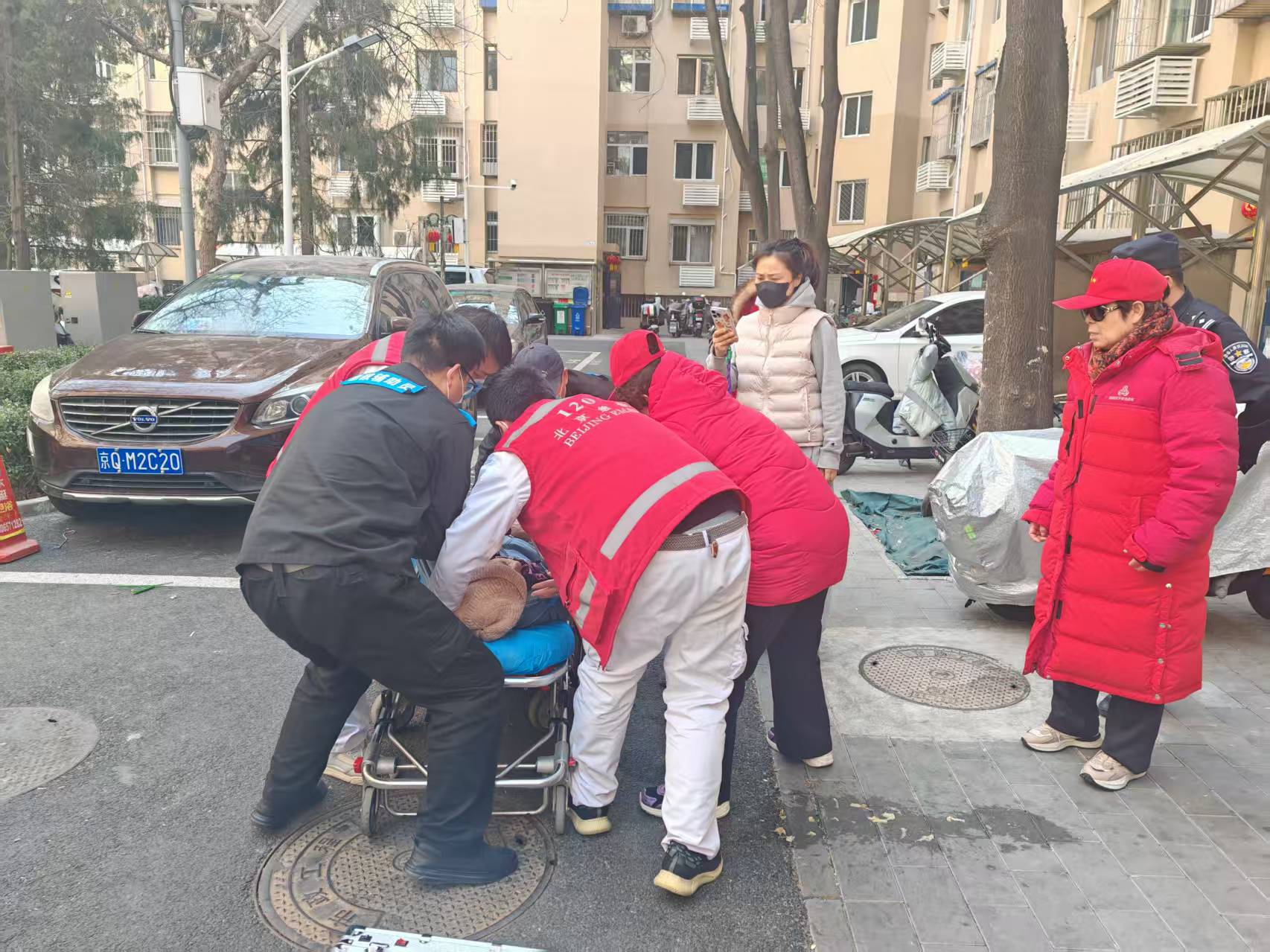 当天下午2时许,在椿树园社区9号楼门前,一位满头白发的老人突然身子一歪,重重栽倒在地,嘴里涌出大量呕吐物。这一幕,正好被在小区值守的居民志愿者张素英、田桂兰看到。两人没有丝毫犹豫,几乎同时冲上前去,一边轻拍老人肩膀试图唤醒她,一边用手轻轻护住老人的头部,并迅速拨通了社区副站长张玉华的电话。