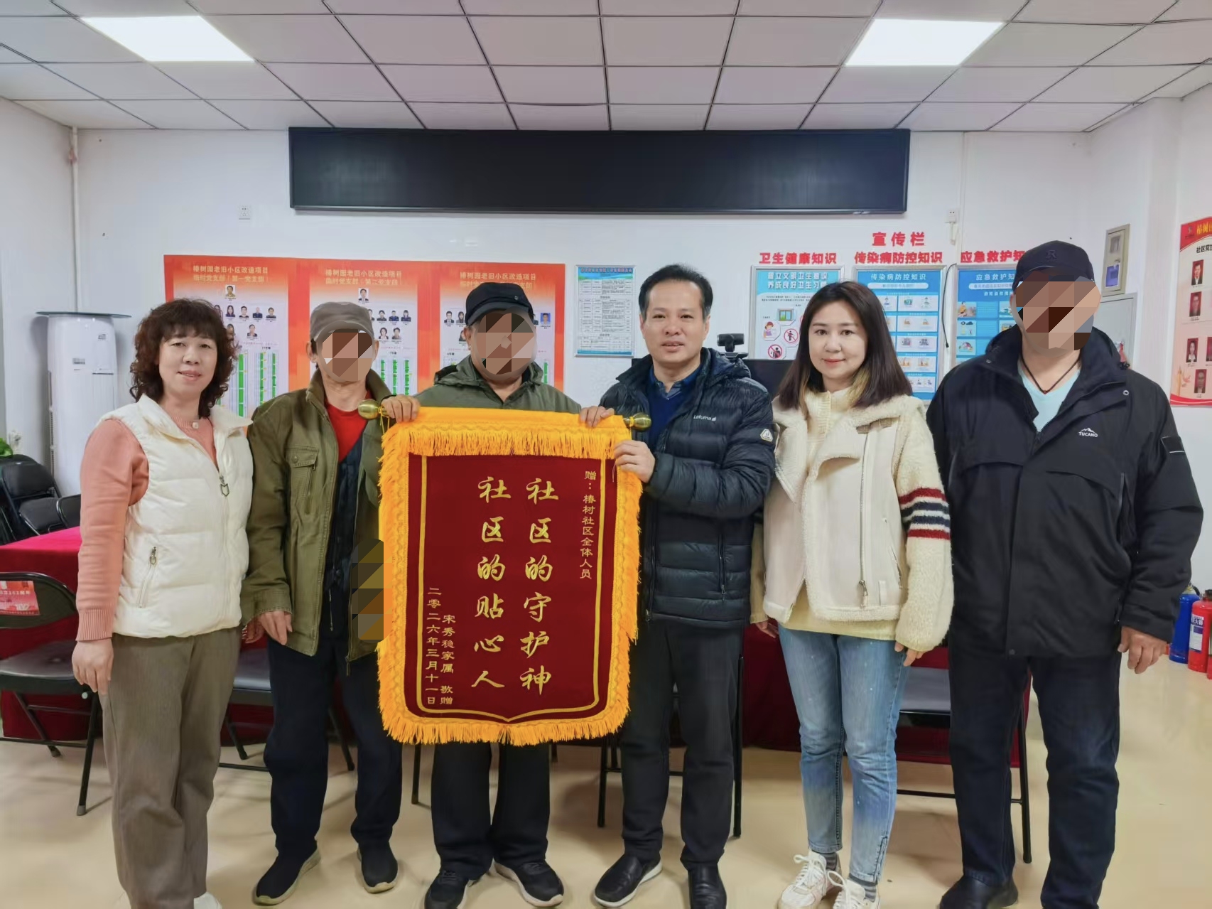 3月16日,老人家属带着锦旗来到社区。老人的儿子紧紧握着刘飞的手,声音哽咽,连连致谢:“多亏了你们这些好心人,救了我母亲一命,你们是我们全家的恩人!”