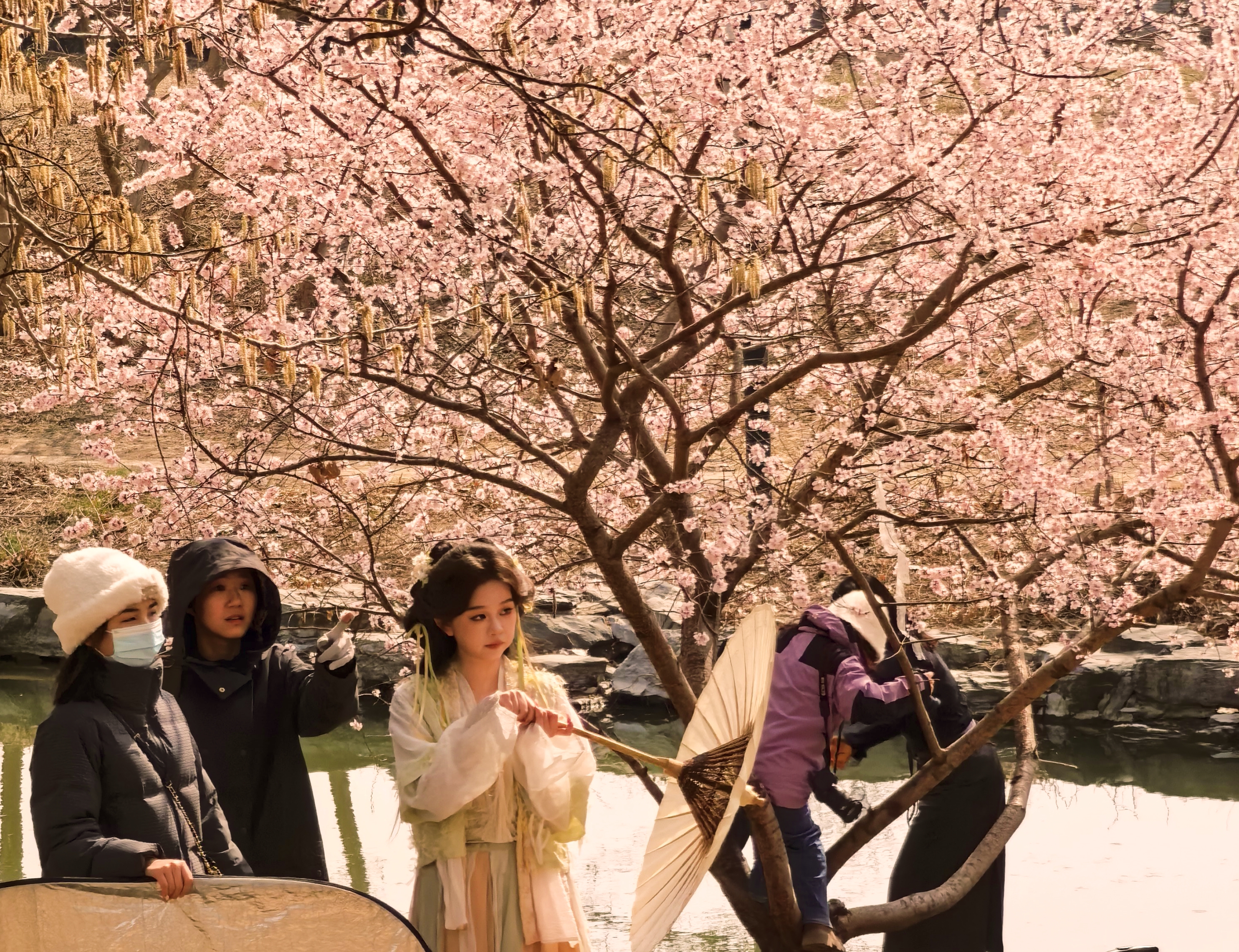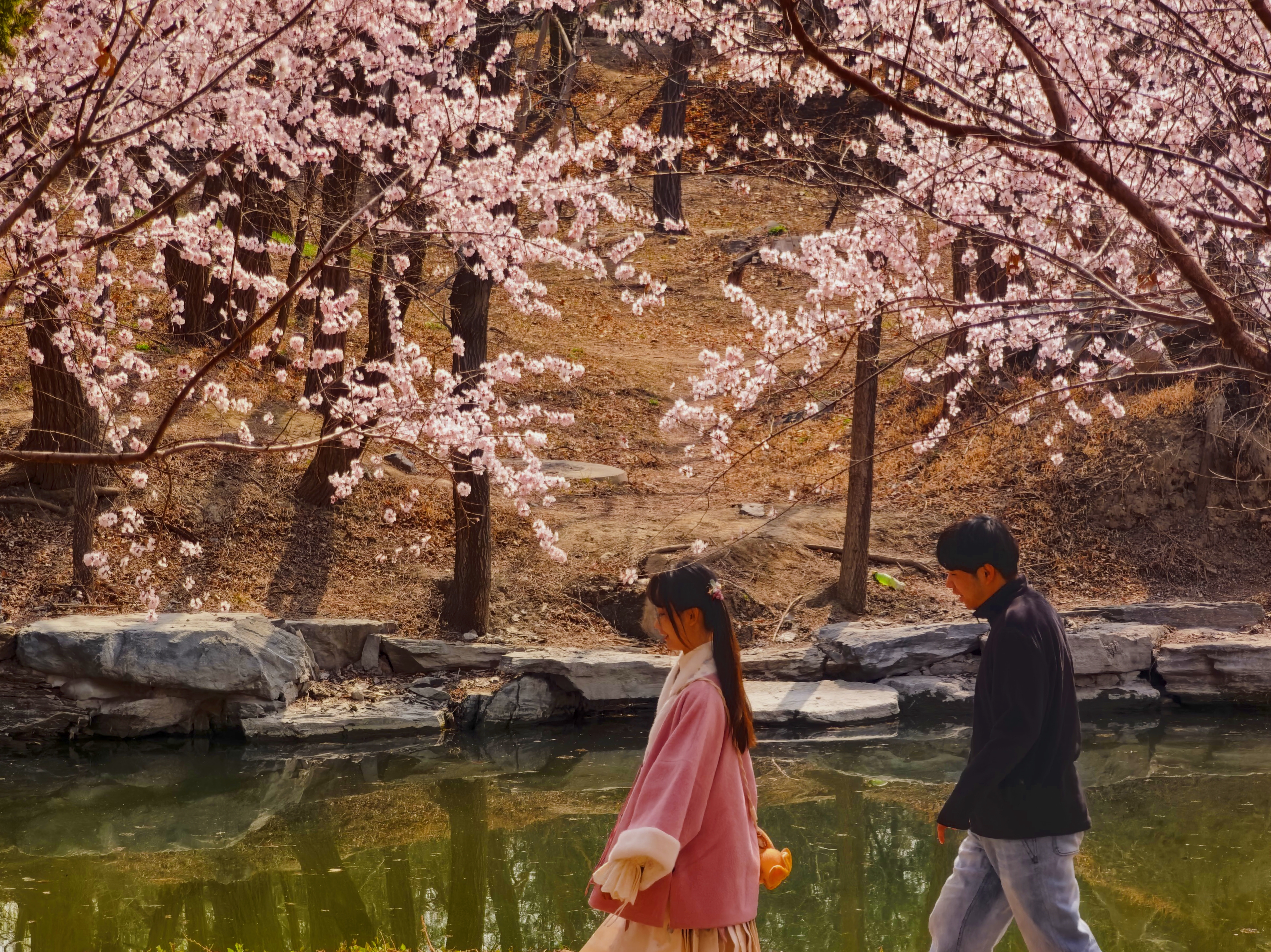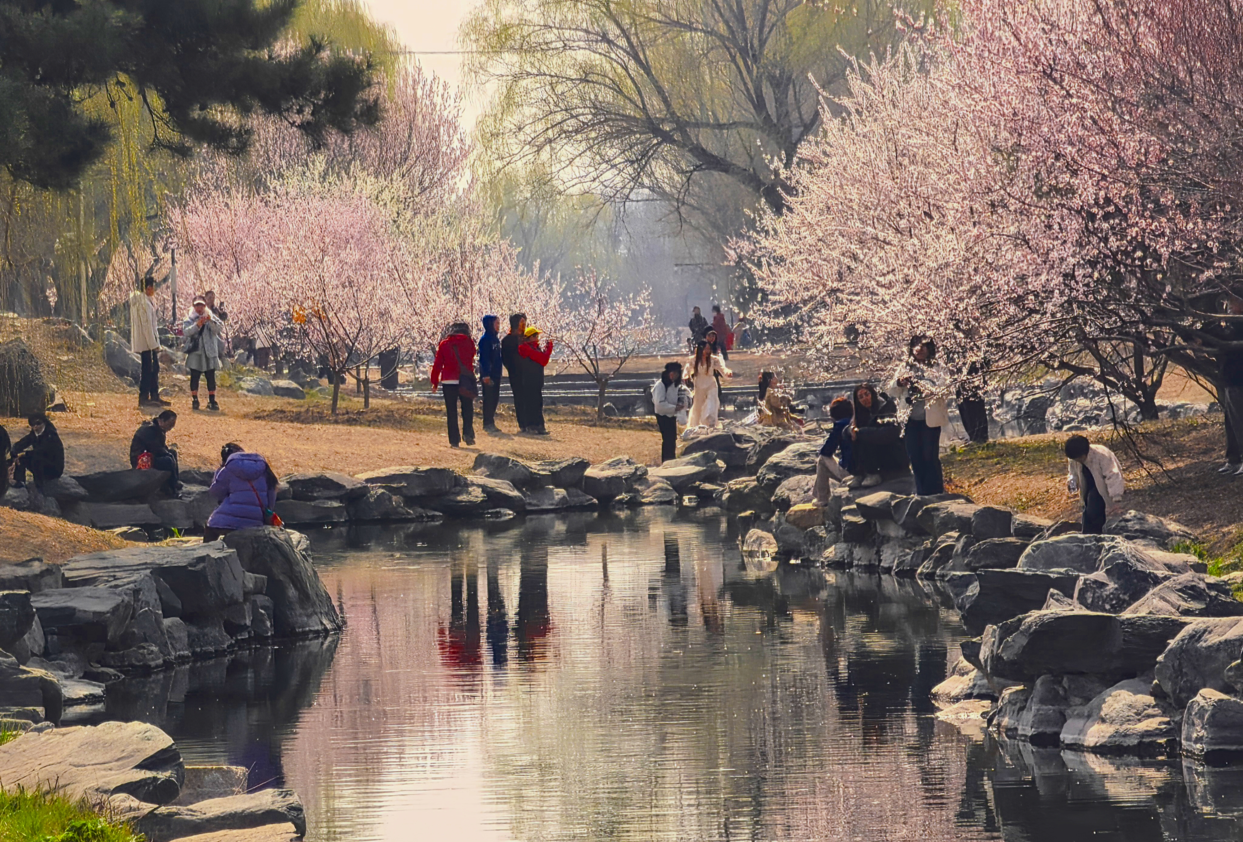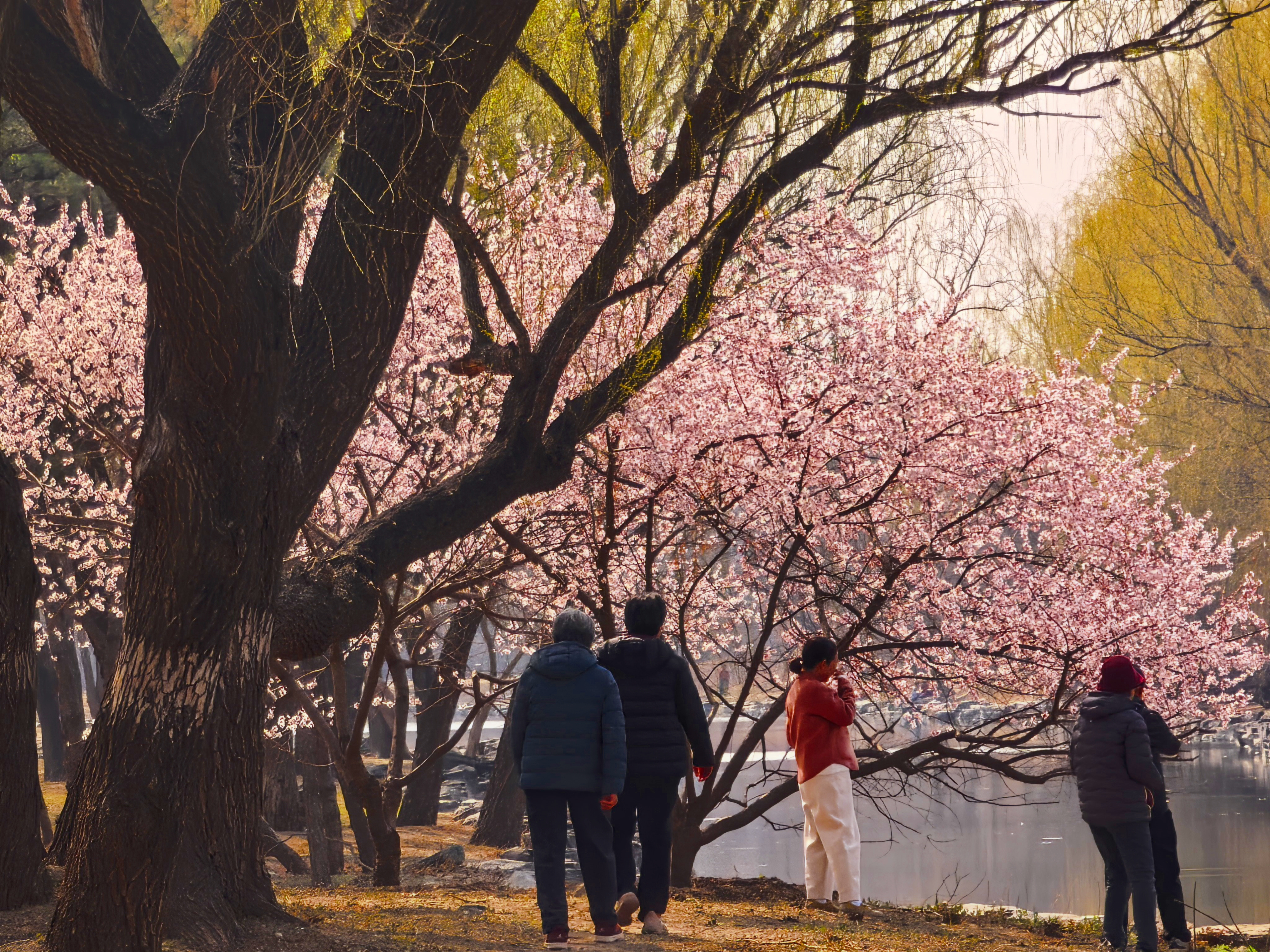 北京圆明园遗址公园迎来桃花与迎春花盛花期。粉霞缀枝头,碧水映花影,游客漫步石岸、倚坐湖滨,或拍摄留念,或静赏春色,镜头中尽是盎然生机与人间烟火相映的春日诗篇。