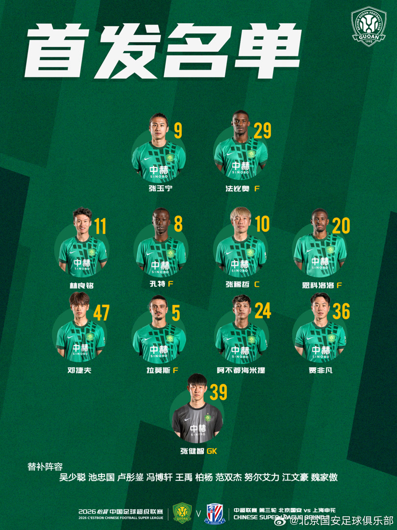 3月21日下午,北京国安队将在2026赛季中超联赛第三轮中主场迎战老对手上海申花。赛前1小时,两队首发确定,国安因阵中多名主力受伤,主帅蒙哥马利本场再次调整首发。老将张稀哲取代塞尔吉尼奥,本赛季首次首发。