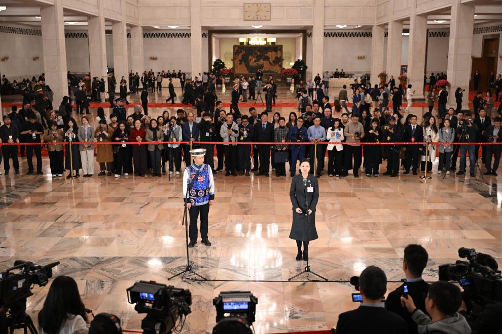 3月12日,第十四届全国人民代表大会第四次会议第三场“代表通道”集中采访活动在北京人民大会堂举行。新华社记者 蔡湘鑫 摄