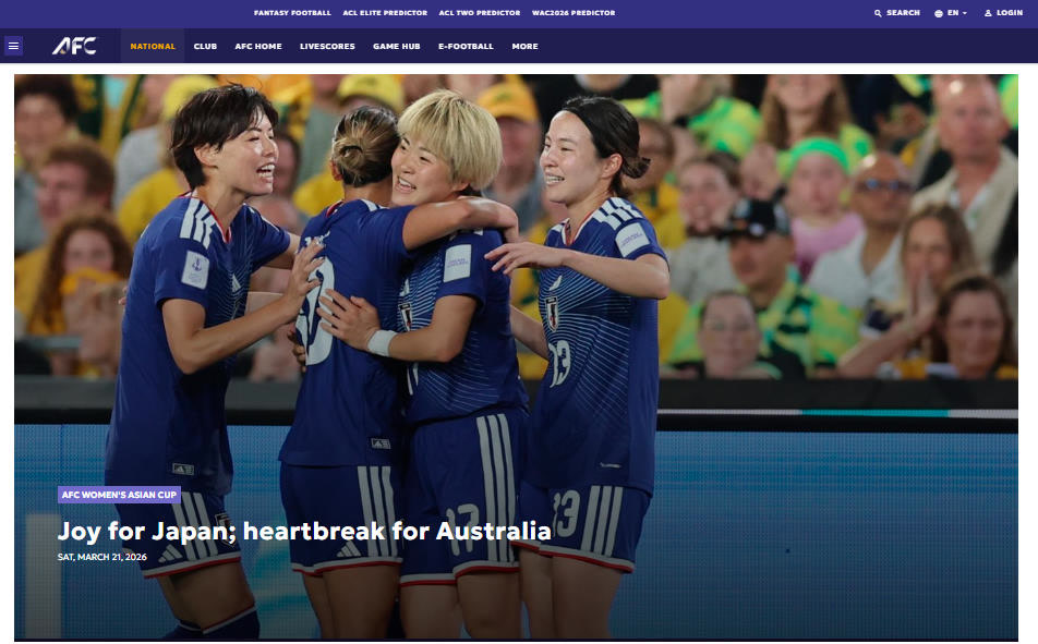 北京时间3月21日晚,2026年女足亚洲杯决赛在悉尼的澳大利亚体育场进行。经过90分钟的较量,日本队1比0击败东道主澳大利亚队夺冠。