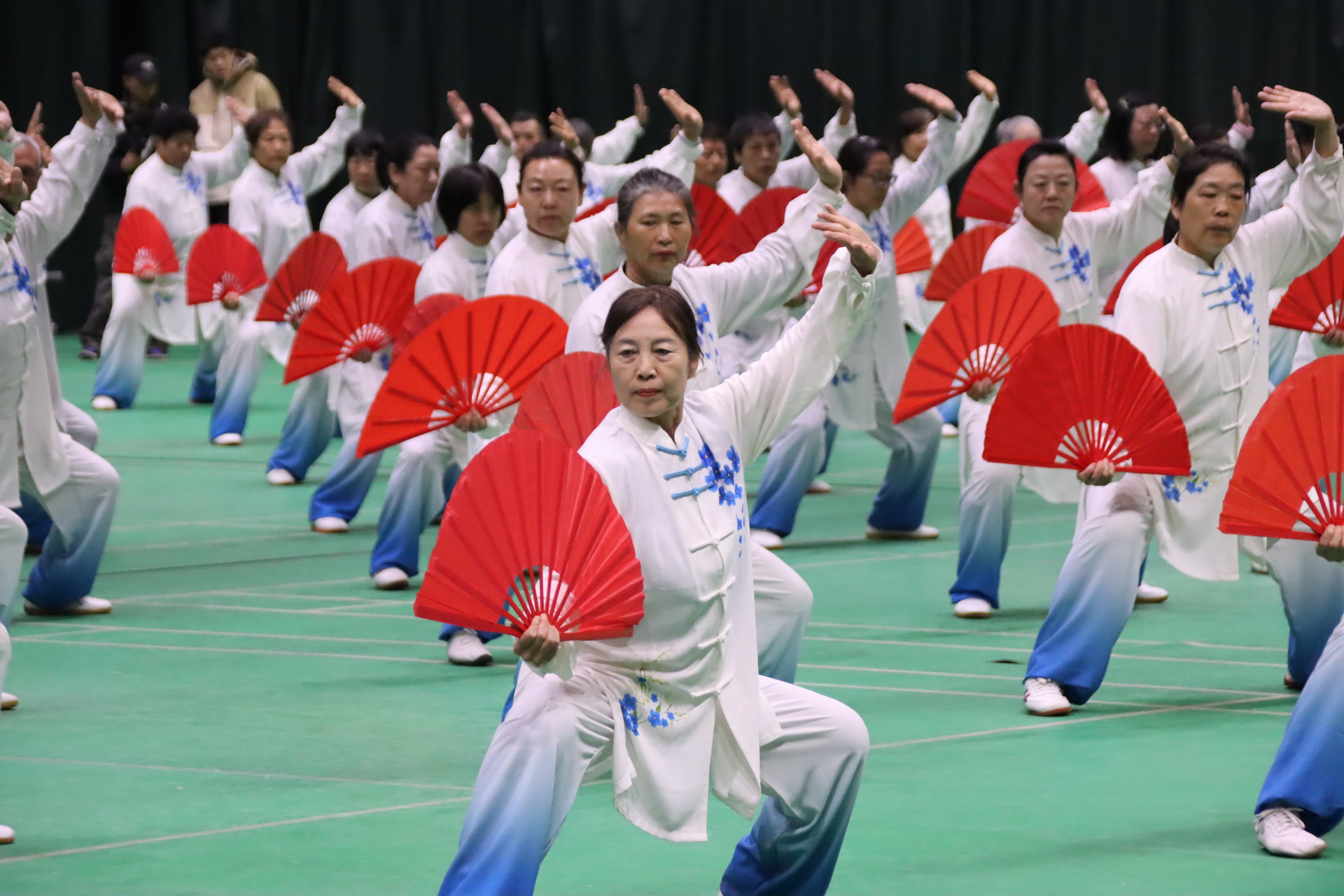 活动开幕式上,朝阳区社会体育指导员和武术骨干们静心“调息入境”后,迅速组成百人方阵。他们身姿矫健,动作整齐划一,二十四式刚柔相济,太极扇舞虎虎生风,编排紧凑有序,其中亦有外国友人参与,彰显中华武术不断走向世界的文化自信。