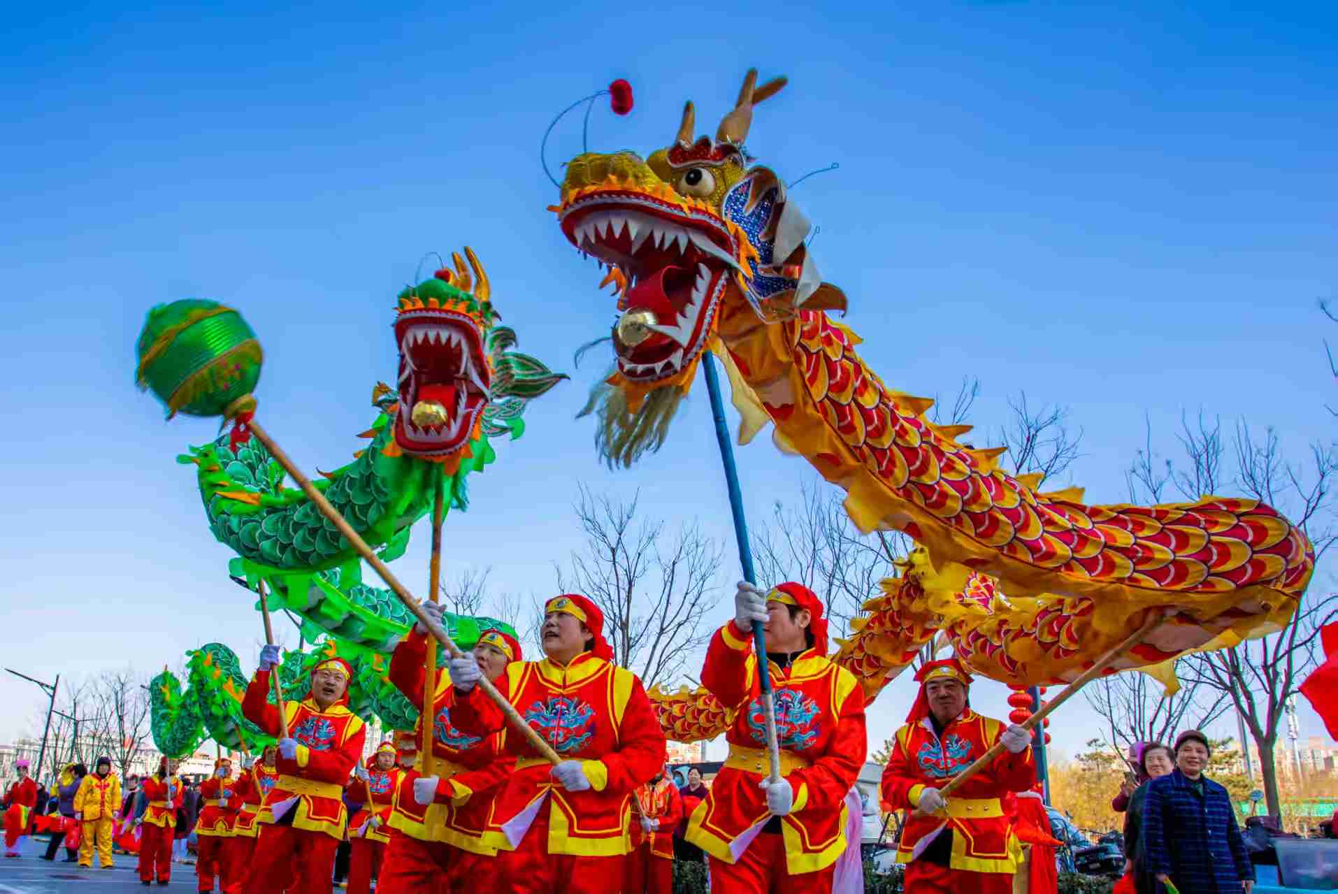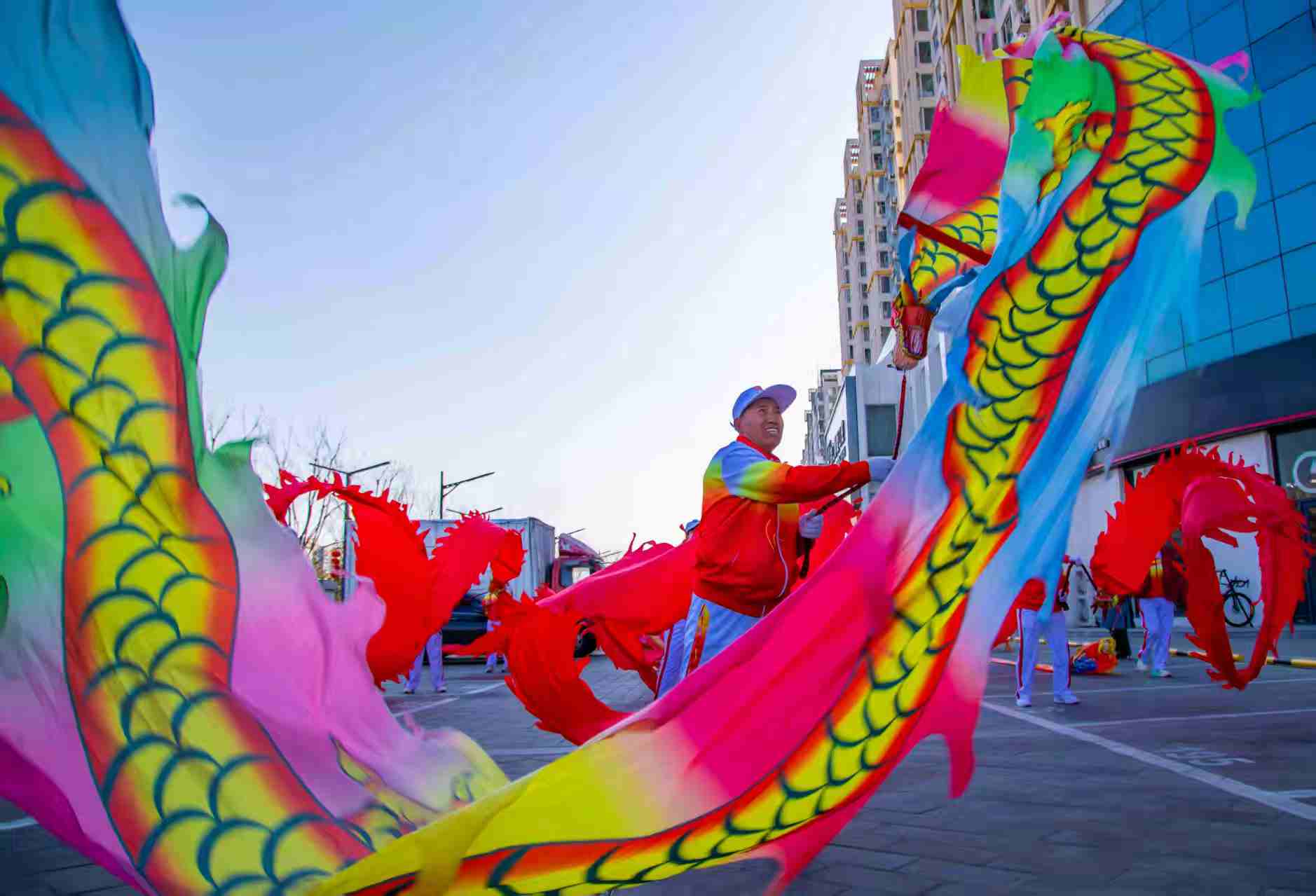彩龙在鼓点里盘旋,红绸跟着笑声飞扬,平日里买菜唠嗑的叔叔阿姨,此刻举着龙头、敲着锣鼓,把二月二的热闹酿成了邻里间的温情。