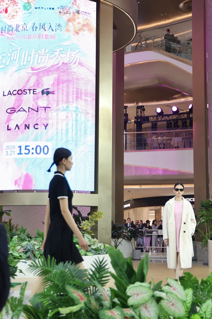 3月21日,北京城市副中心湾里国际娱乐综合体,三场时装秀接连上演,模特在光影水波间穿行,千年运河的东方美学与现代时尚在T台上碰撞交融——“时尚北京·春风入湾——AW2026北京时装周·运河时尚秀场”在这里启幕。