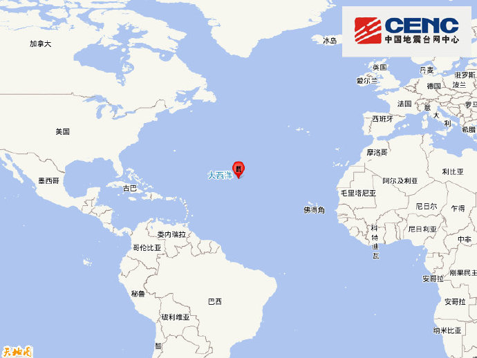 中大西洋海岭北部发生6.7级地震