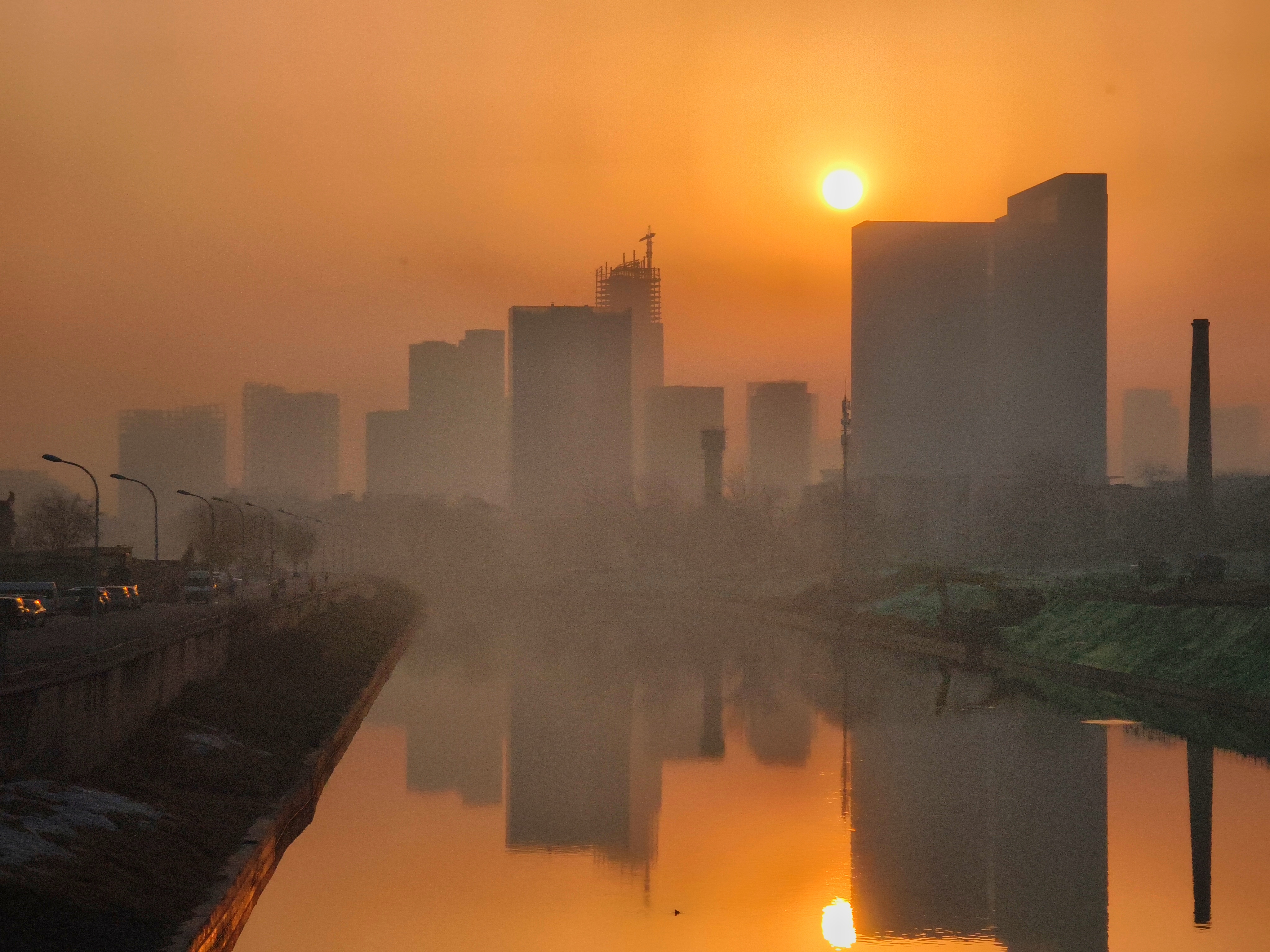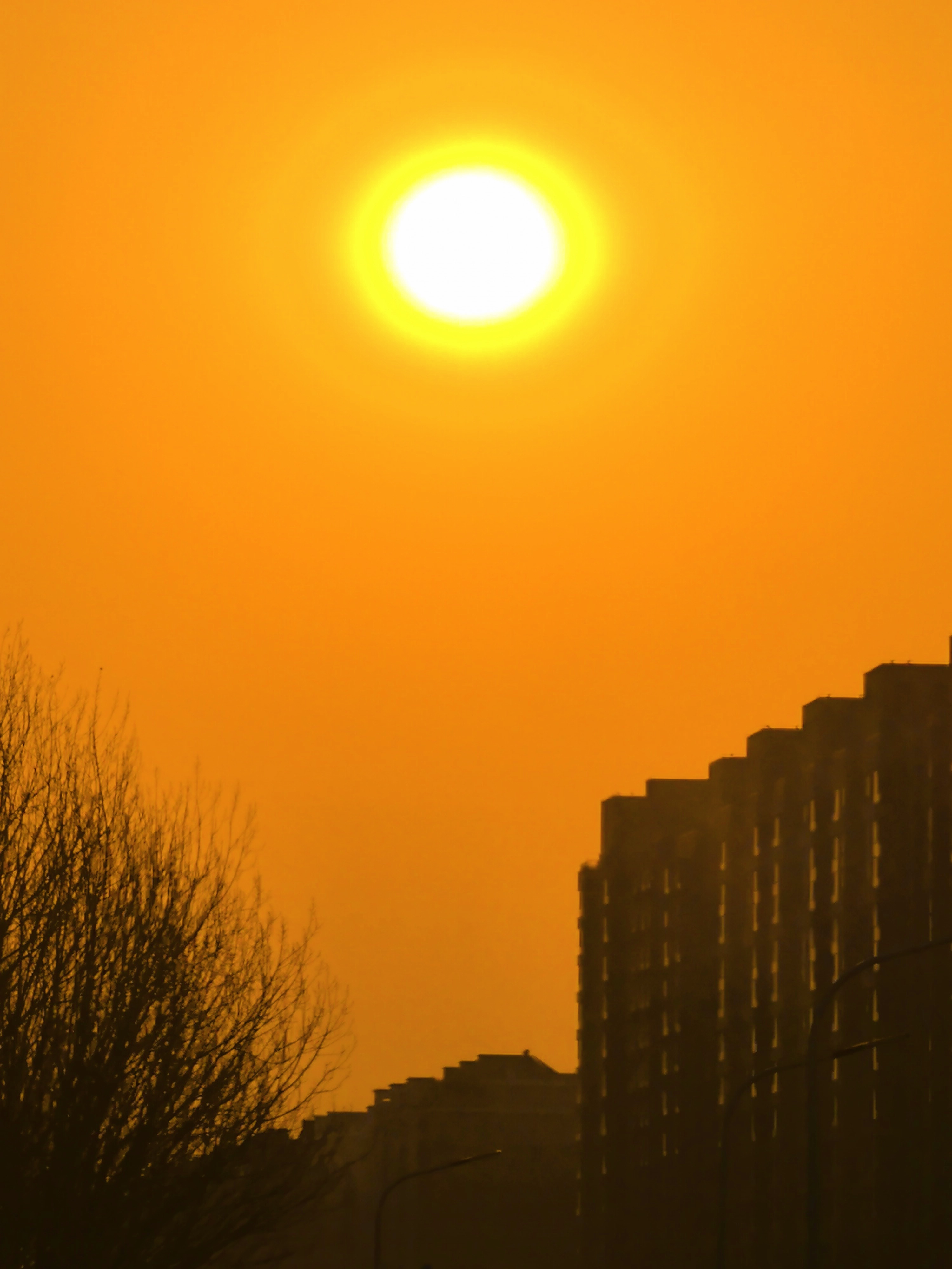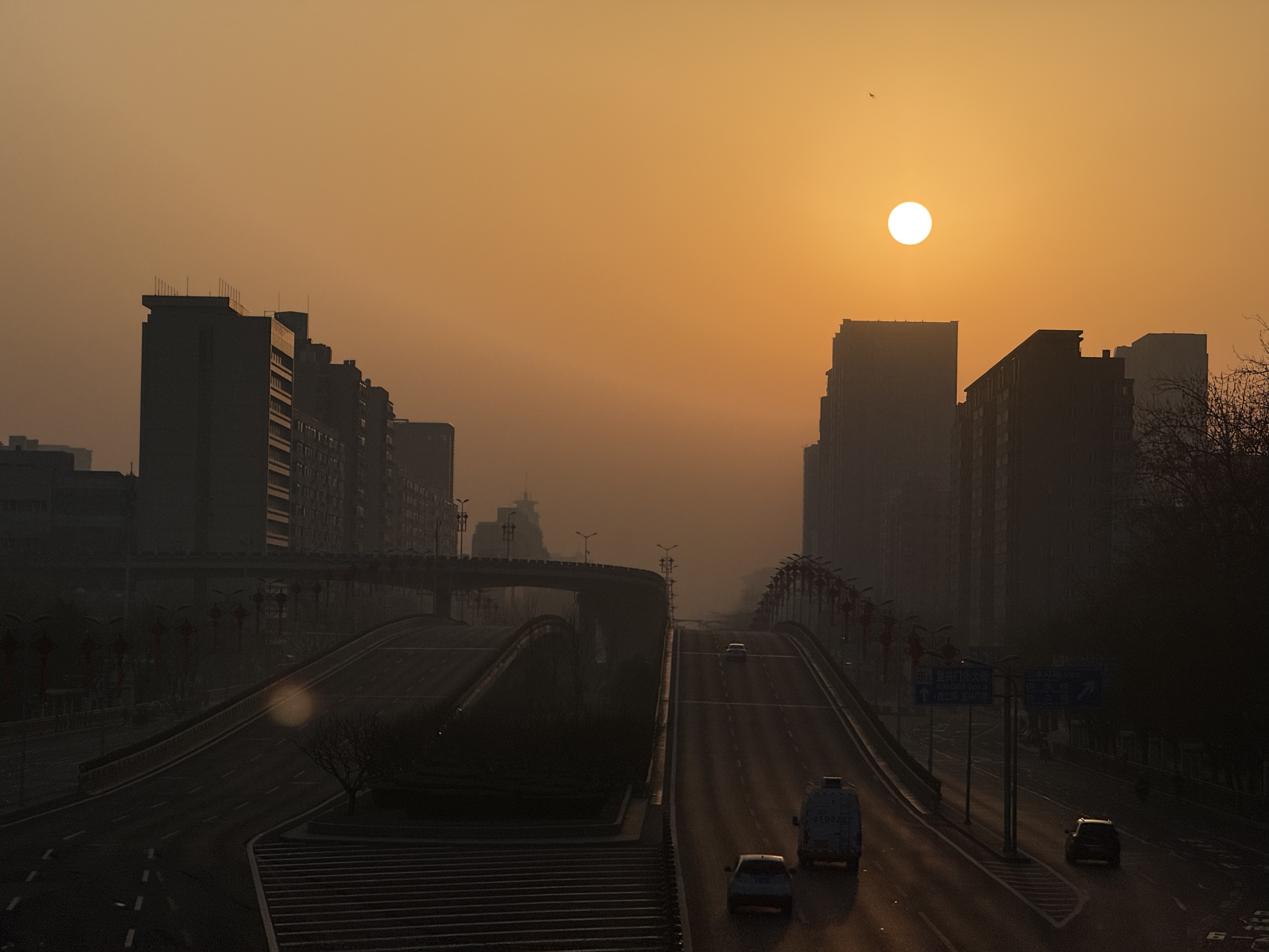 3月22日清晨,北京天晴气爽,美好日出将金色光芒洒满整座城市。