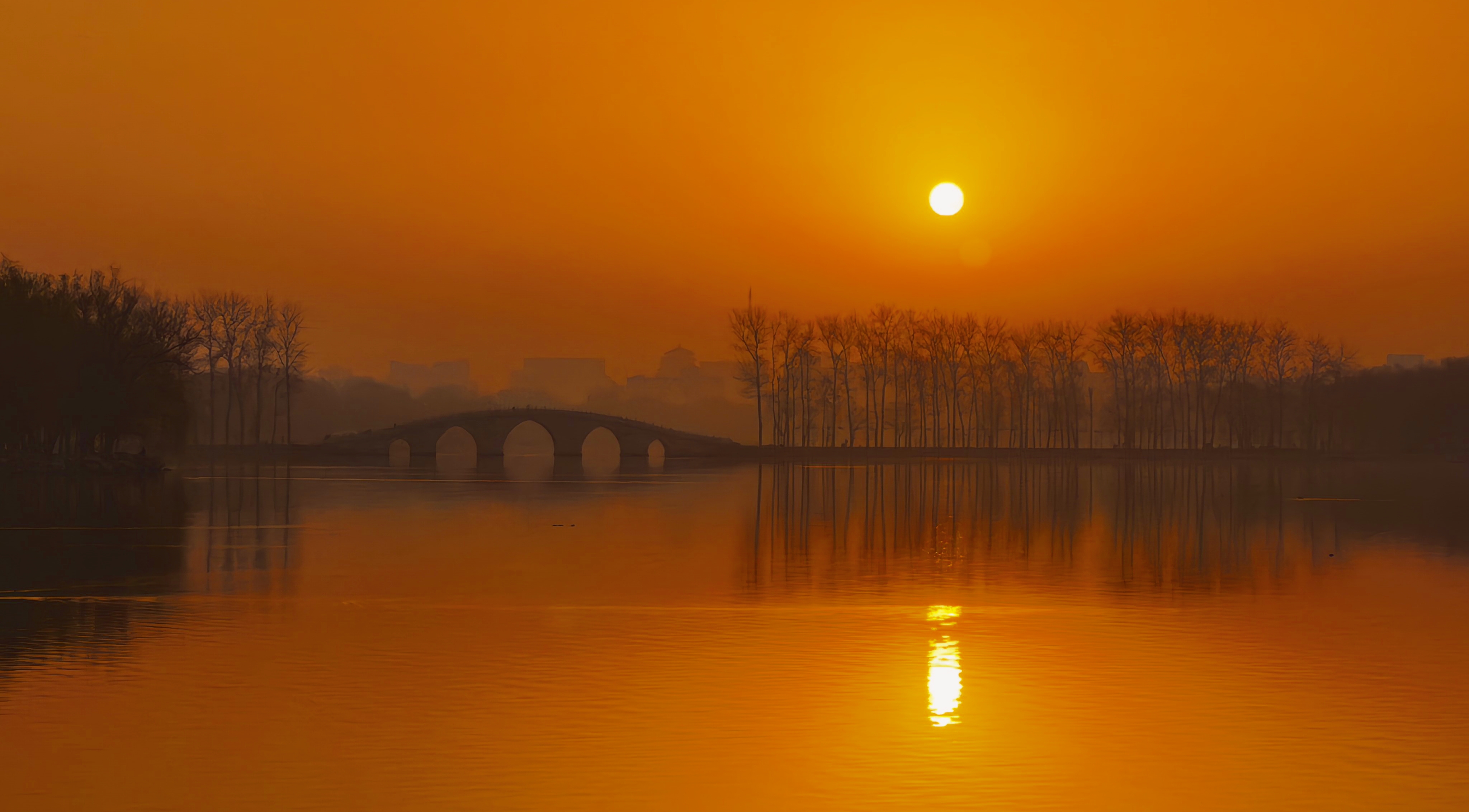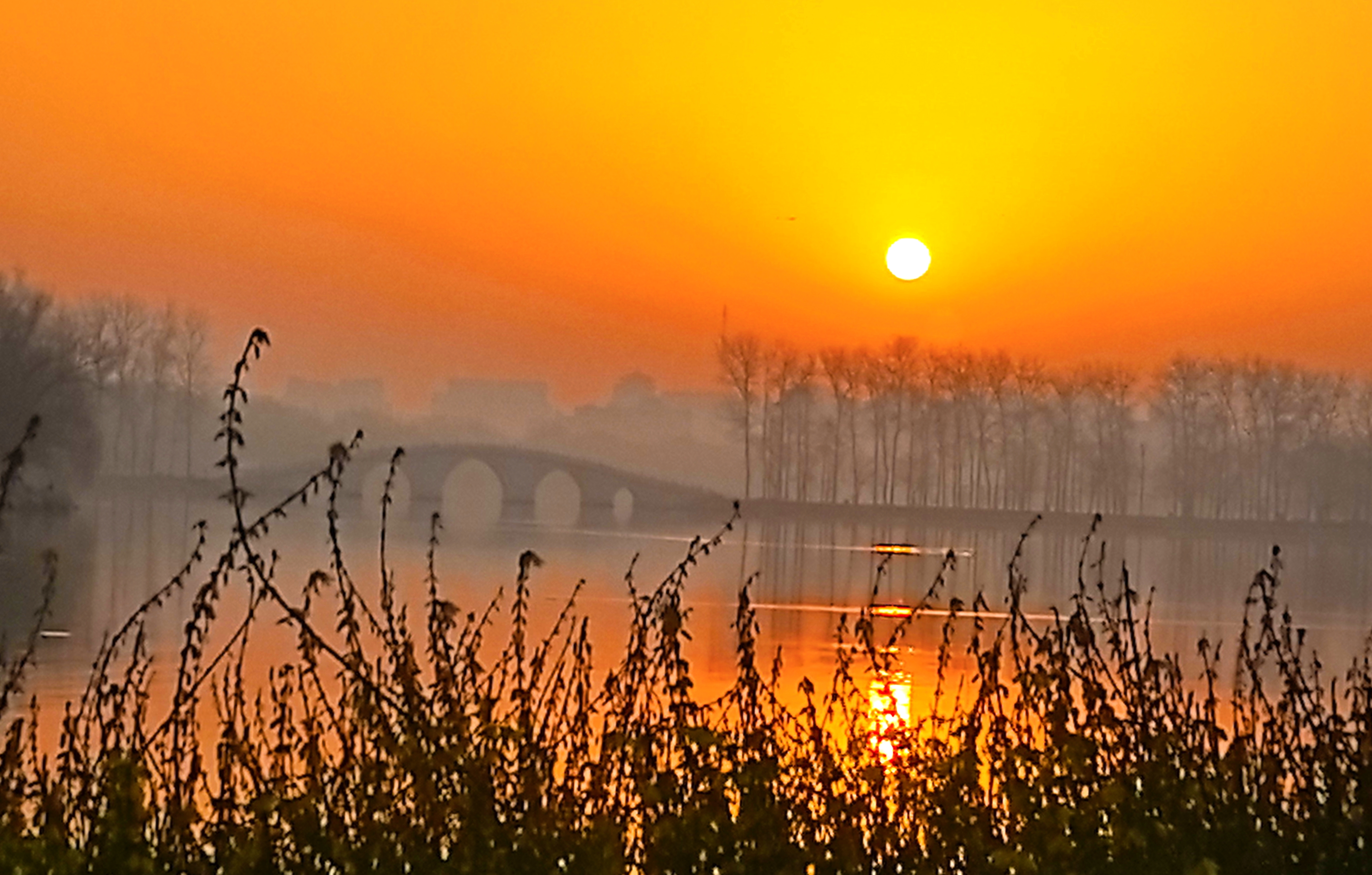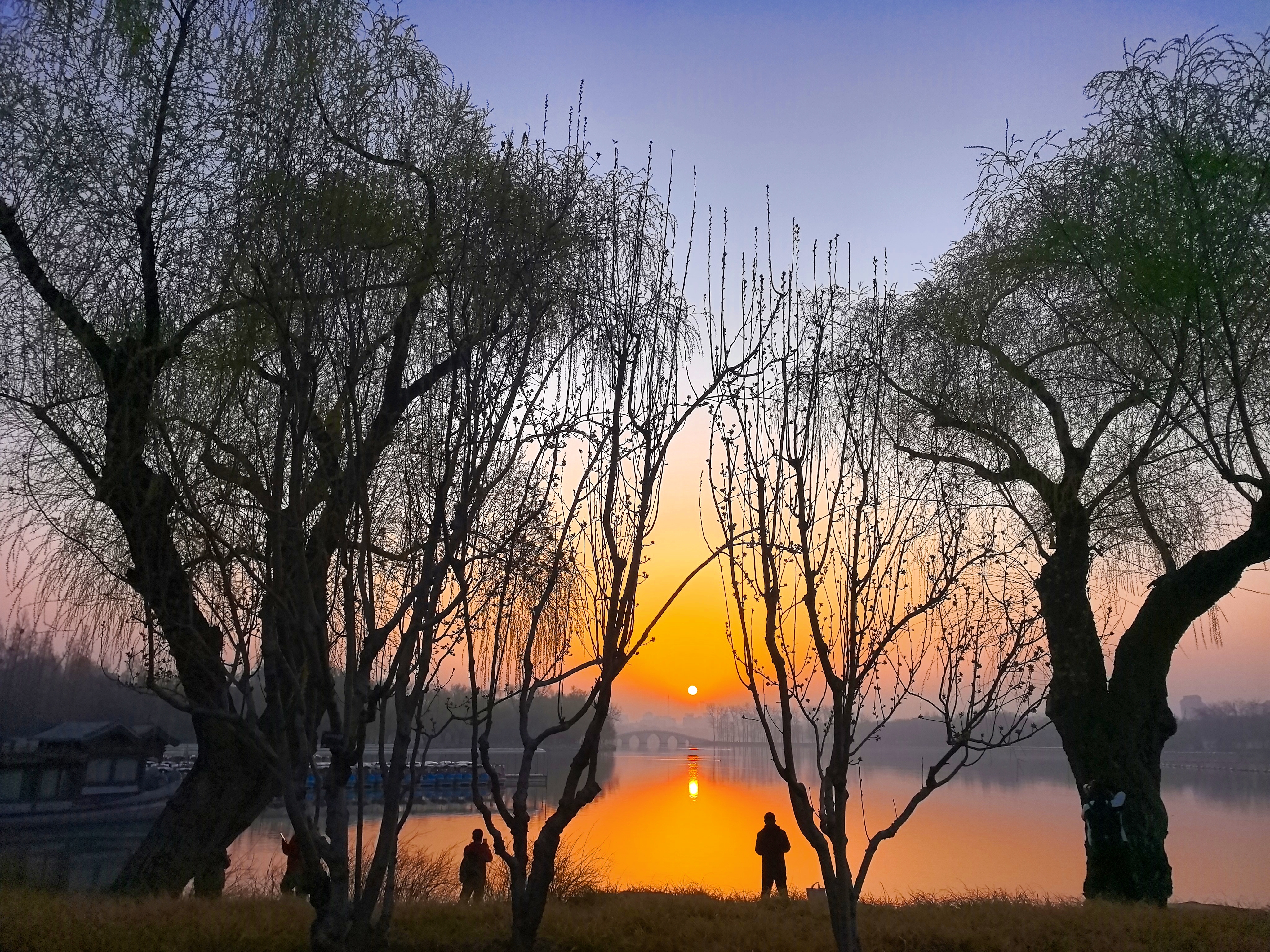 今天清晨北京玉渊潭公园内观赏旭日东升美丽如画。姚猛摄