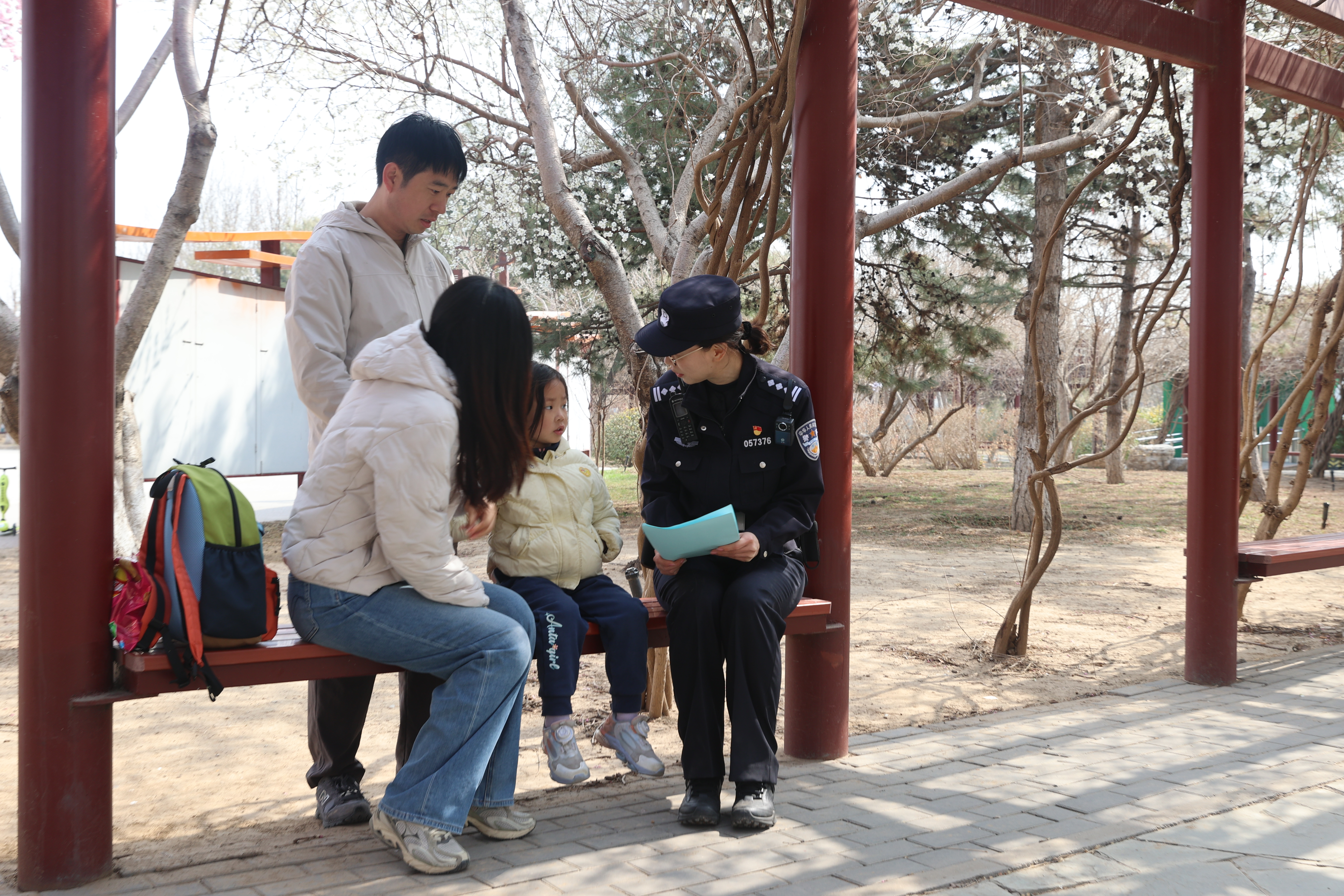 “公园散步,反诈同步,请您牢记:未知链接不点击,陌生来电不轻信,个人信息不透露,转账汇款多核实。”“凡是陌生电话自称‘公检法’还跟您要钱的,都是骗子,不能信!”巡逻途中,民警不时化身安全讲解员,通过发放手册、面对面提醒等方式,将反诈知识送到游客身边。春日暖阳下的“安全课堂”,随着民警的脚步融入游览线路。