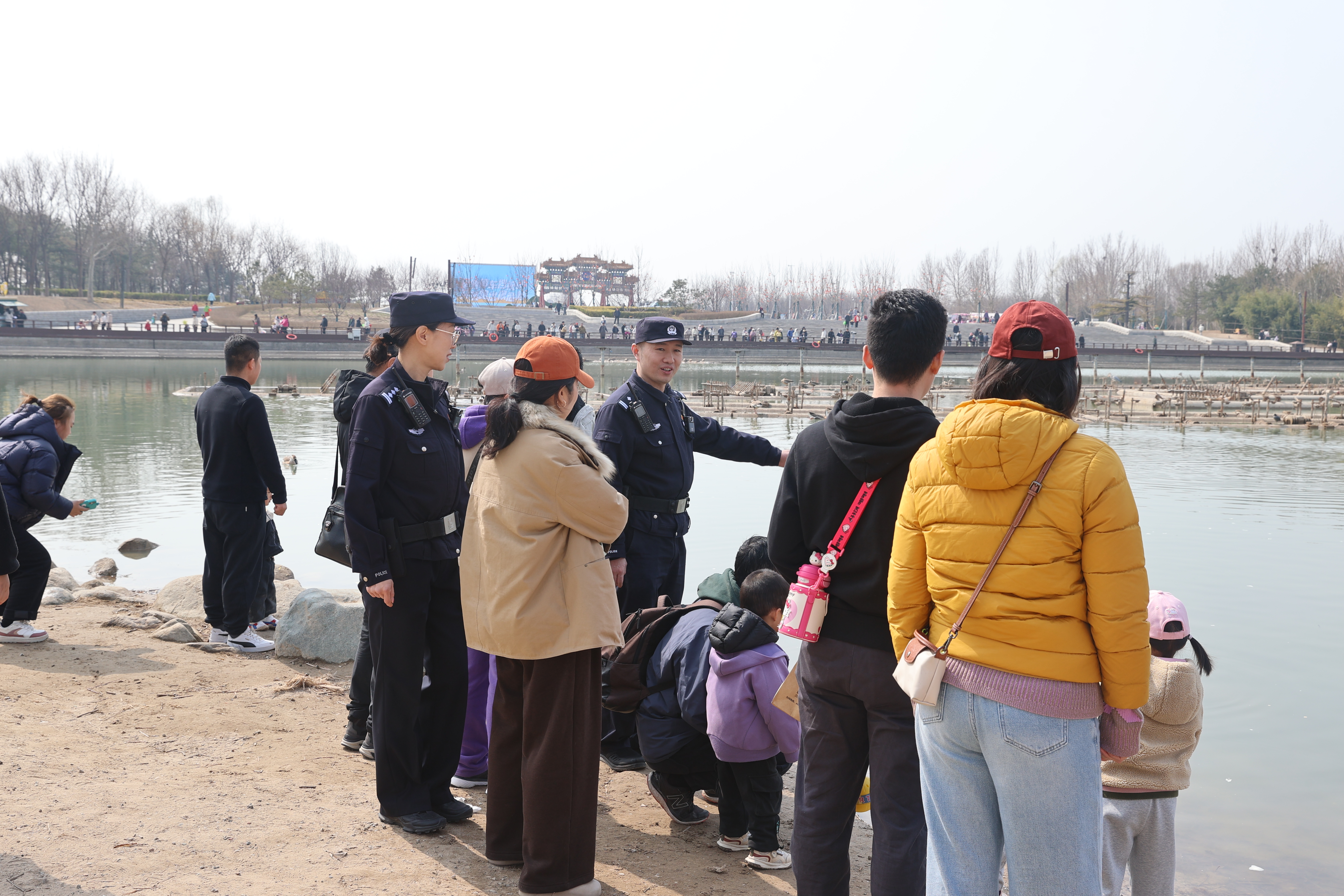 公园内水域广阔、景观亲水,随着气温回升、候鸟归来,湖边常聚集摄影爱好者与休闲游客。民警将巡逻守护重点向涉水区域、桥面、码头等部位倾斜,及时劝阻涉水拍照、随意投喂等行为,消除安全隐患,防止落水险情发生。属地派出所还协同园方完善安全警示标识,通过预防性举措,让水岸周边的“安全”成为常态。