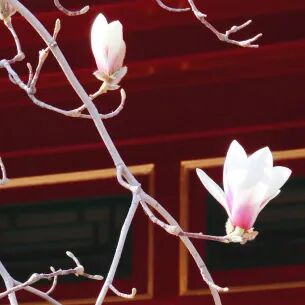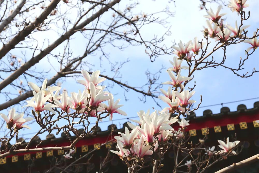 古建筑的沉静与玉兰的清雅