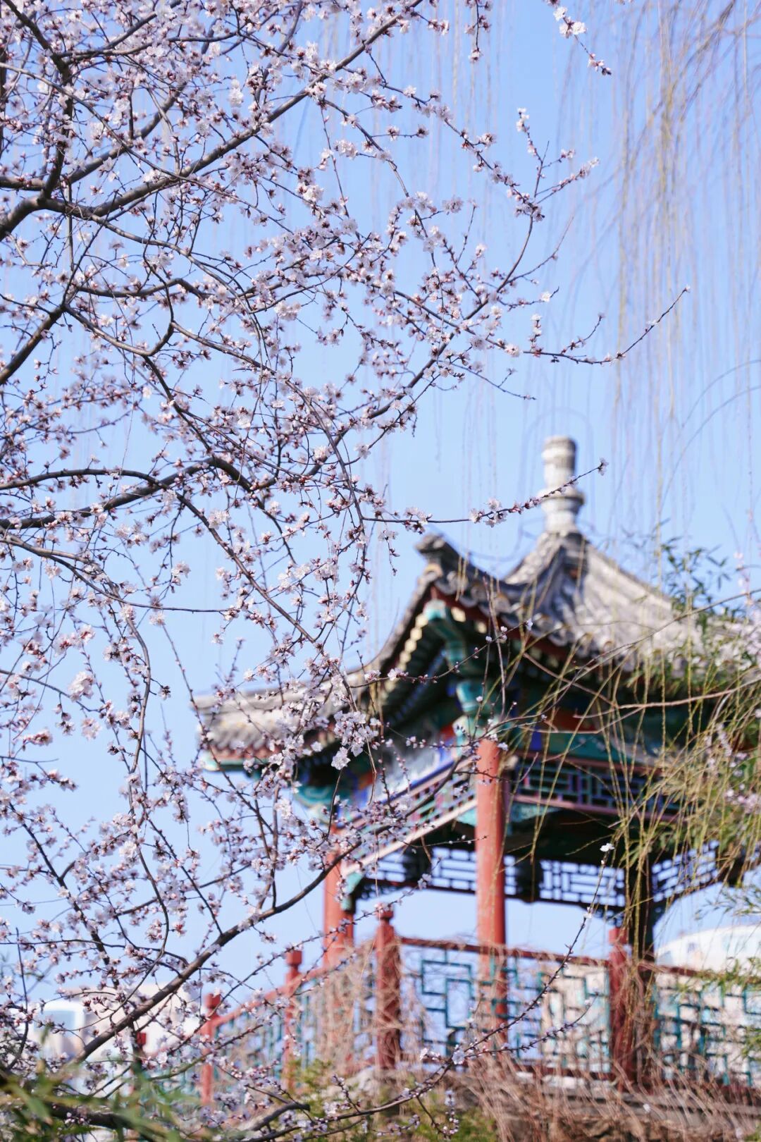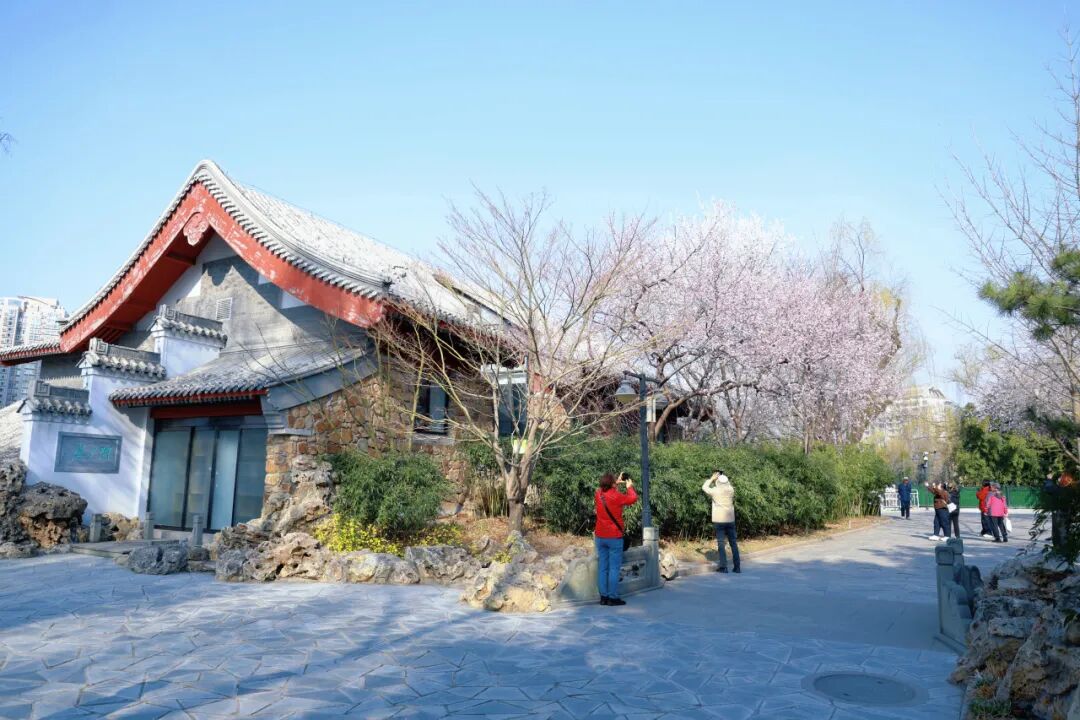 公园里的迎春、山桃也开得正盛