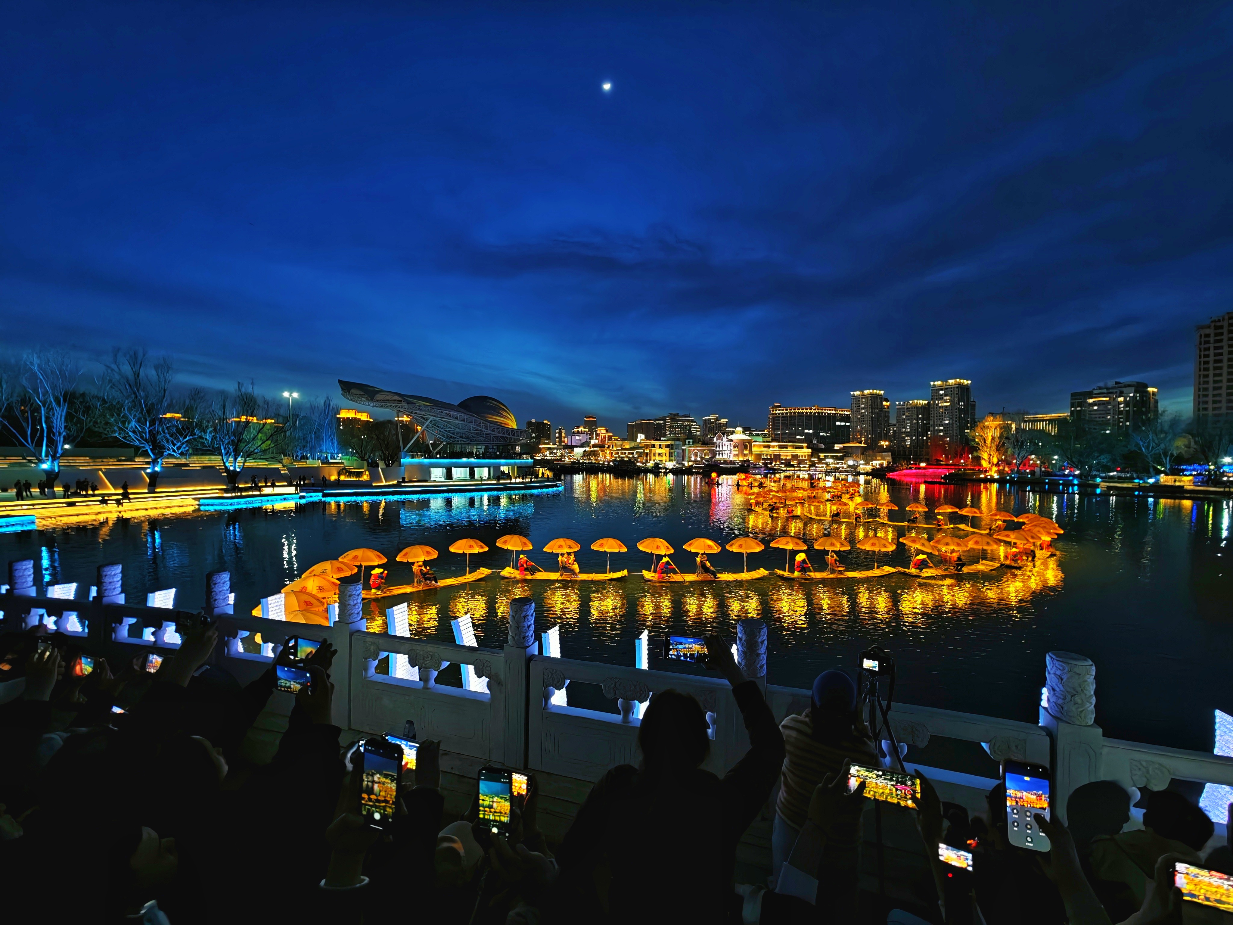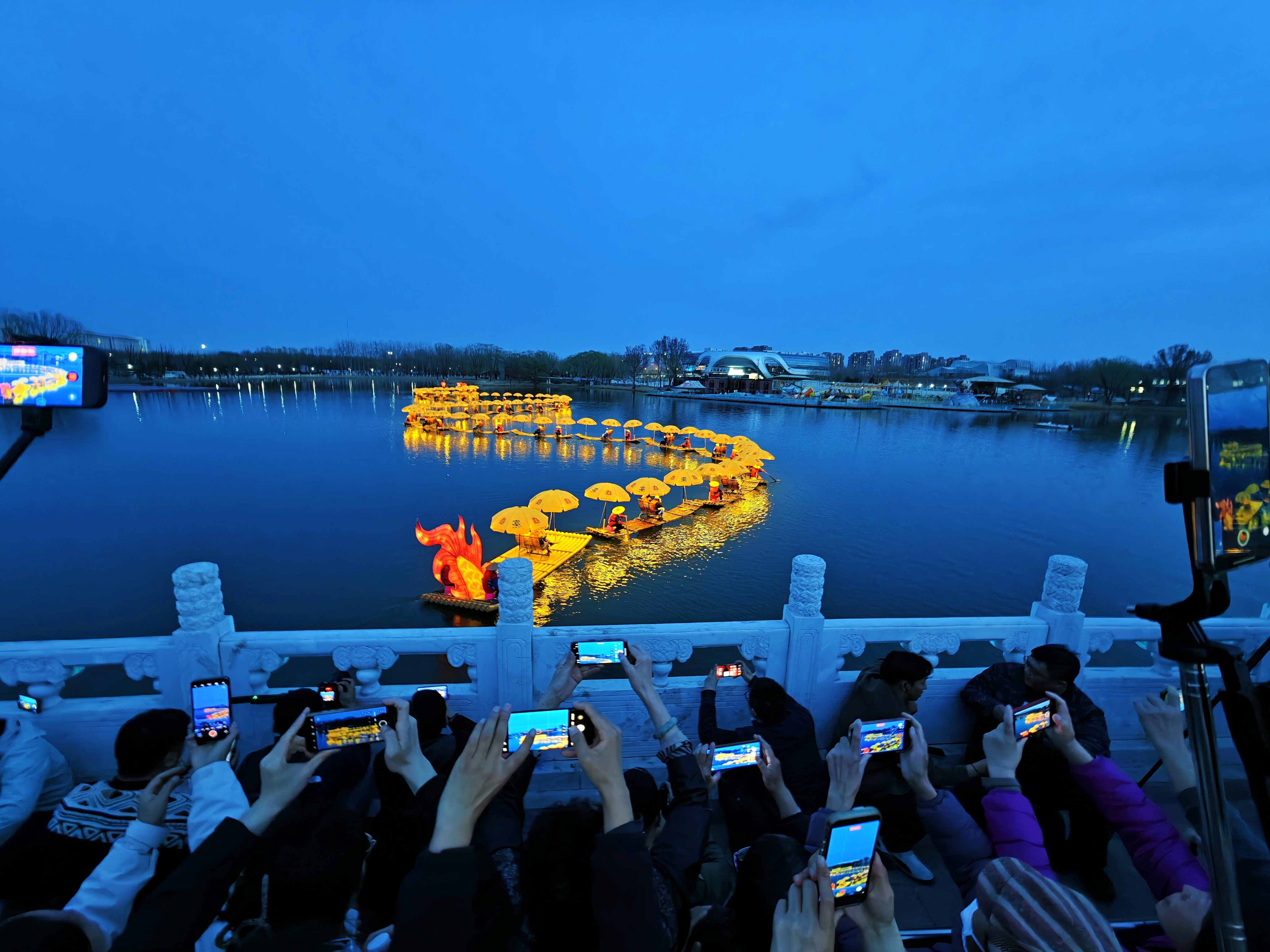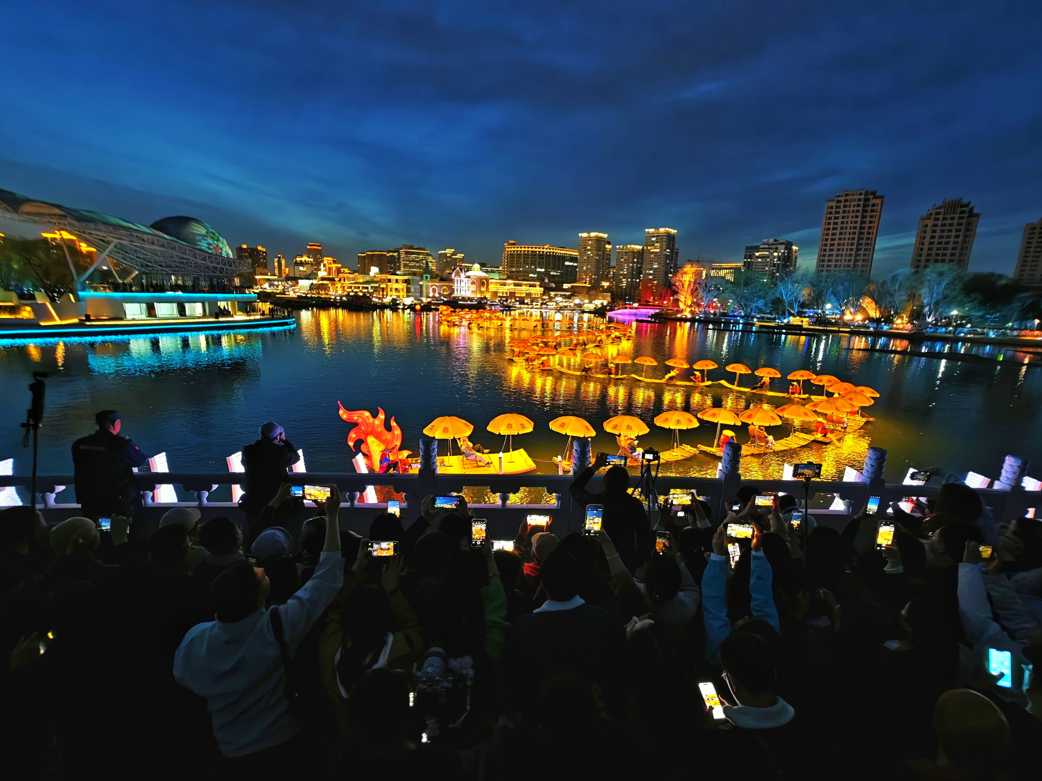 真的是太好看啦!广西阳朔非遗金龙巡游亮相北京亮马河。夜色中,竹筏串联的金龙流光溢彩,蜿蜒水上,伴着悠扬的刘三姐山歌,游人们驻足围观,沉浸式感受桂风壮韵与京城夜色交融的独特魅力,心情愉悦,直呼震撼!