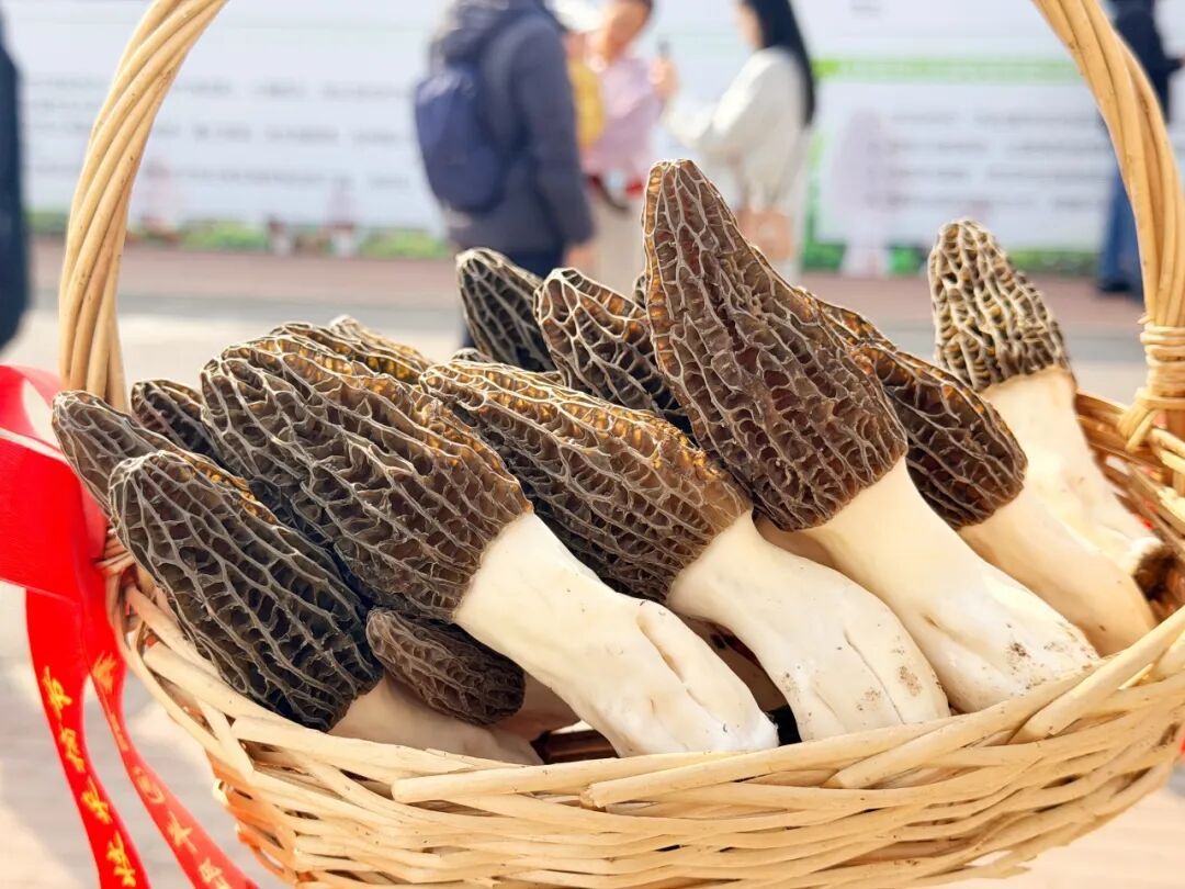 除了田间地头的采摘乐趣,活动现场还精心设置了羊肚菌展示区和美食品尝区。展示区陈列着新鲜羊肚菌及深加工的干羊肚菌和羊肚菌酱。工作人员耐心讲解品种特点、生长周期及品质辨别方法。