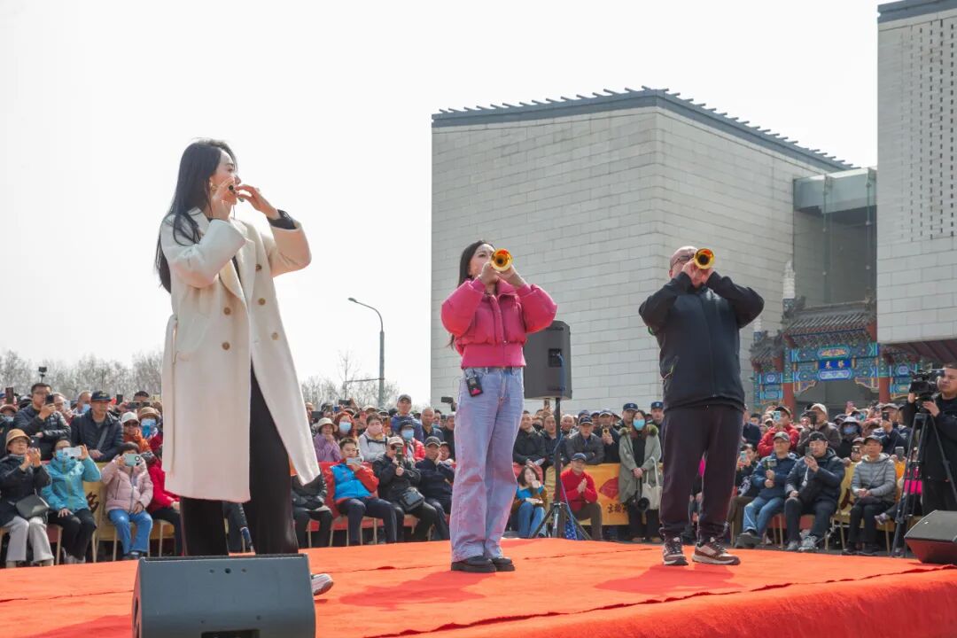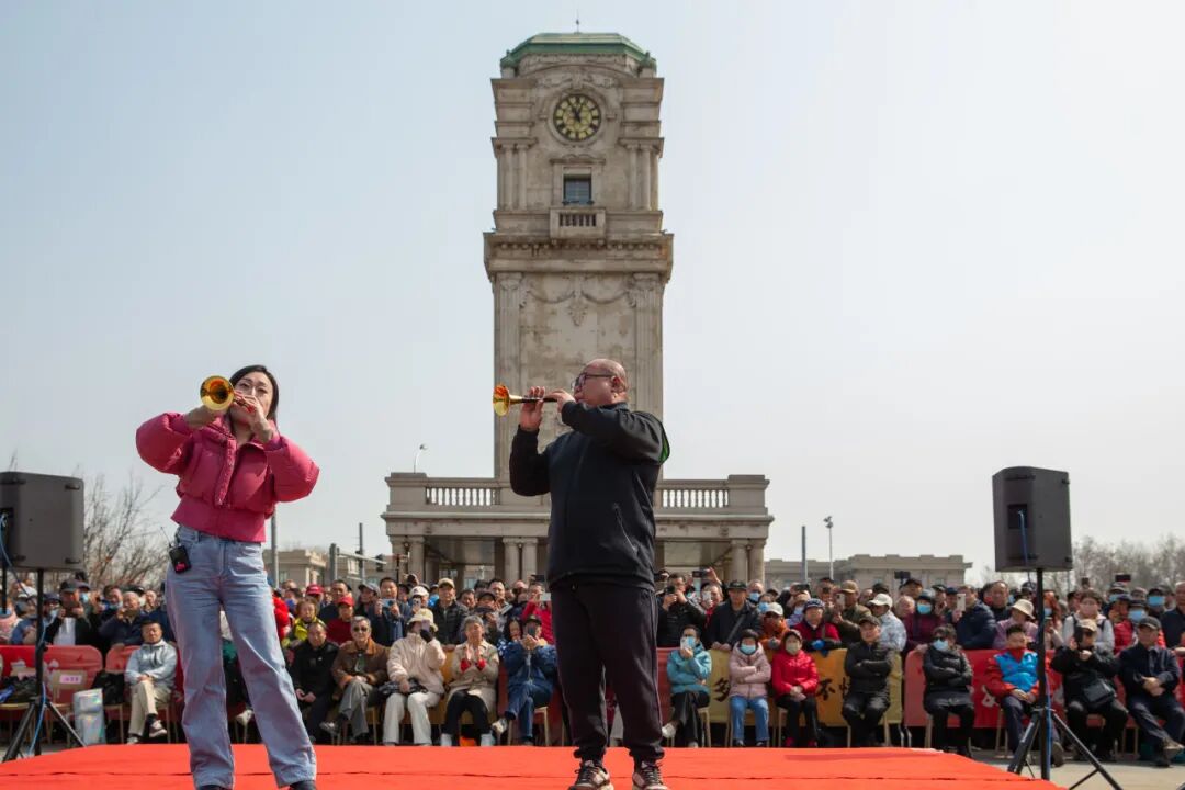 现场观众的热情与秩序,也成为演出成功的注脚。孙楚泊感叹:“今天观众特别多,氛围好,秩序有序,大家对视听感受有全新体验。”这种互动不仅限于欣赏,更延伸至参与——当《山丹丹开花红艳艳》的旋律响起,观众自发合唱,艺术与生活在此刻浑然一体。青年唢呐演奏家刘西站多次参与此类演出,他观察到:“我们的队伍越来越大,亮相的民族乐器越来越多,每样乐器表现手法不同,希望通过这种方式让大家了解并爱上民乐。”北京民族乐团唢呐演奏员张钦静首次参加天桥惠民演出,她与孙楚泊、刘西站合奏了《百鸟朝凤》等。演出后,她动情地说:“看到叔叔阿姨脸上洋溢的幸福笑容,我非常欣慰。艺术源于生活,年轻文艺工作者更该走进群众,为人民服务。”