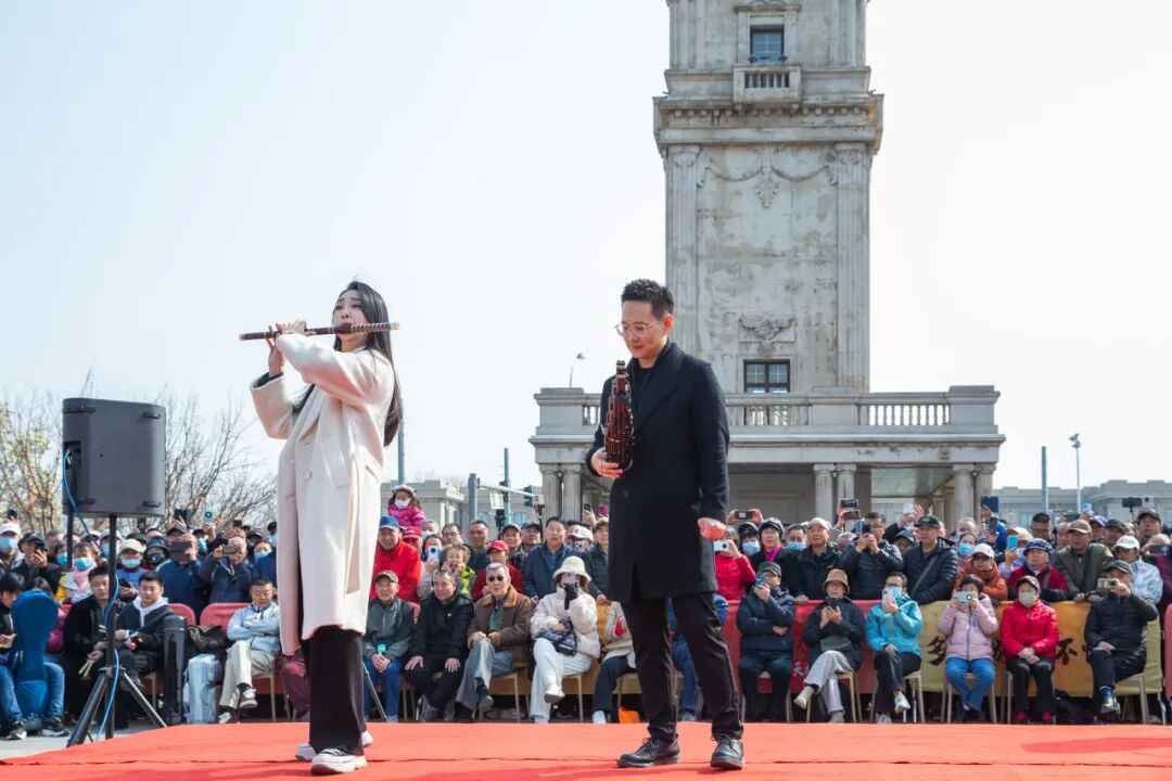 3月21日,西城区天桥市民文化广场上演了一场别开生面的文化盛宴。由西城区携手中央民族歌舞团、北京民族乐团共同打造的“春韵悠扬 天桥乐响”露天文化惠民演出,以无门槛、零距离、全公益的开放形式,将殿堂级民乐带入了市民中间。青年竹笛演奏家孙楚泊与十余位艺术家共同奏响国风清音,让艺术初心温暖了每一位听众,奏响了文化惠民的动人旋律。