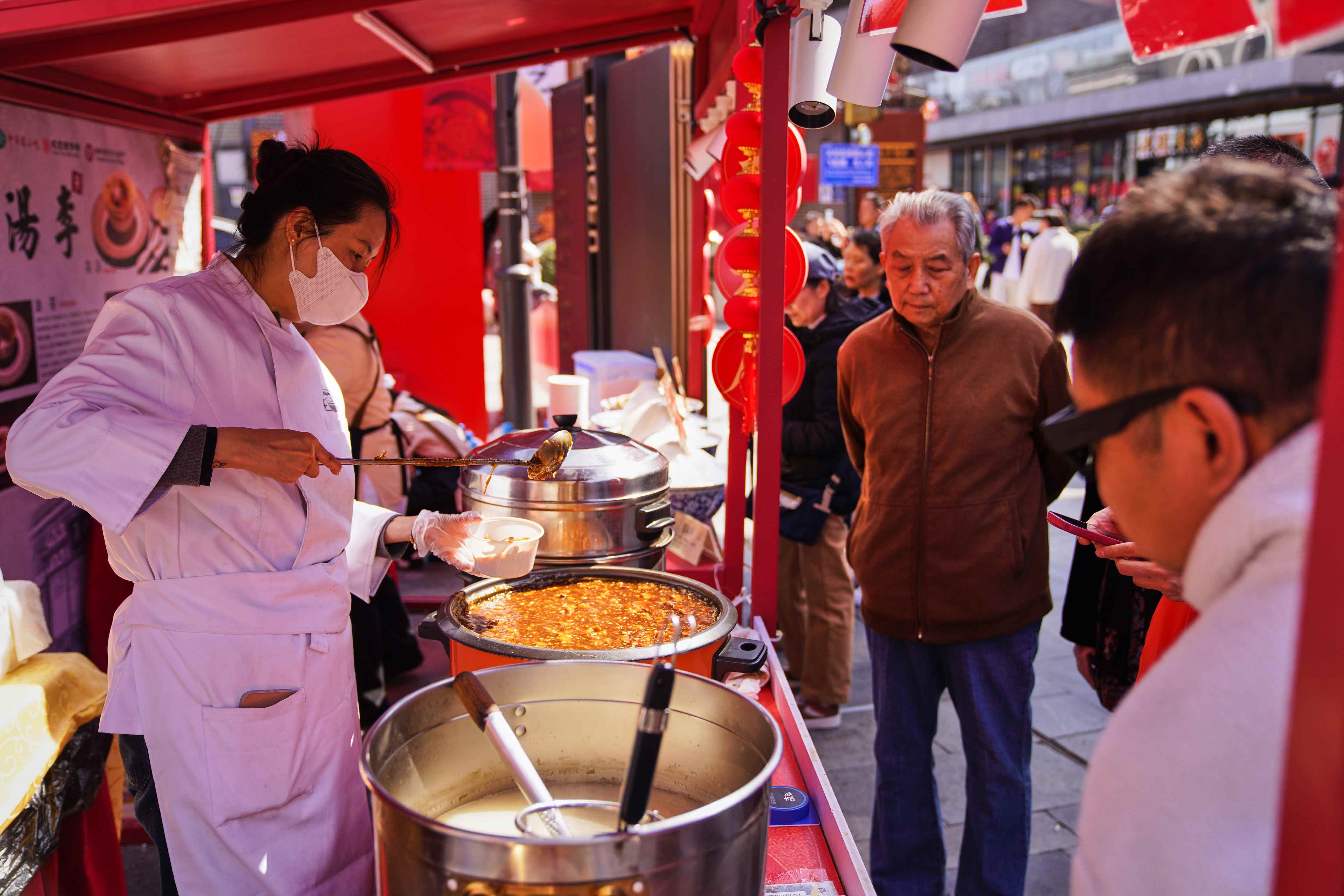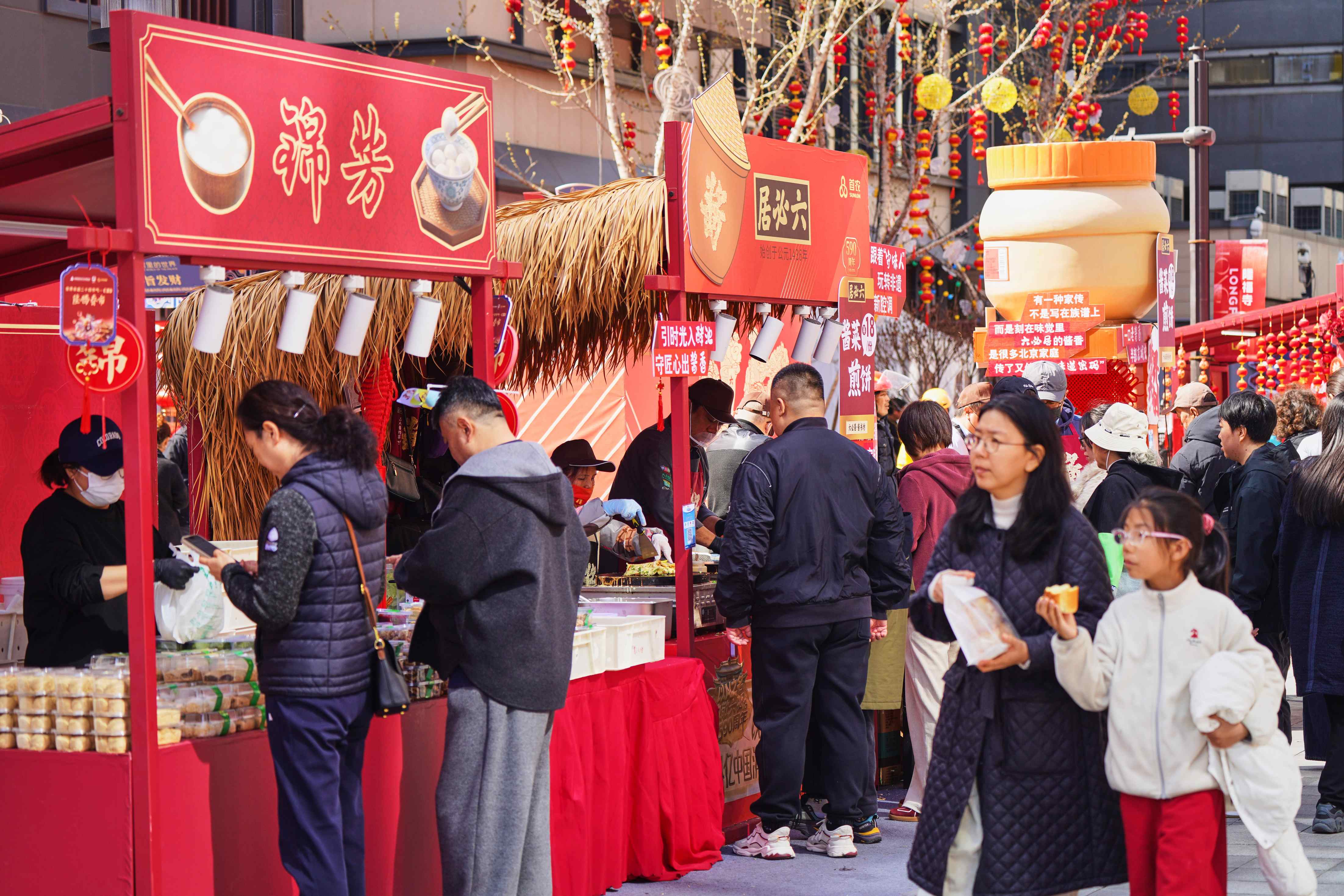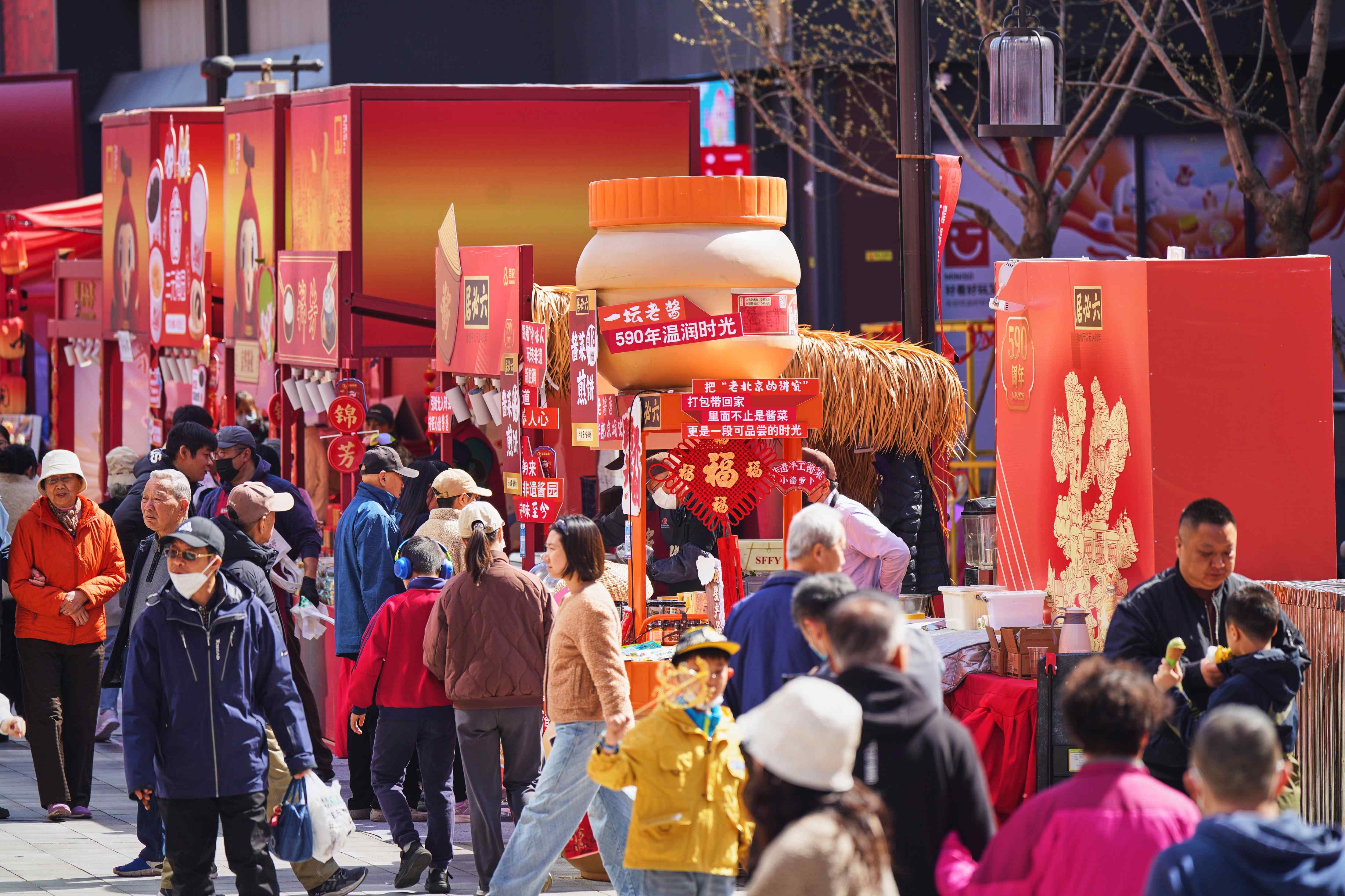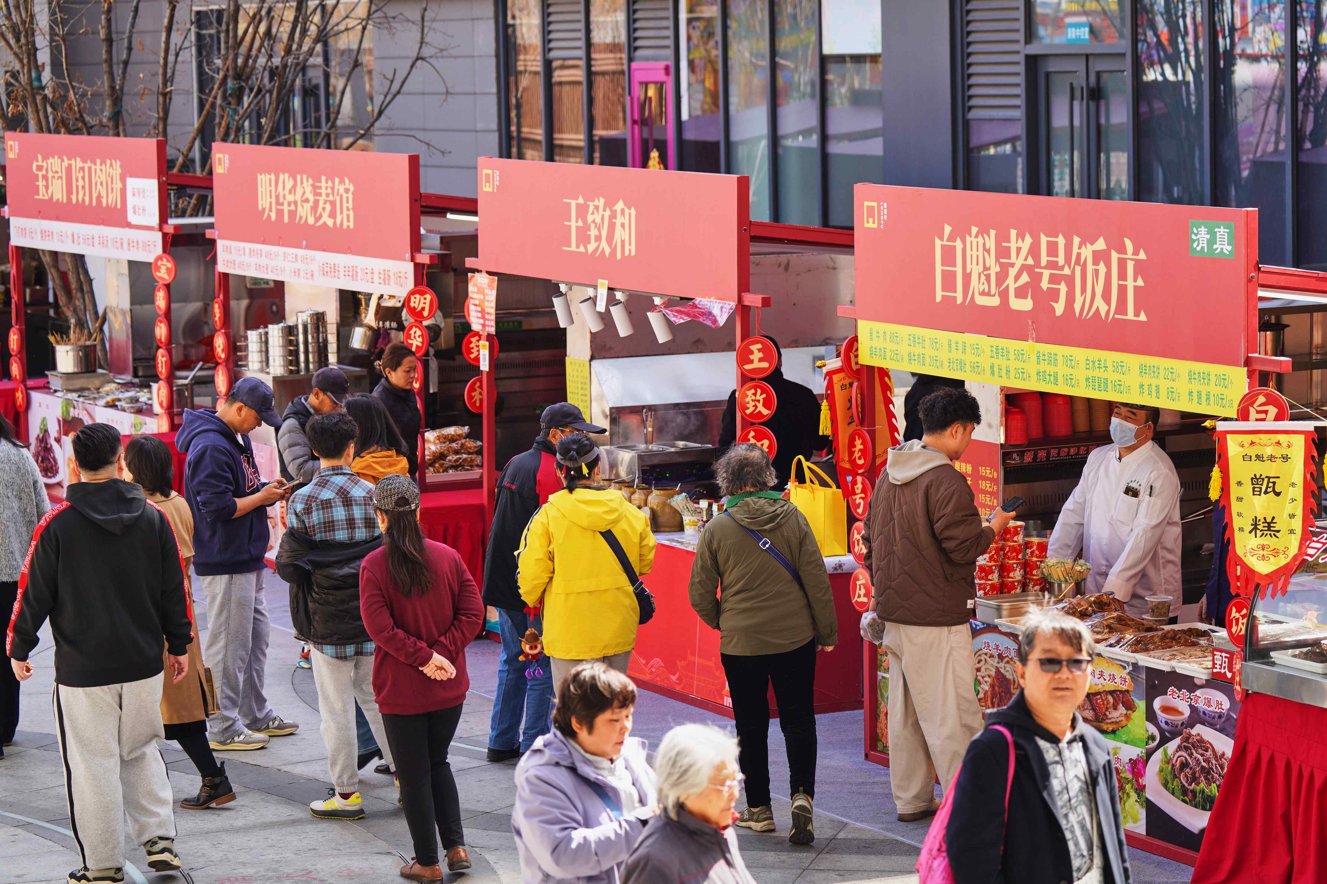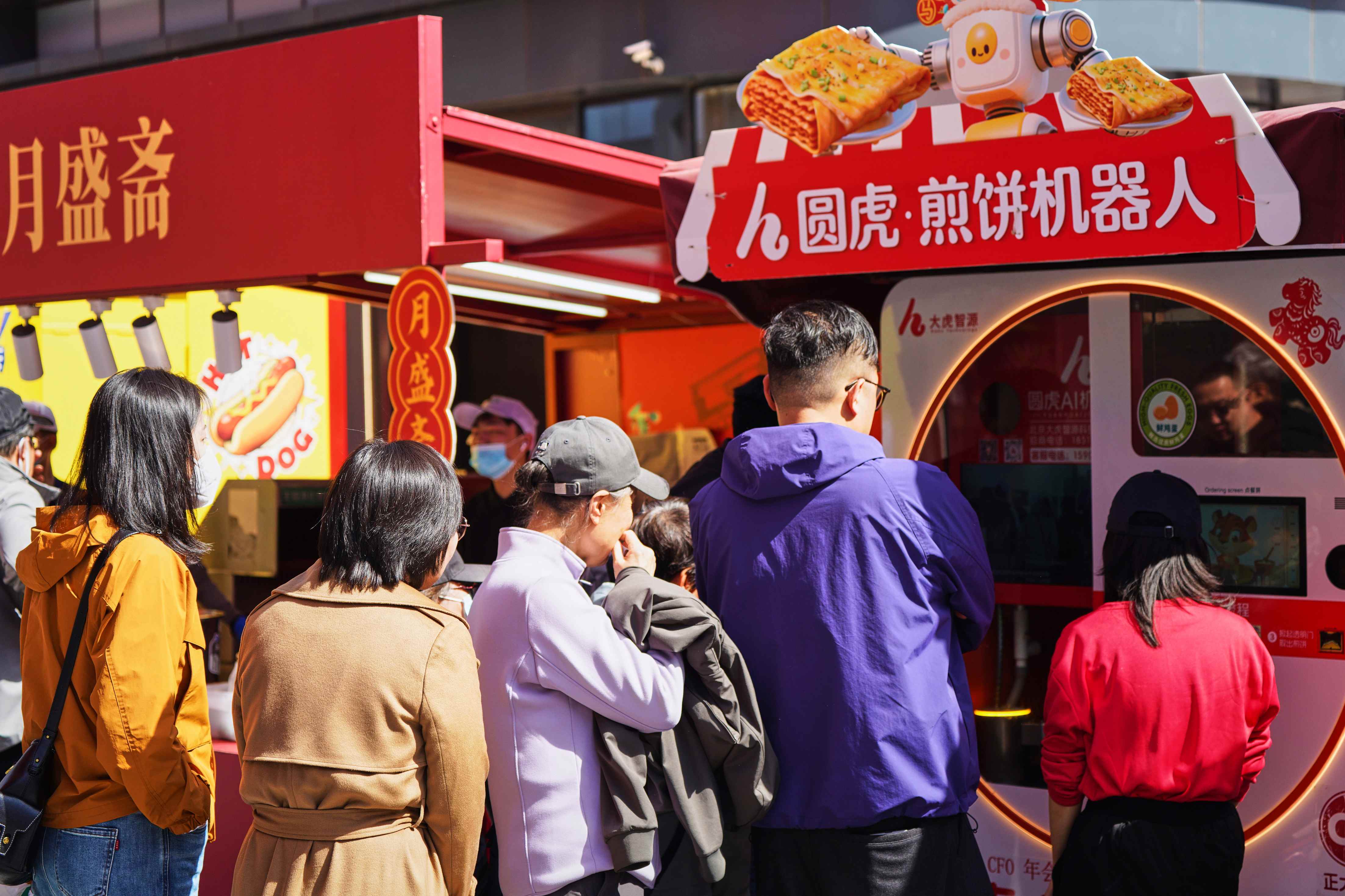 老味道焕新归来,新潮品牌也接踵而至。中国黄金、龙顺成等相继入驻,煎饼机器人高效运转,潮流文创摊位前人气高涨……传统与新潮在此交融共生,老字号留住市井烟火,新品牌注入年轻活力。