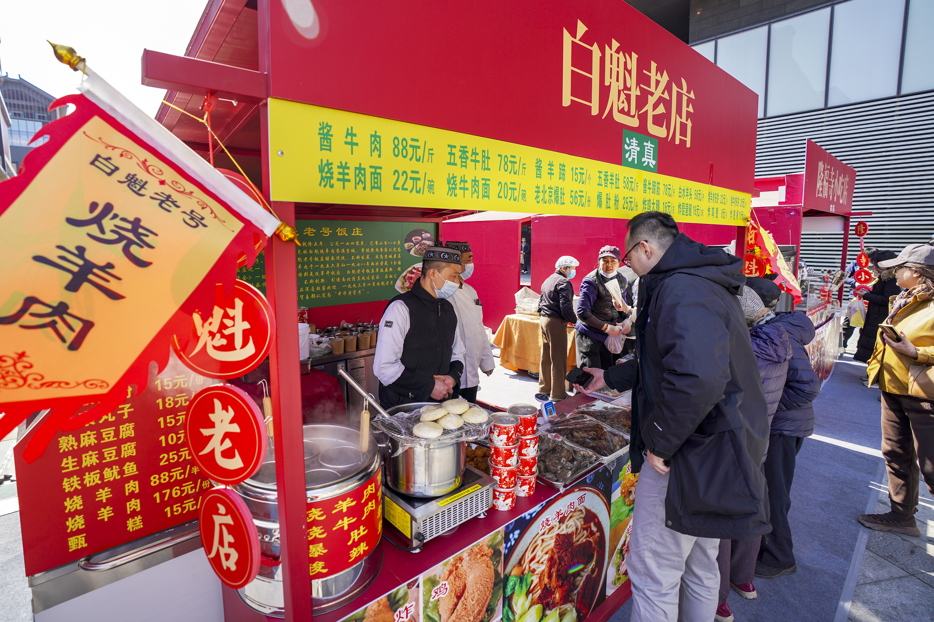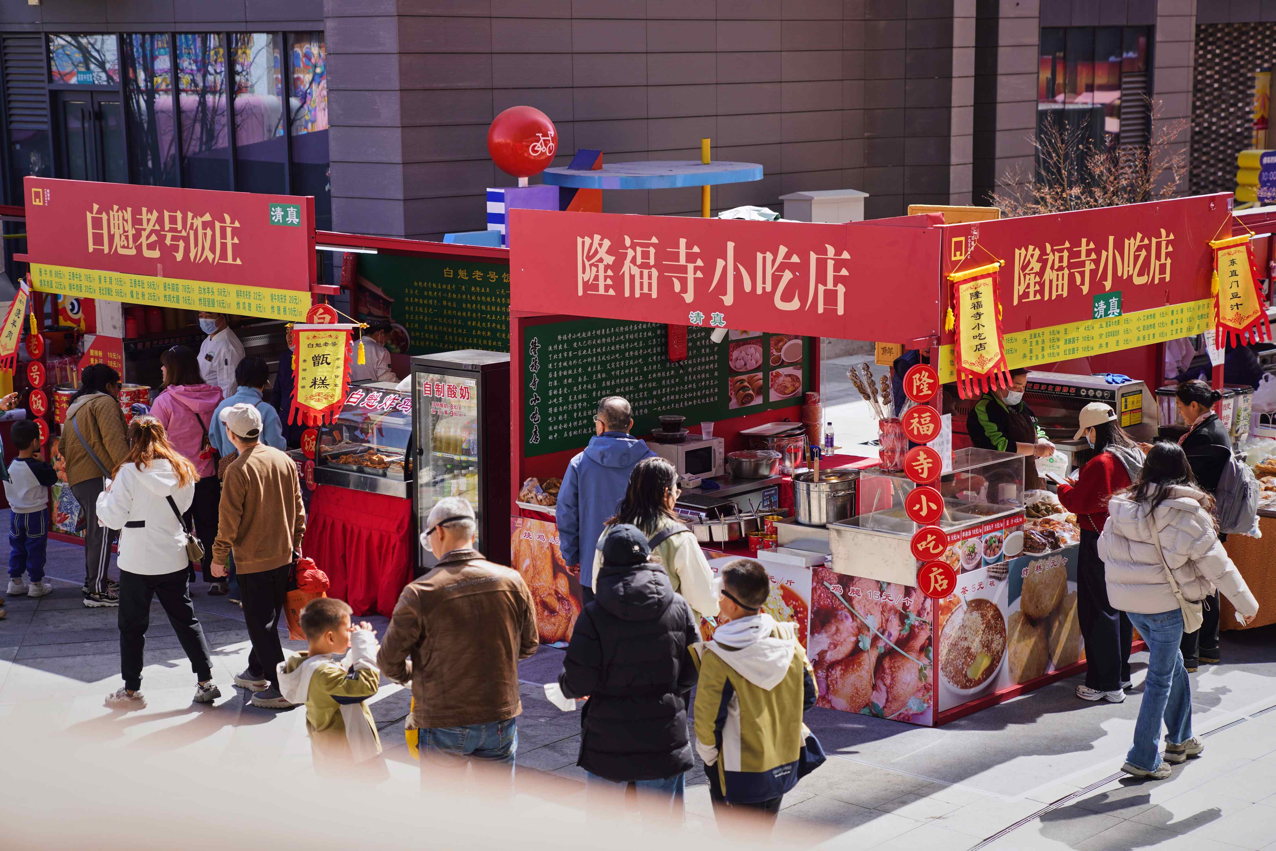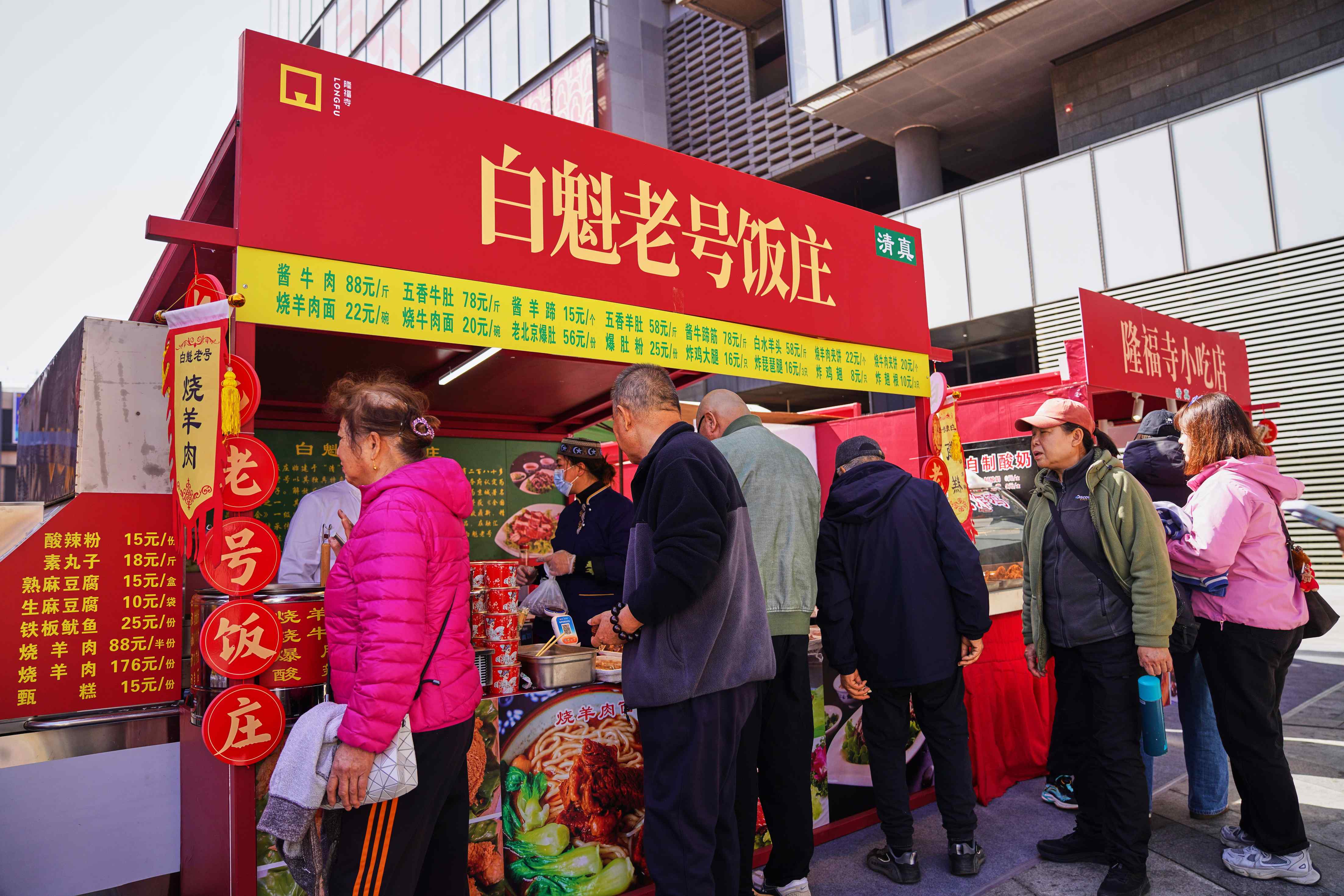 已正式转为常态化运营的“隆福潮集”在隆福大厦东侧开辟了新的市集区域,白魁老号、隆福寺小吃、明华烧麦、王致和、宝瑞门钉肉饼……一众承载着几代北京人记忆的“老街坊”纷纷回归,在市集上成了“新邻居”。
