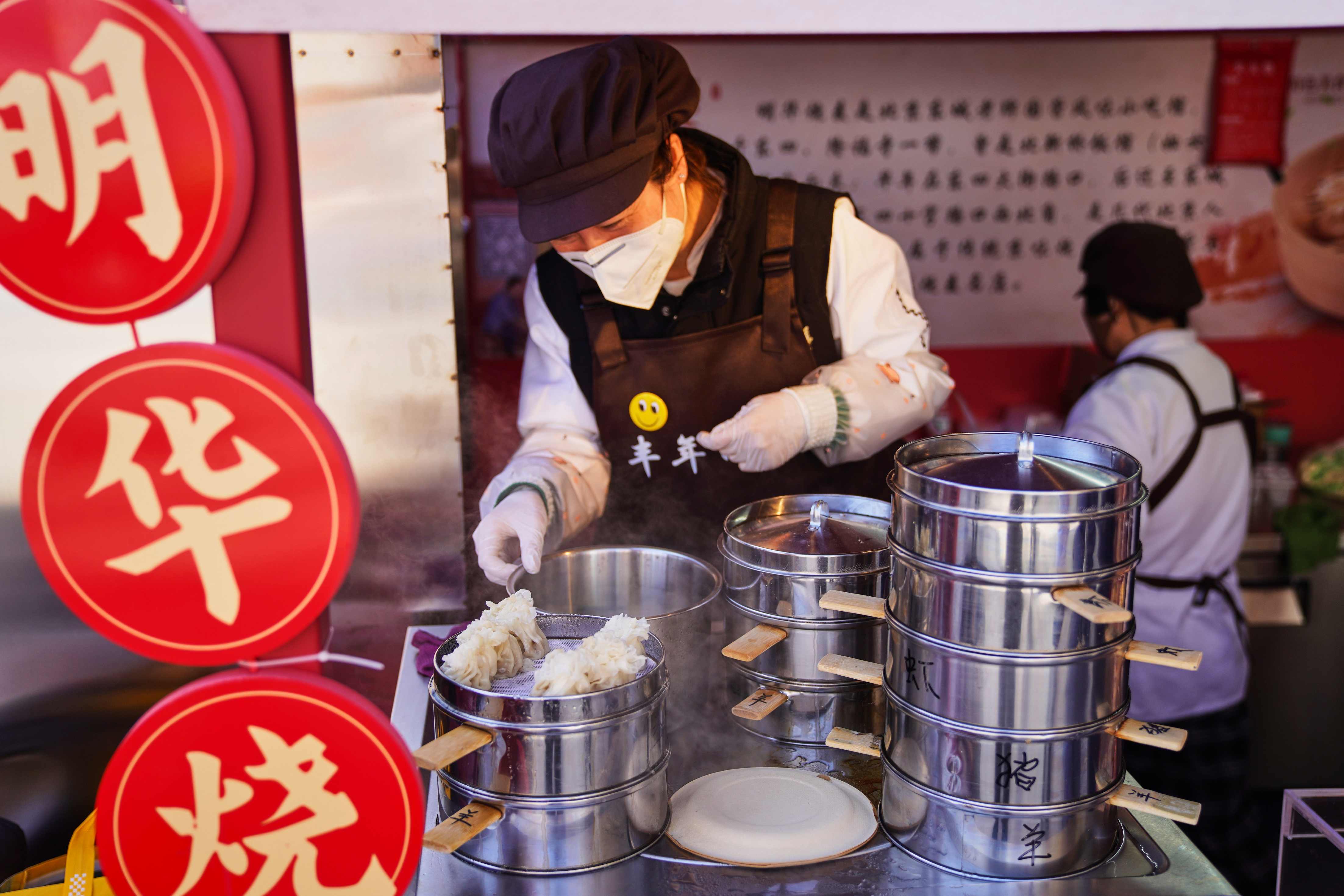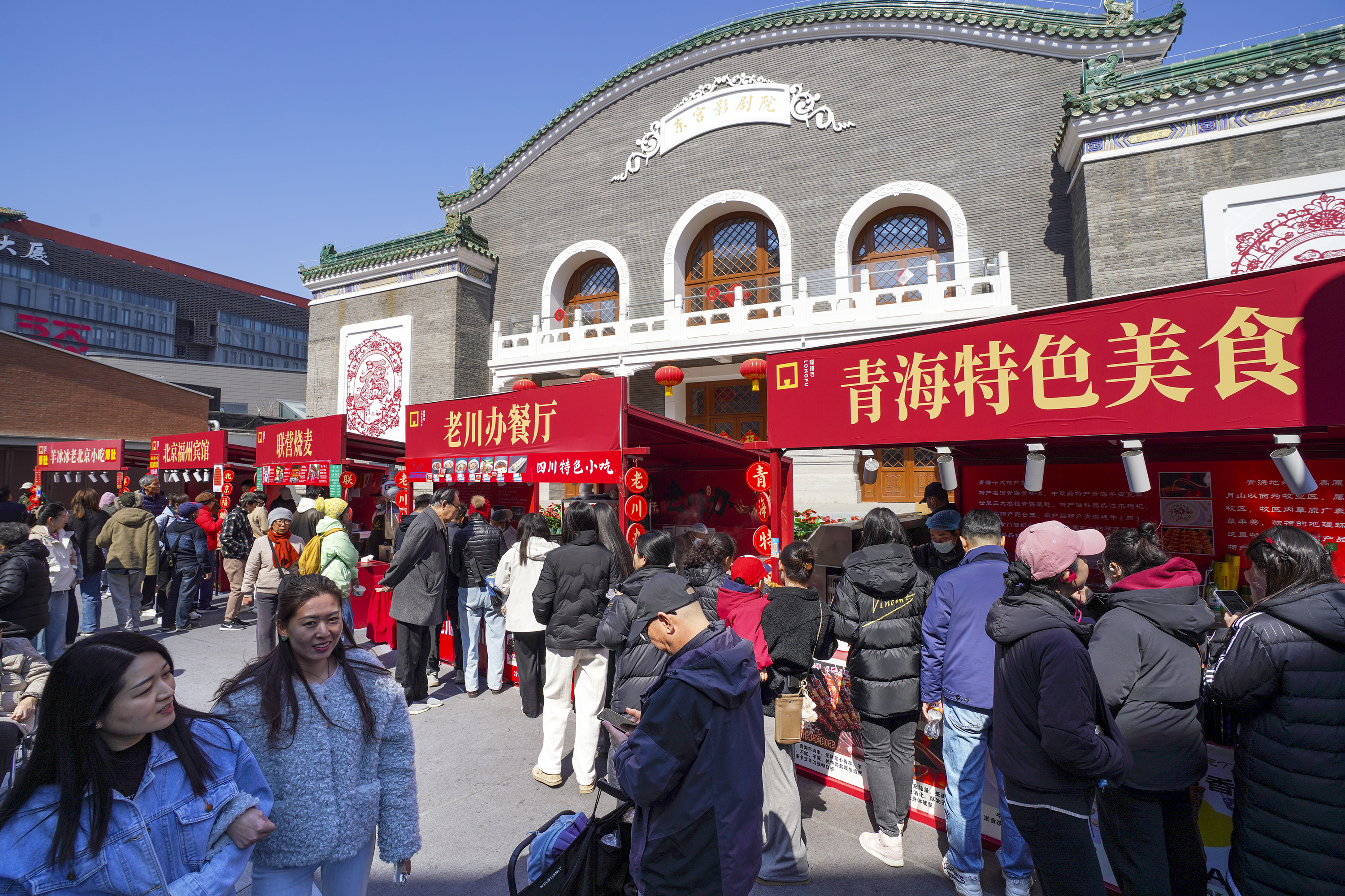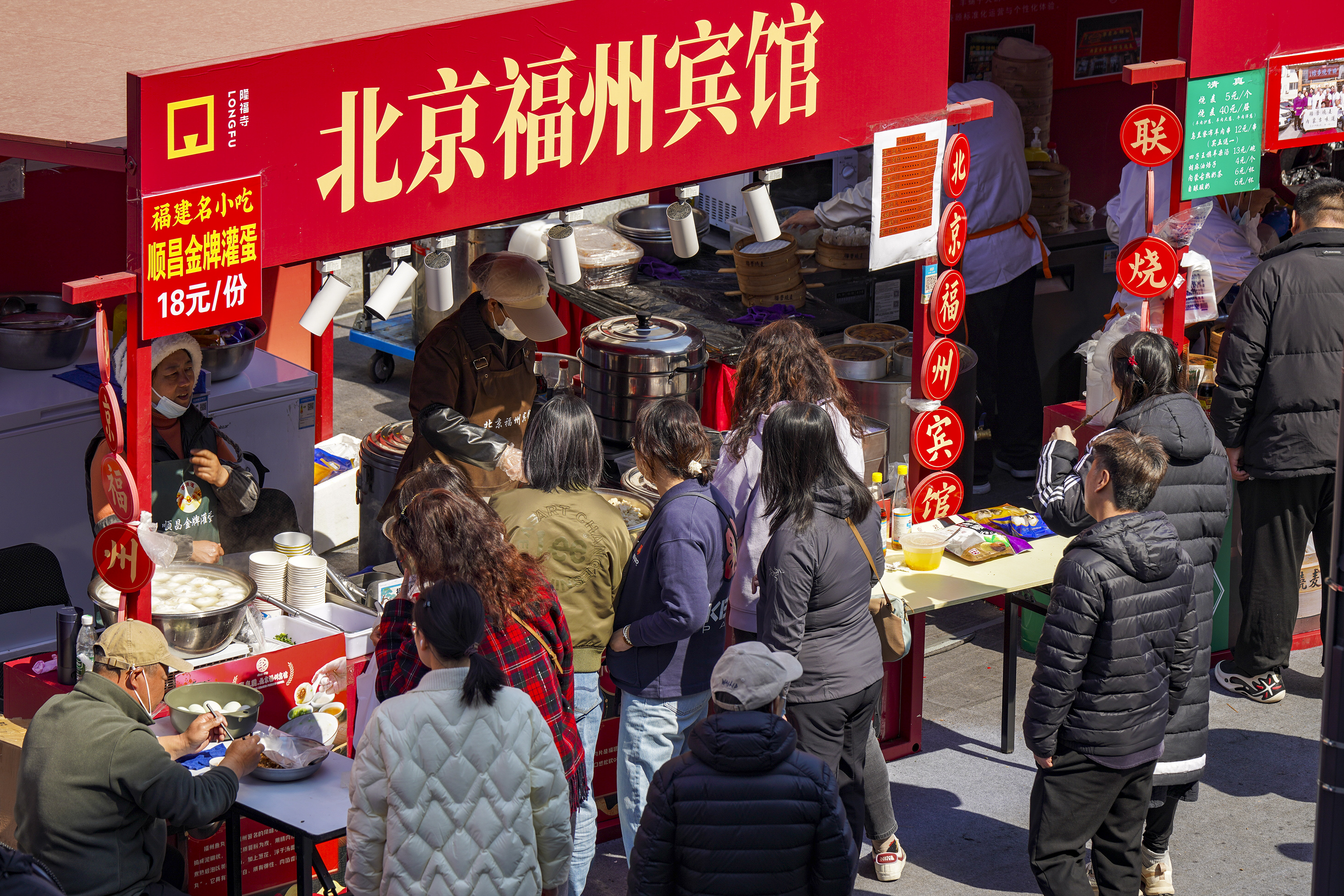 已正式转为常态化运营的“隆福潮集”在隆福大厦东侧开辟了新的市集区域,白魁老号、隆福寺小吃、明华烧麦、王致和、宝瑞门钉肉饼……一众承载着几代北京人记忆的“老街坊”纷纷回归,在市集上成了“新邻居”。