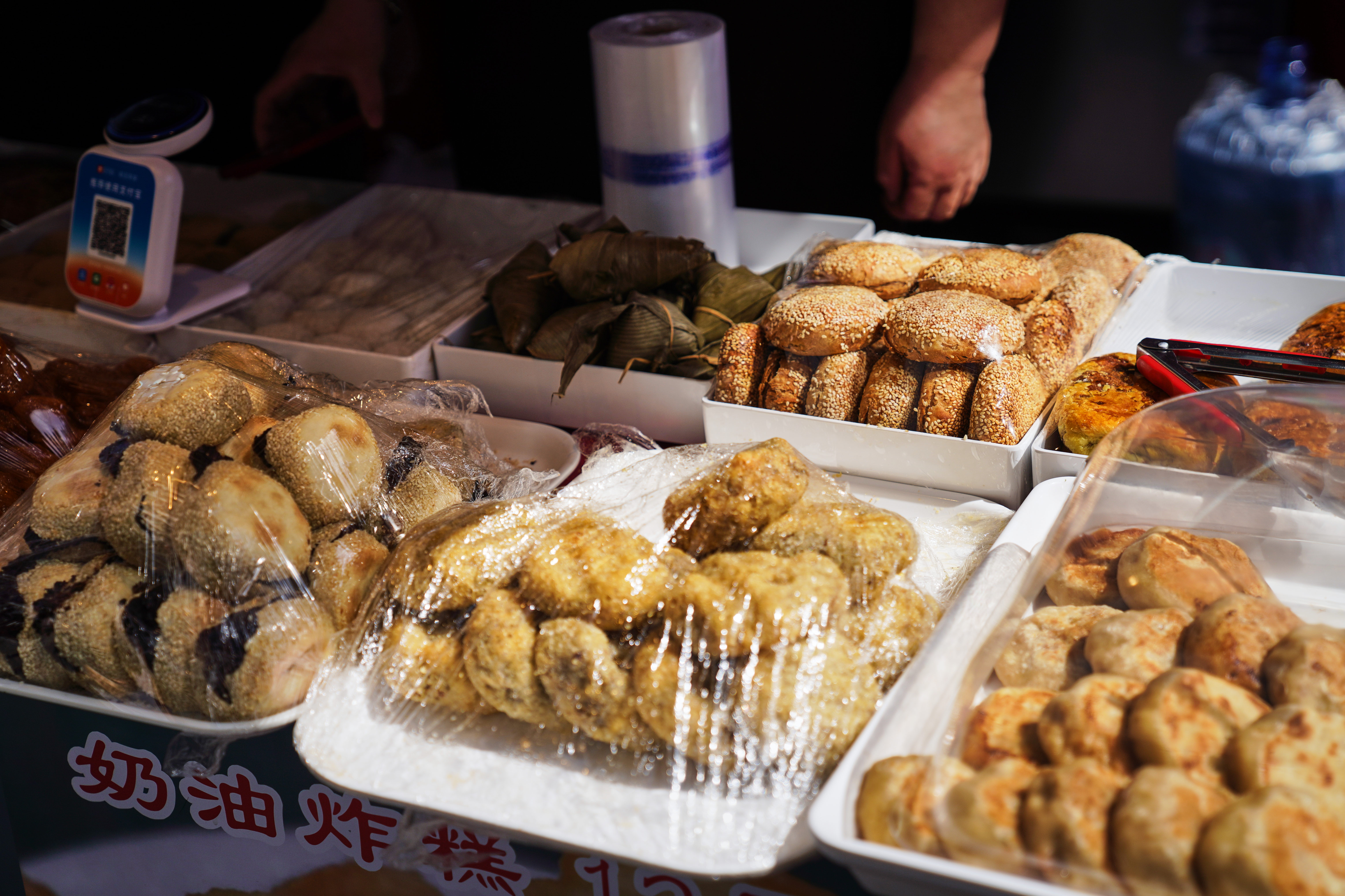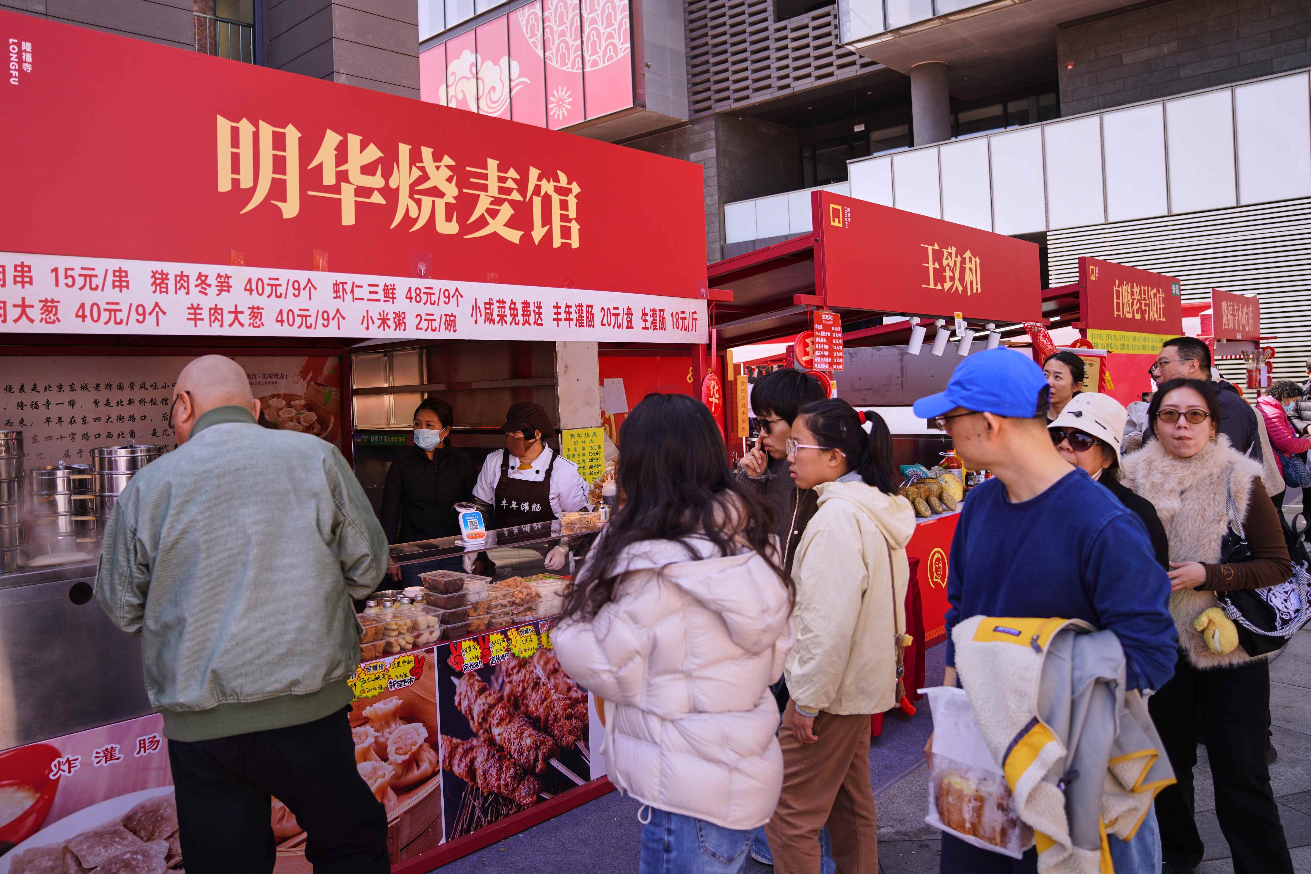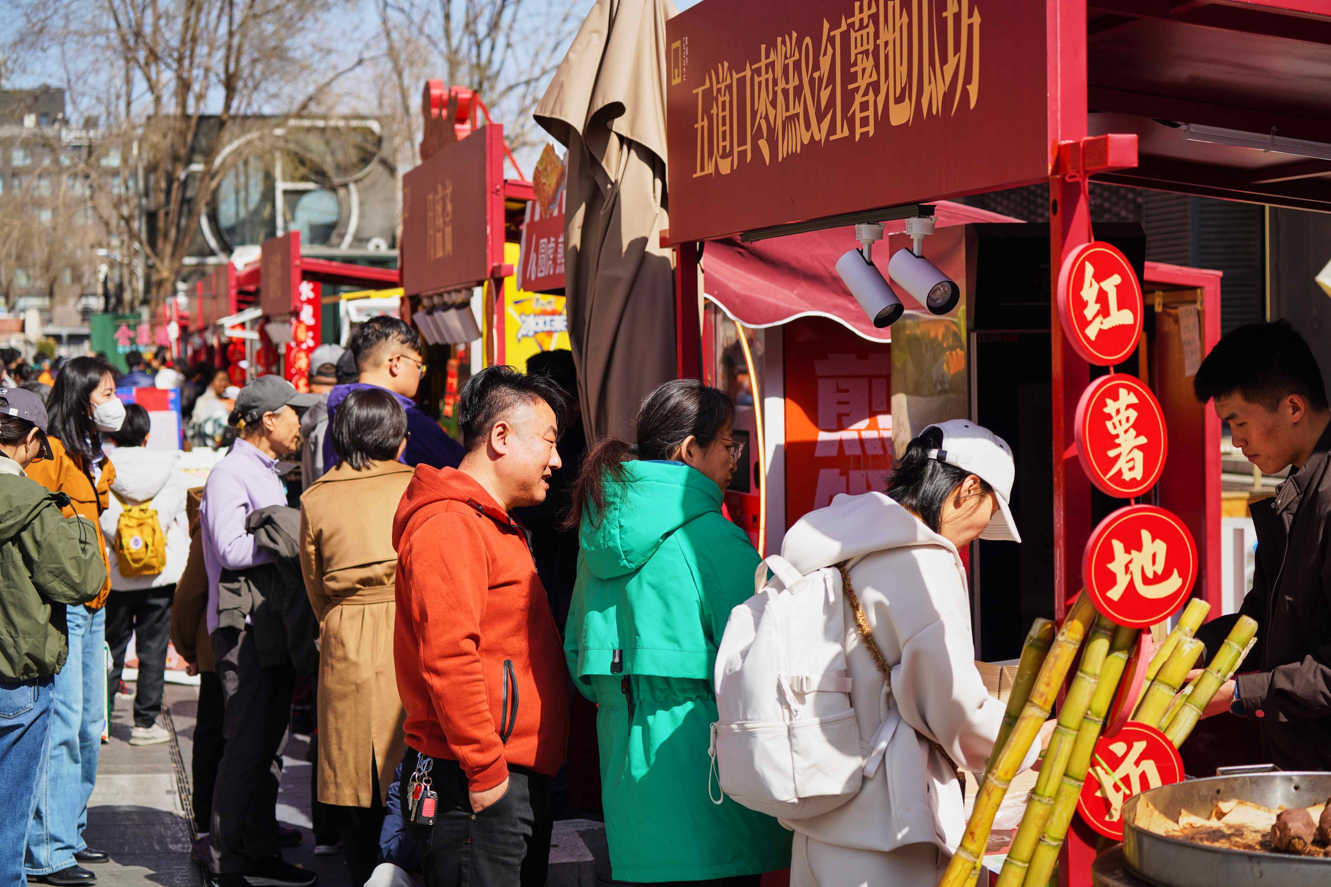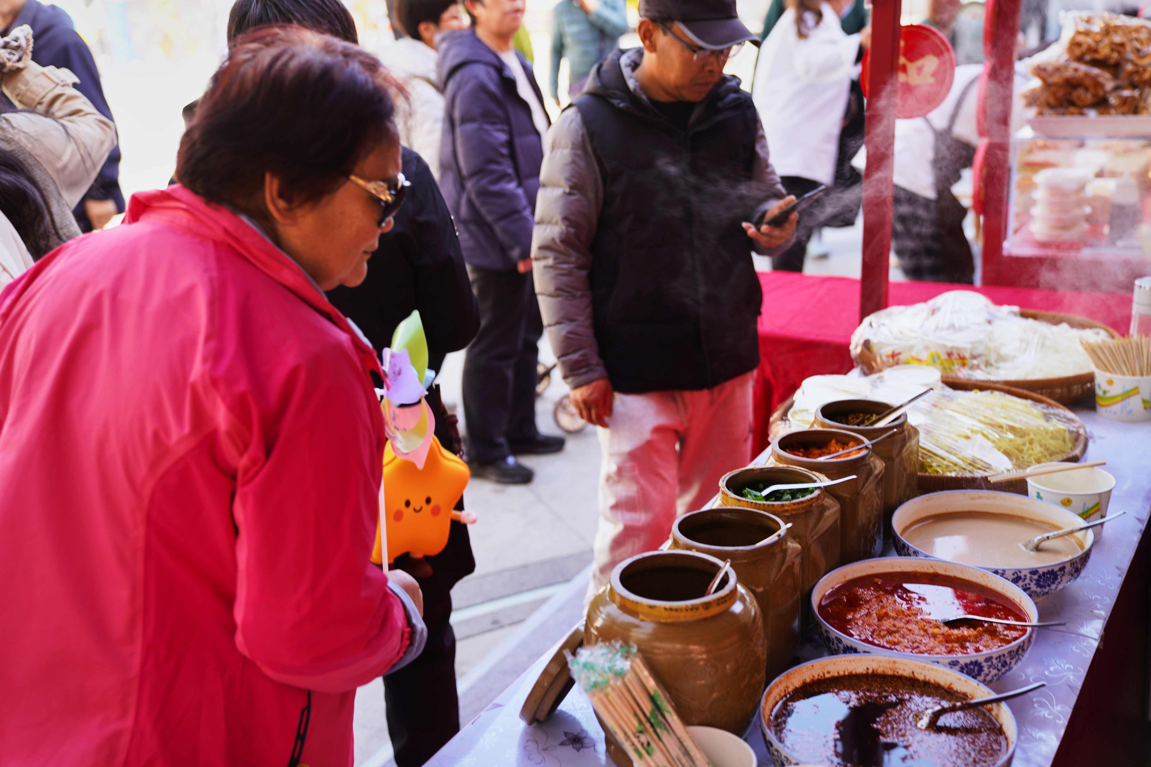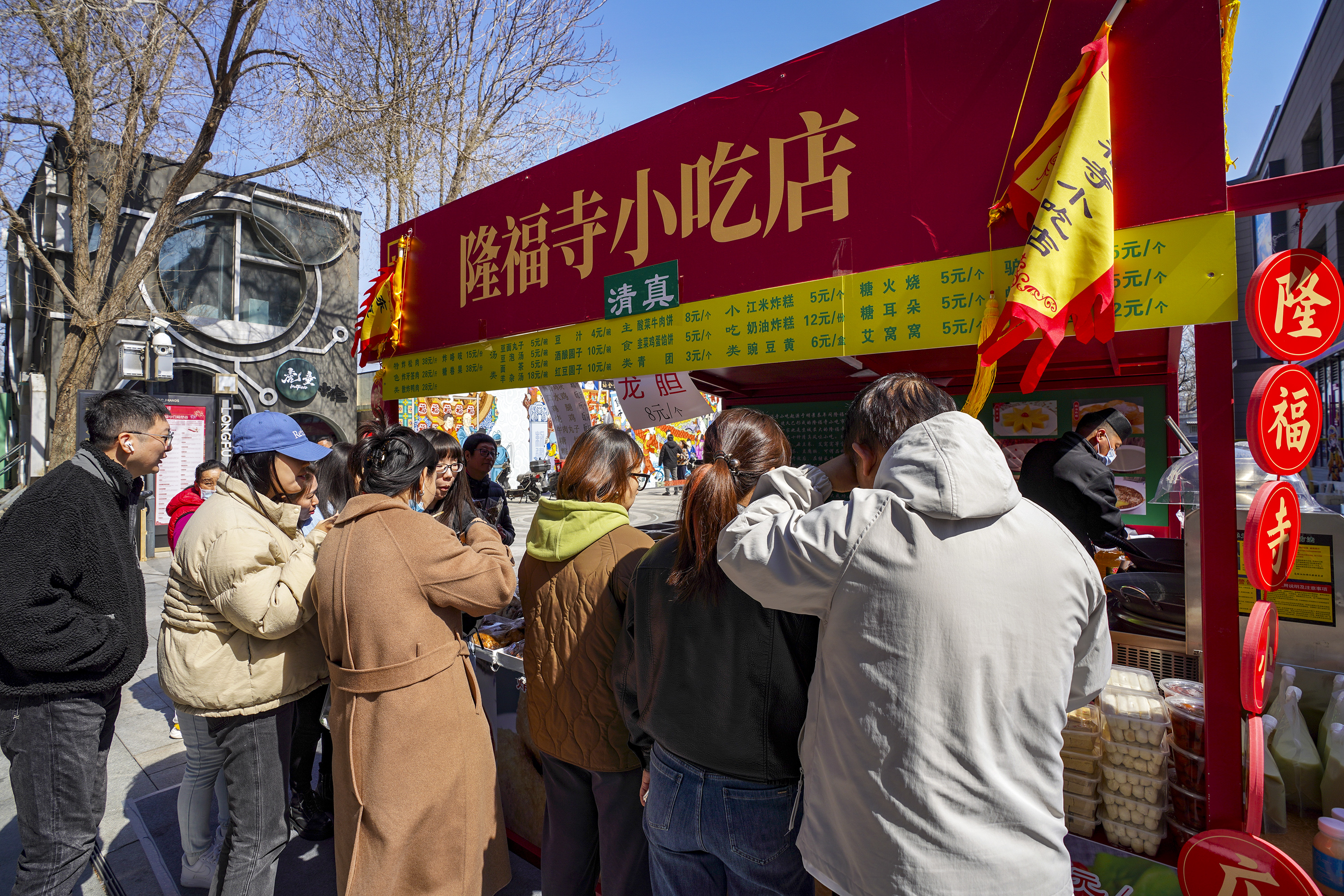 周末的隆福寺街区,游人如织,烟火升腾,空气中弥漫着现烤面包的麦香,交织着各式美食的诱人香气。
