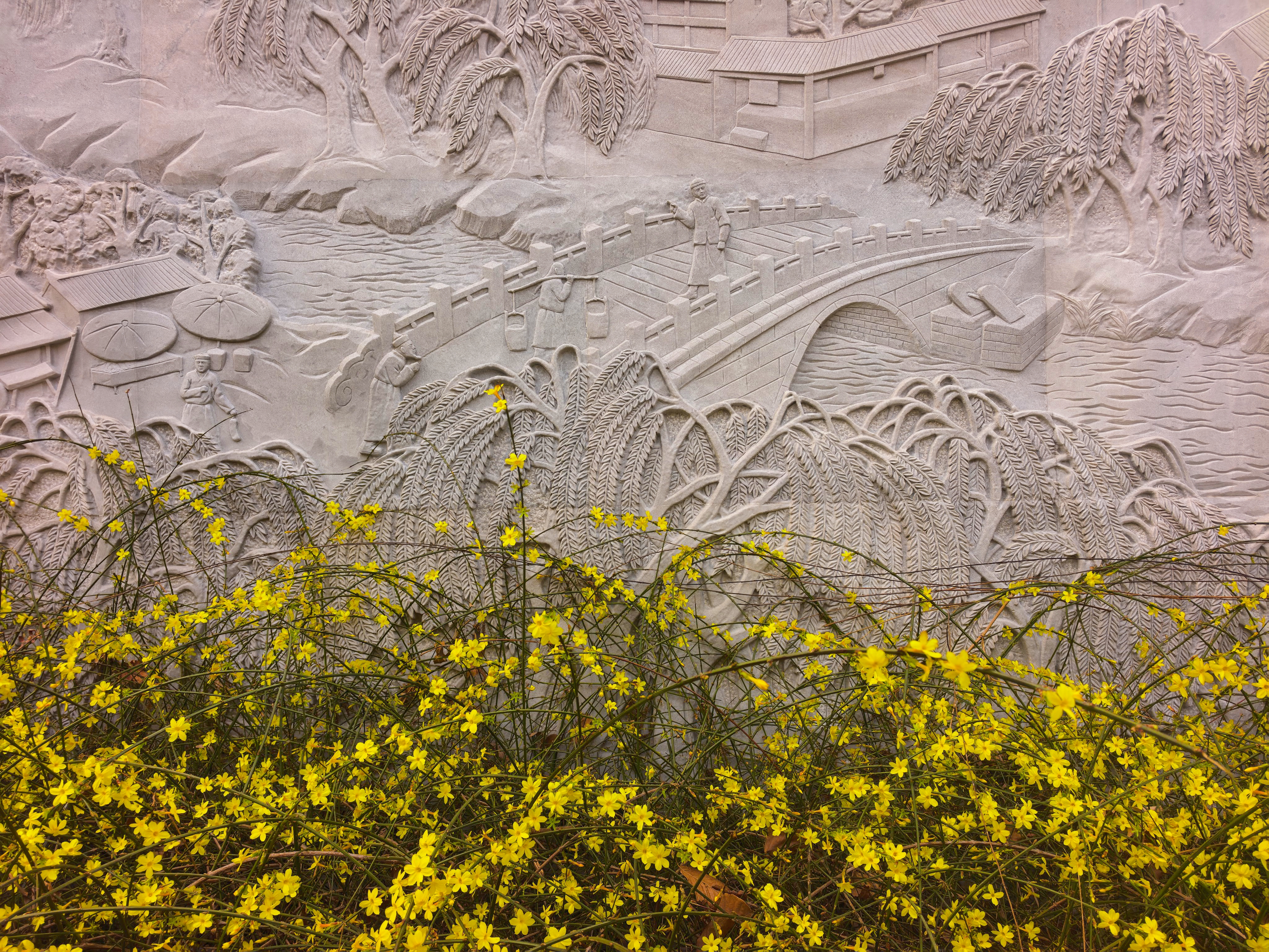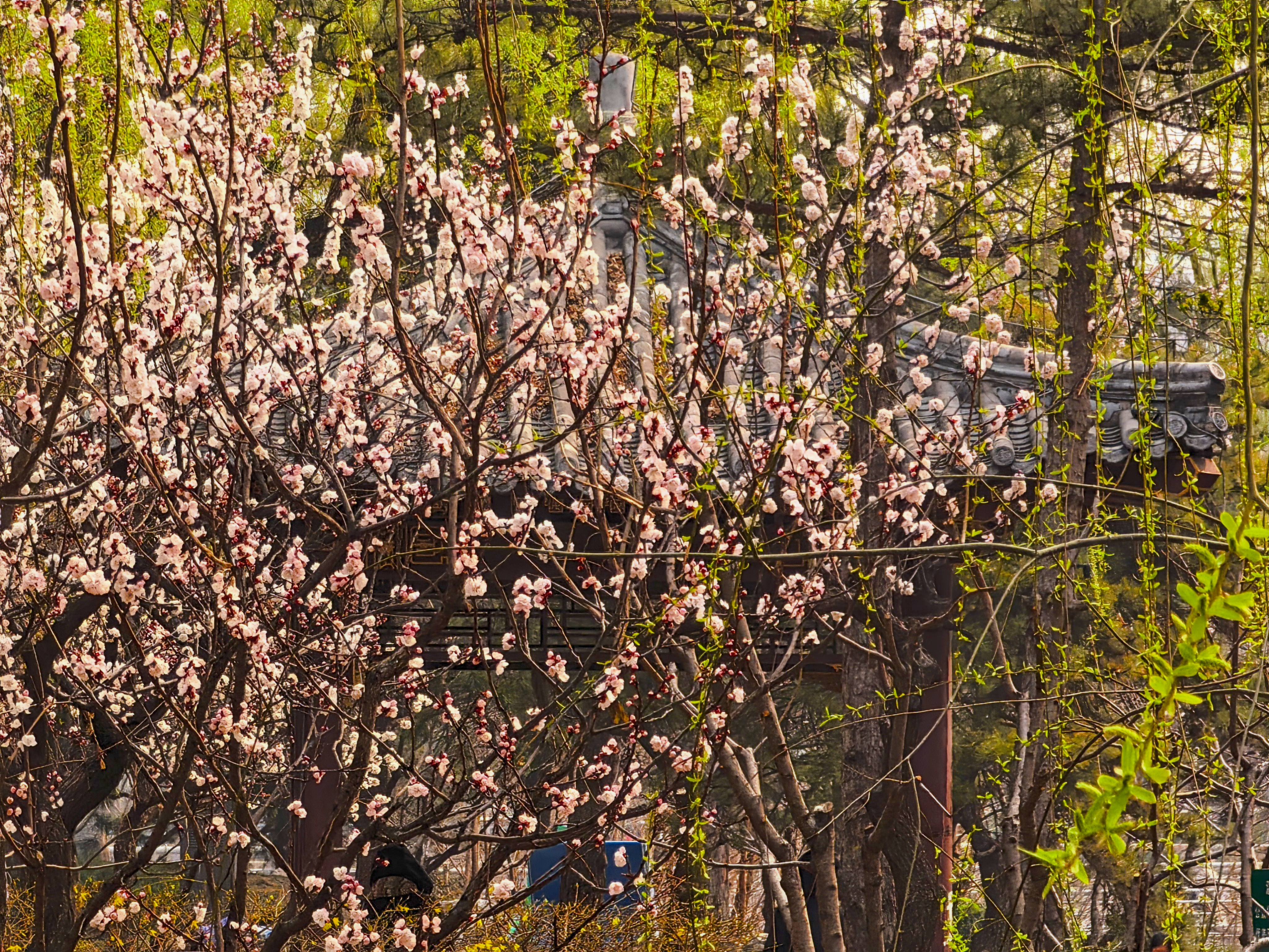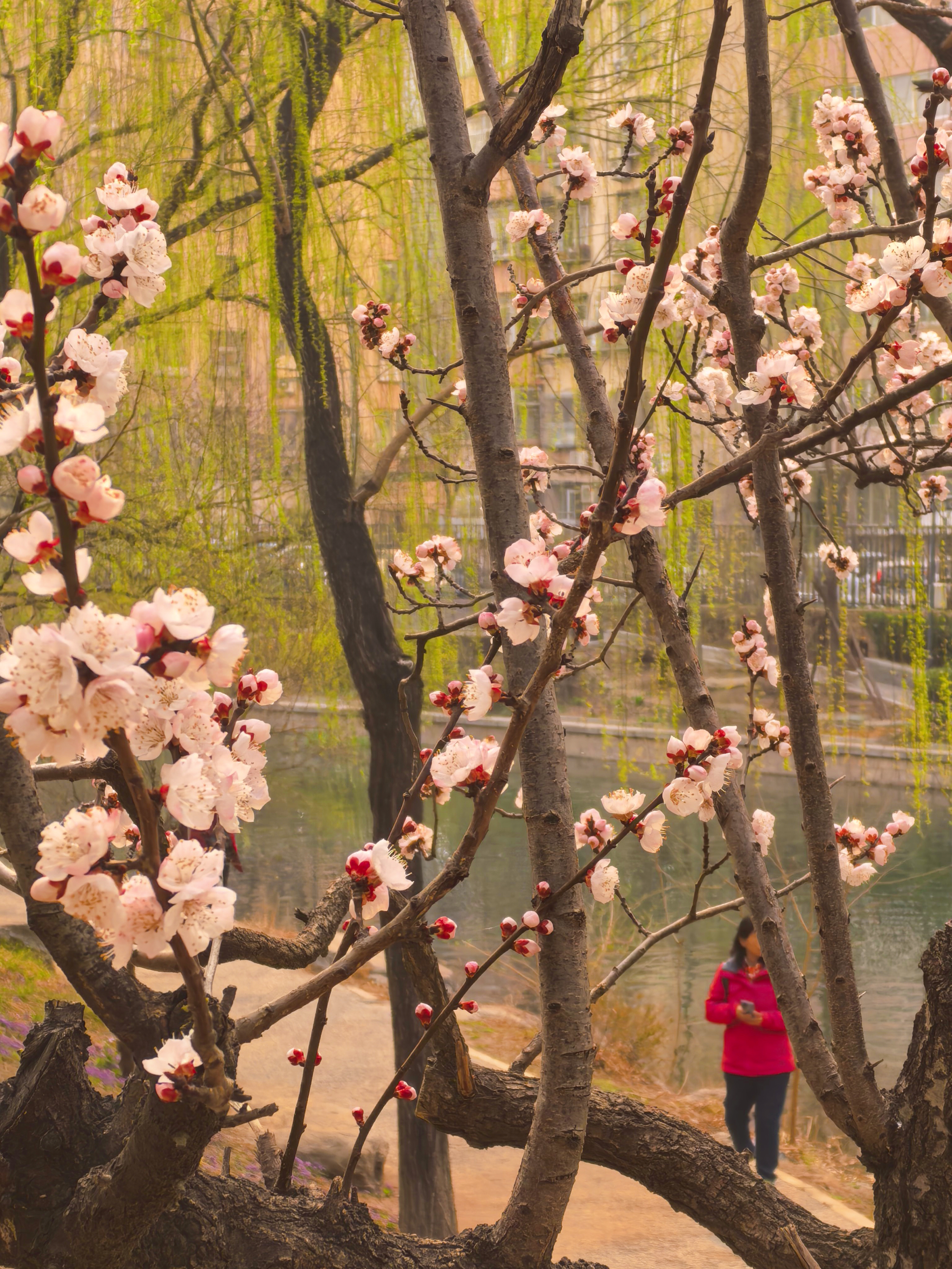 3月23日,北京南长河公园的桃花、榆叶梅、迎春花怒放,进入最佳观赏期。