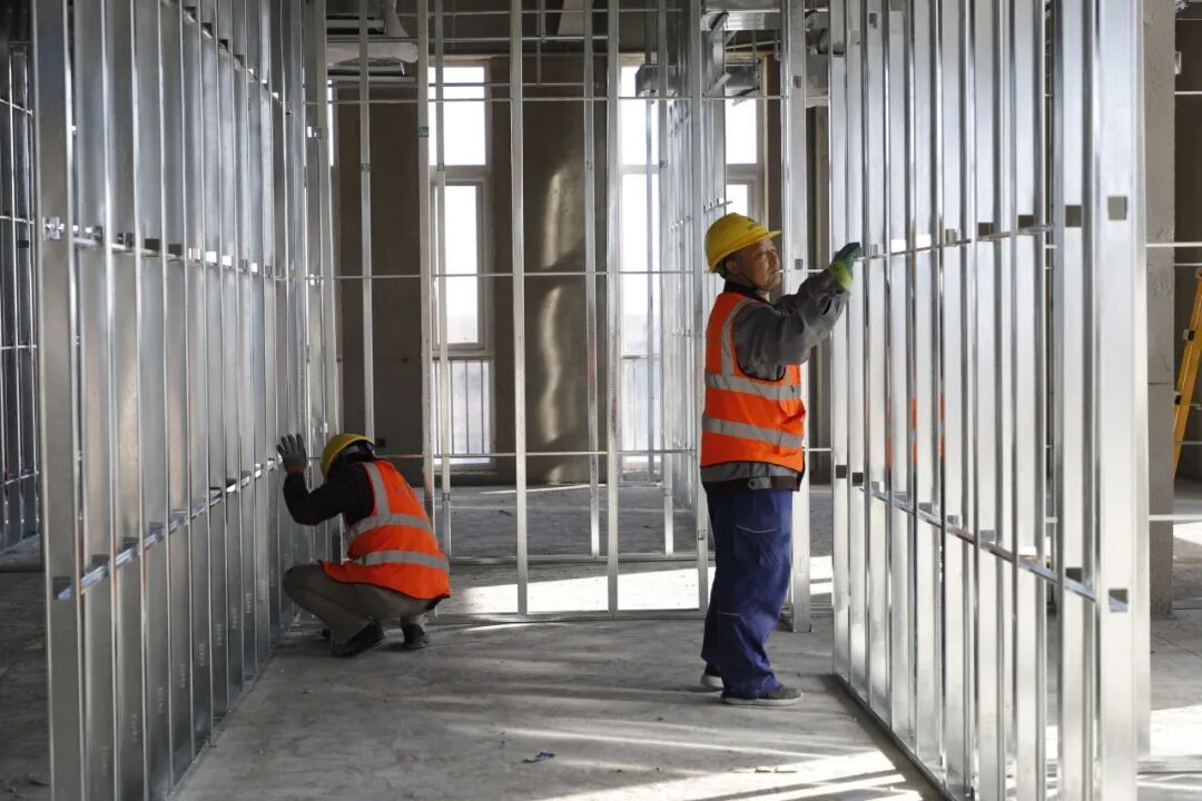走进国际口腔医疗器械创新转化基地,150余名工人正在紧锣密鼓地施工,机器轰鸣声此起彼伏,奏响了春日建设的交响曲。创新转化基地总投资近2亿元,建筑面积约3.5万平方米,预计今年6月底完工。项目共改造两栋楼宇,2号楼已完工,1号楼正在进行机电安装与装饰装修。