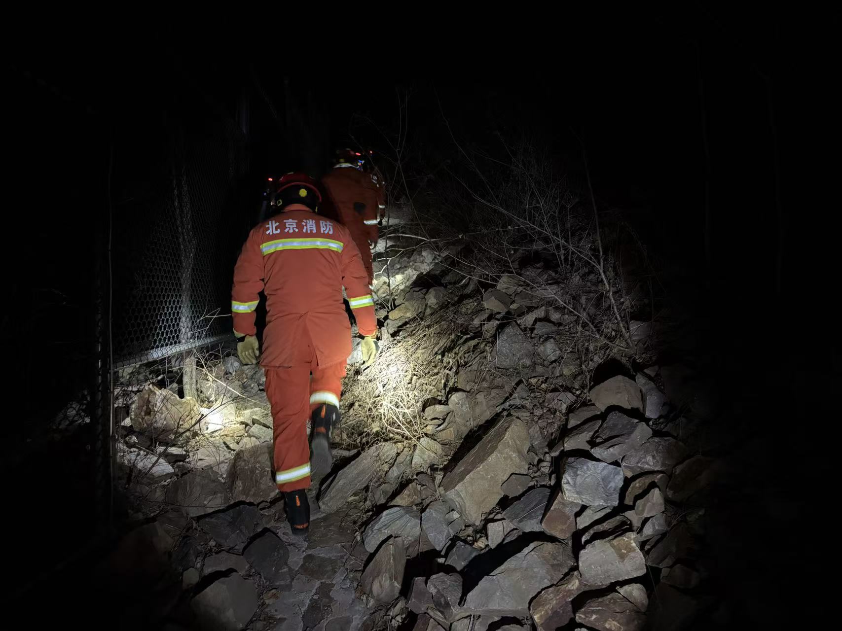 险情未平,警铃又响。当晚20时11分,密云消防再度接到紧急报警,6名“驴友”在大城子镇梨花台山区登山时迷路,被困深山夜色之中,随时面临坠崖、受寒风险。巨各庄消防站派出救援力量火速赶赴,同步联动应急、公安、属地政府等力量,凝聚救援合力全速开展搜救。