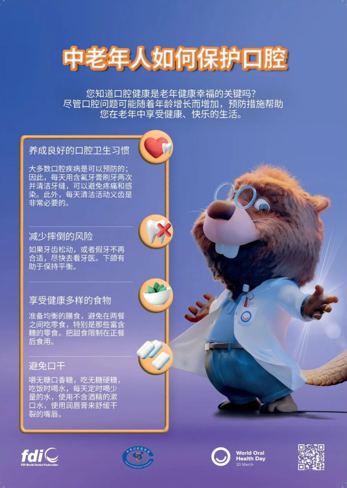 中年期牙龈开始出现生理性萎缩,牙根外露易引发根面龋,工作应酬多、饮食油腻易加重口腔问题;老年期易出现牙齿松动、缺失。很多人误以为“老掉牙是自然现象”,实则多由长期牙周病导致,世界卫生组织提出“8020计划”,即80岁时仍应拥有20颗功能牙,科学护理就能实现。