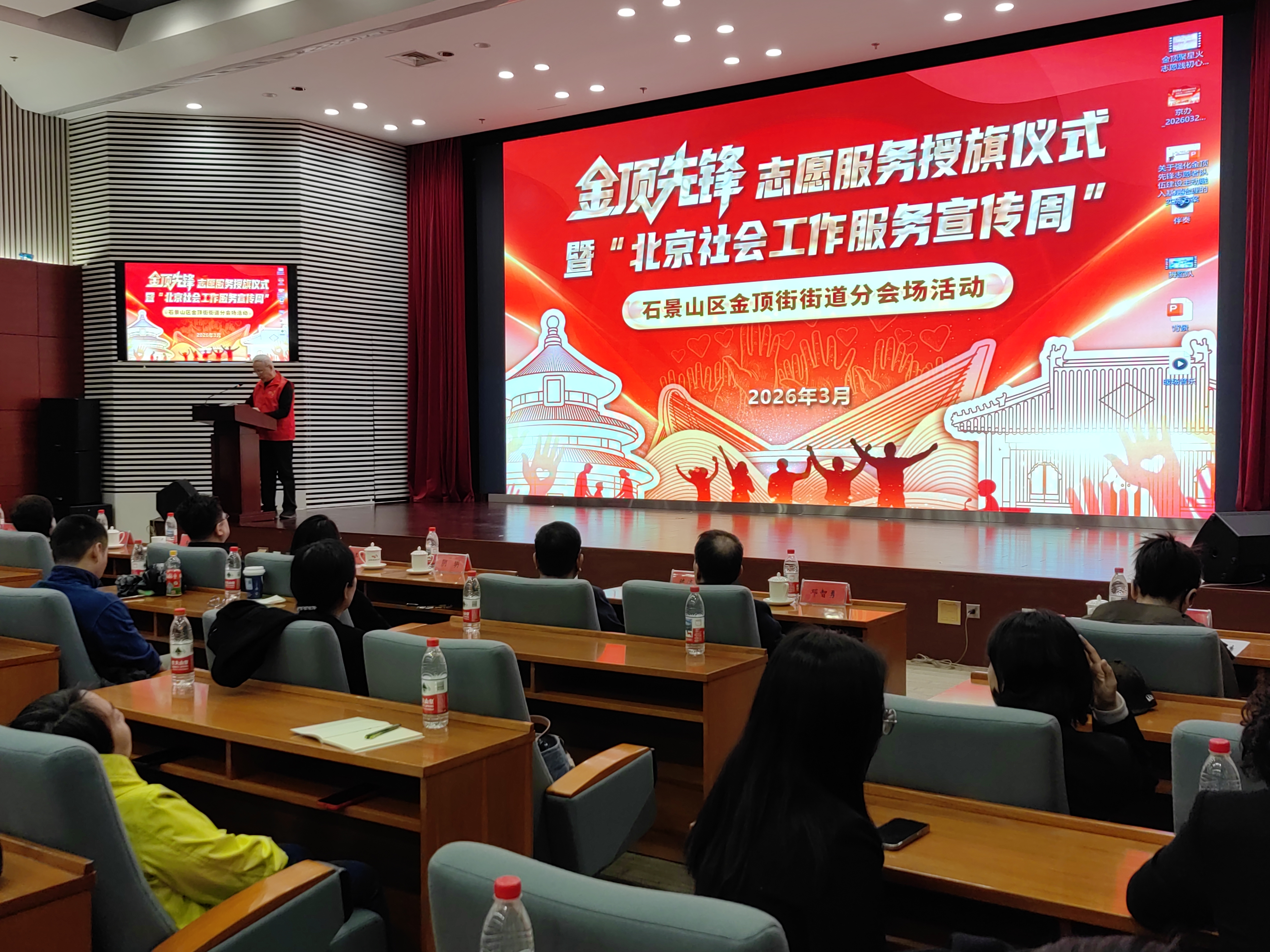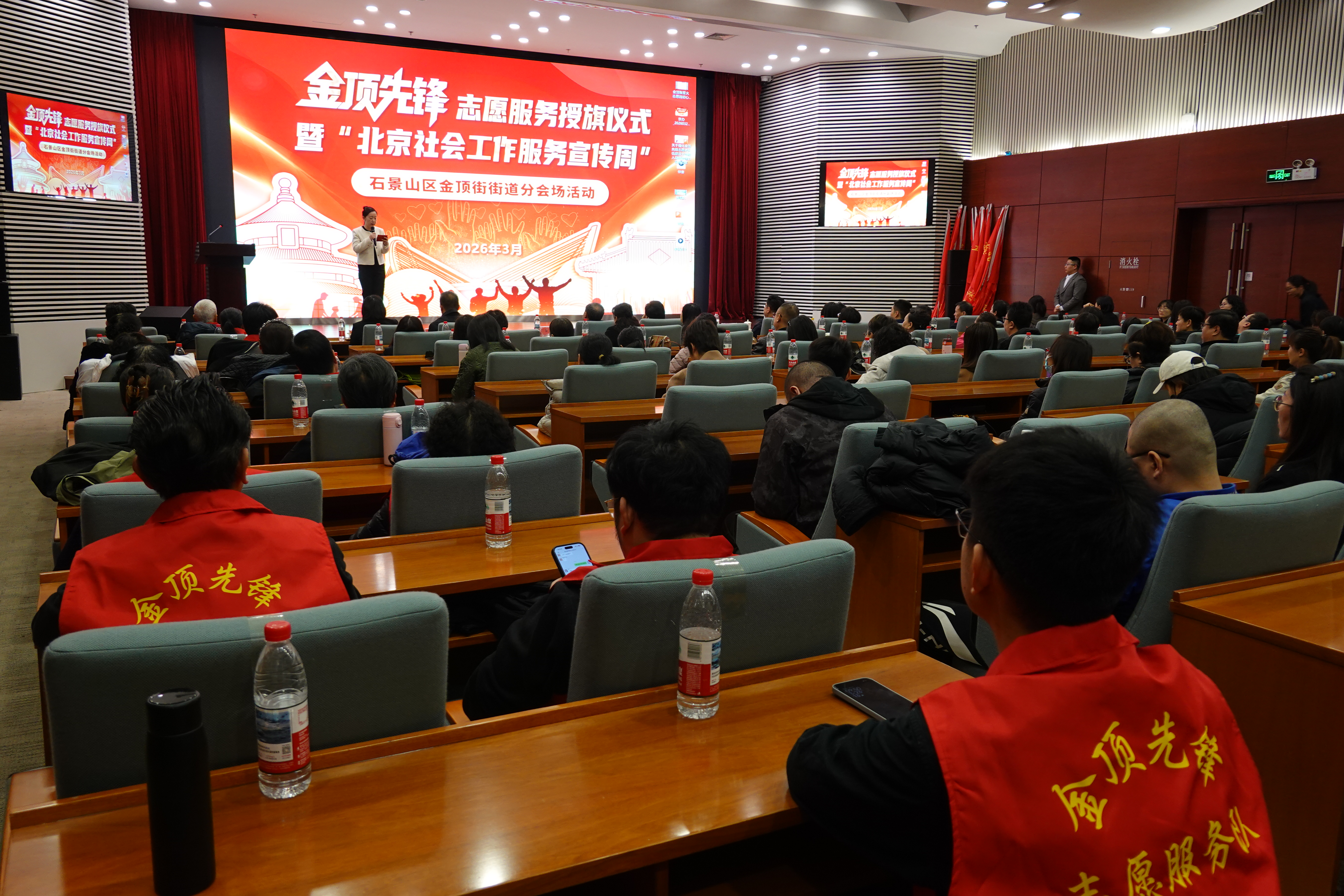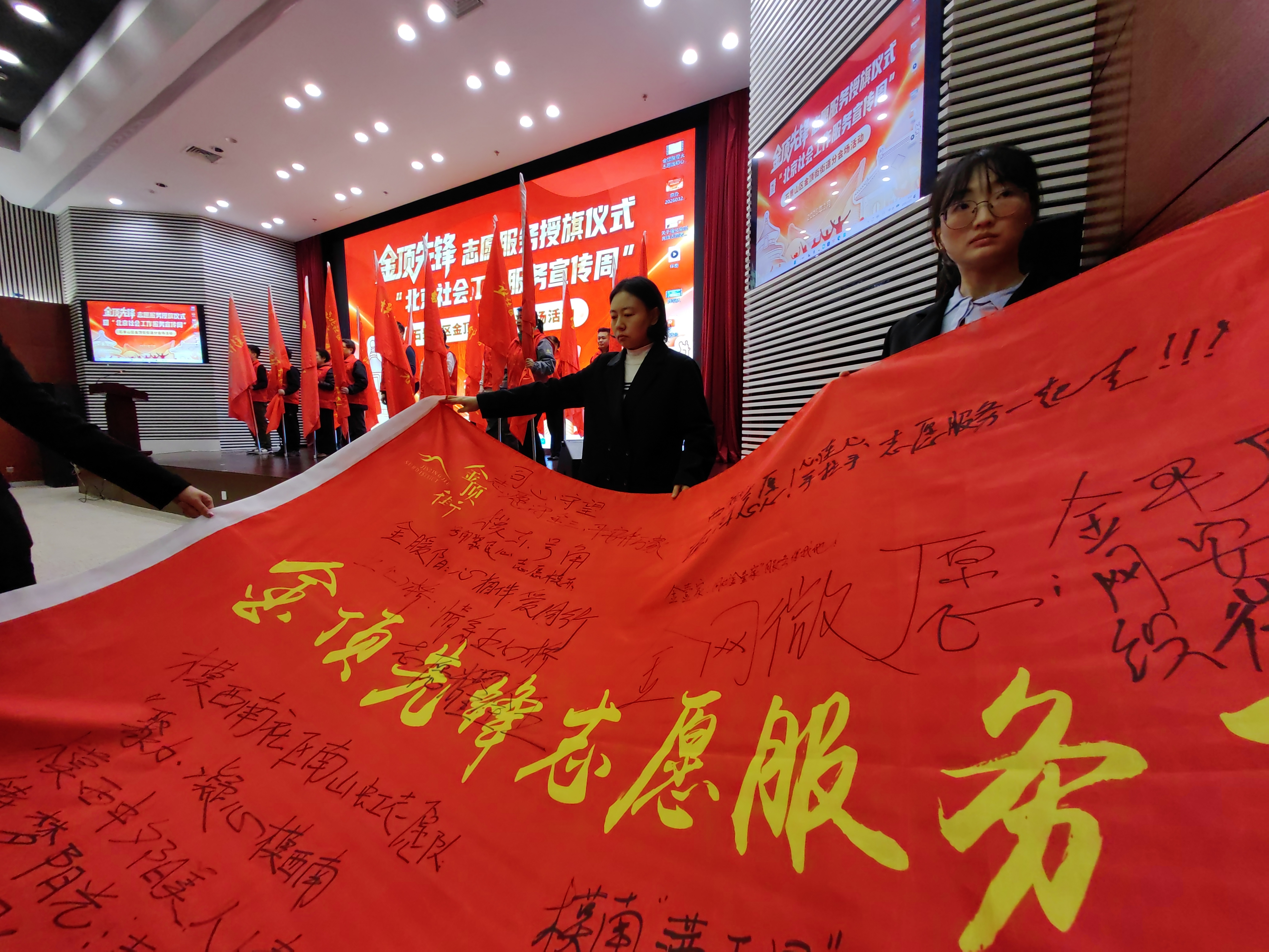 3月23日,石景山区金顶街街道举办授旗仪式,17支金顶先锋志愿服务队将服务社区居民。