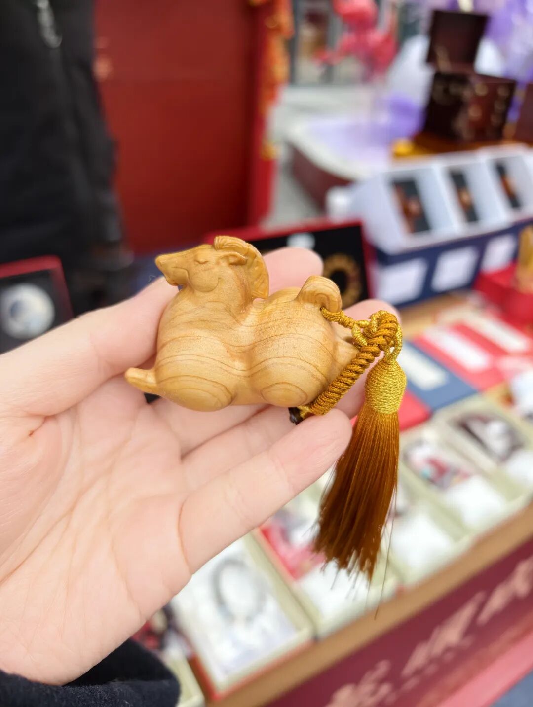 龙顺成是中华老字号品牌,其“京作硬木家具制作技艺”是国家级非物质文化遗产。摊位工作人员说:“此次入驻‘隆福潮集’,我们带来了一些接地气的产品,像檀木手串、木质挂饰、鲁班锁等。其中,小马、狮子、‘马上有钱’这几款木质挂饰最为畅销。我们希望借助市集,让更多人了解我们的传统技艺和工匠精神。”