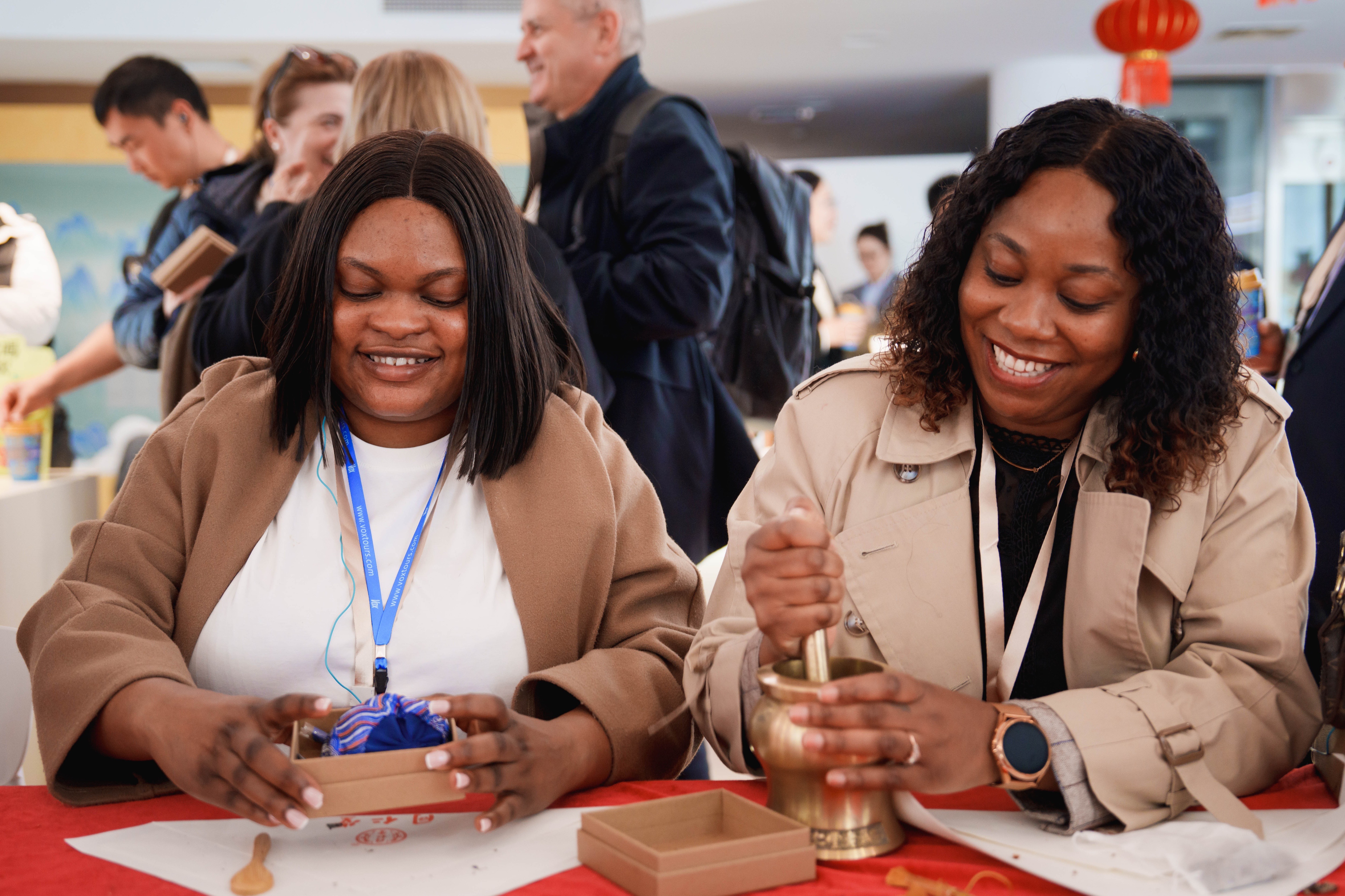 活动现场还设置了“你好,北京”图片展,为各国嘉宾生动呈现北京古今交融的城市景观。宋式点茶、彩塑京剧脸谱、北京鬃人、金氏风筝等非遗体验让各国使节沉浸式感受中国传统技艺的魅力。